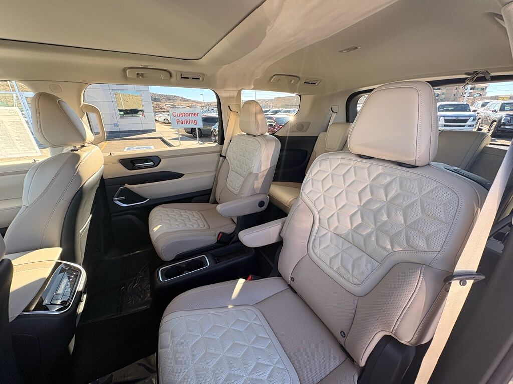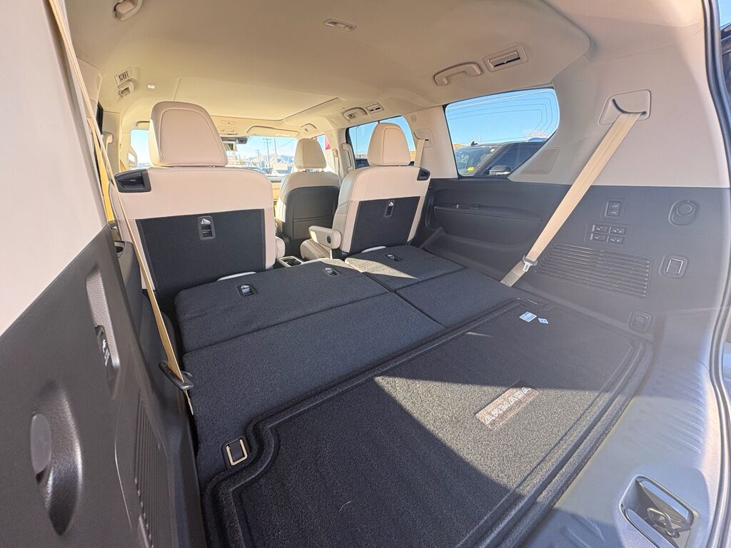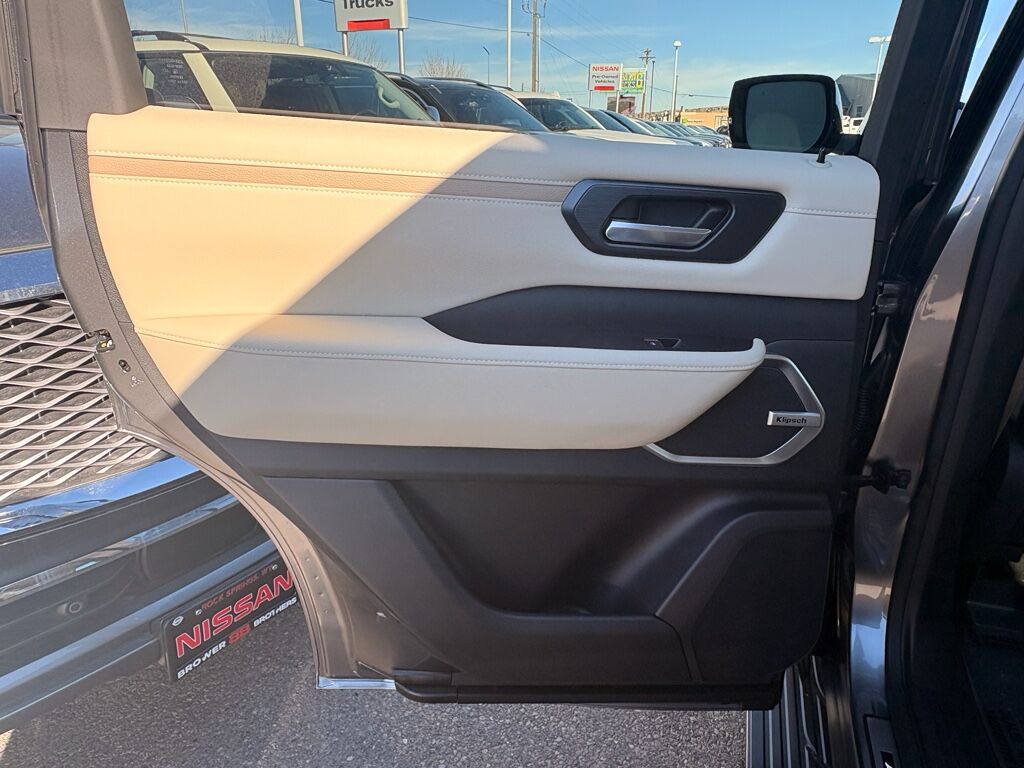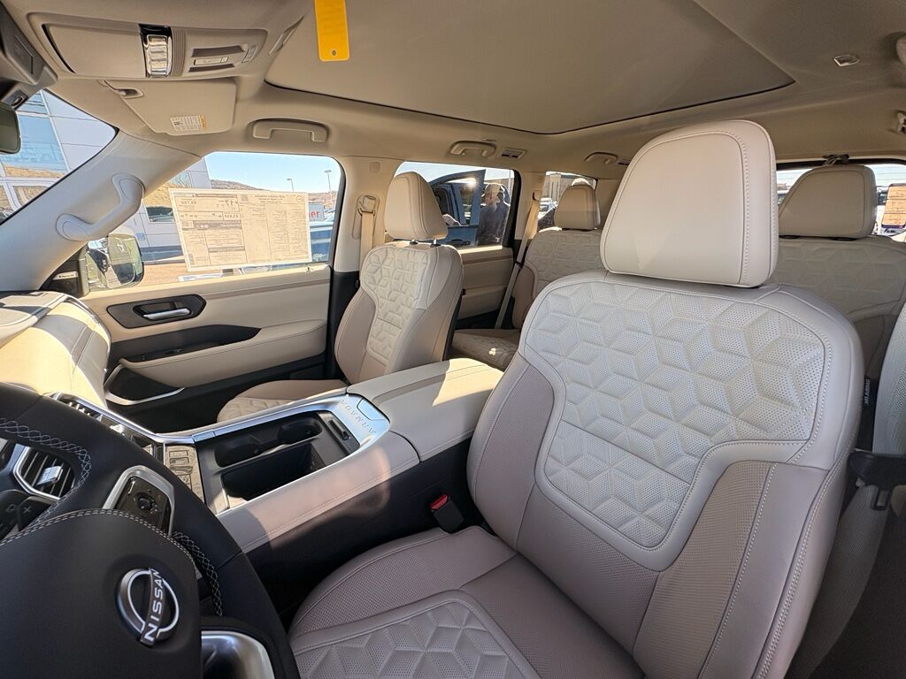 2-Tone Roof,Cross Bars,Carpeted Floor Mats with Captain Chairs,Illuminated Kick Plates,Splash Guards,Rear Bumper Protector,USB Charging Cables,Apple CarPlay/Android Auto smart device wireless mirroring,ProPILOT Assist 1.1 hands-on cruise control,Intelligent Forward Collision Warning w/Automatic Emergency Braking (AEB),Automatic Emergency Braking with Pedestrian Detection (P-AEB),ProPILOT Assist with Navi-link Automatic curve slowdown cruise control,Unresponsive driver assist,NissanConnect with Wi-Fi Hotspot mobile hotspot internet access,RearView Monitor rear mounted camera,Intelligent Lane Intervention (I-LI),Intelligent Blind Spot Intervention (I-BSI),Rear Automatic Braking (RAB) collision mitigation,Intelligent Cruise Control (ICC) w/Full Speed Range and Hold,Head-up display,Brake assist system,Cruise control with steering wheel mounted controls,Power liftgate rear cargo door,Ventilated driver and front passenger seats,Google Maps integrated navigation system with voice activation,Keyfob remote start,Heated steering wheel,Heated driver and front passenger seats,Heated rear seats,Leather front seat upholstery,Primary monitor touchscreen,Fixed third-row seats,First and second-row sliding and tilting glass sunroof with express open/close activation sunshade,Driver seat power reclining, lumbar support, cushion tilt, fore/aft control and height adjustable control,All-Mode 4WD automatic full-time 4WD,3.5L V-6 gasoline direct injection, DOHC, variable valve control, twin turbo, premium unleaded, engine with 425HP,3.5L V-6 DOHC,Front wireless smart device charging,Google Assistant built-in virtual assistant,Cabin camera,Driver Attention Alert (DAA),Speed Limit Assist traffic sign recognition with automatic speed limit assist,NissanConnect restricted driving mode/alerts,Intelligent Dash Cam forward and rear facing traffic cameras,Intelligent Key with hands-free access and push button start,Keyfob window control,3D Around View Monitor (Full 3D Rotation) aerial view camera,Invisible Hood View ground view camera,Smart device remote start,Push-button,Automatic brake hold,Intelligent Rear View Mirror (I-RVM) video-feed rearview mirror,NissanConnect Services vehicle tracker with vehicle slowdown,Bluetooth wireless audio streaming,Gauge cluster display size: 14.30,Proximity cargo area access release,Front Wide View front mounted camera