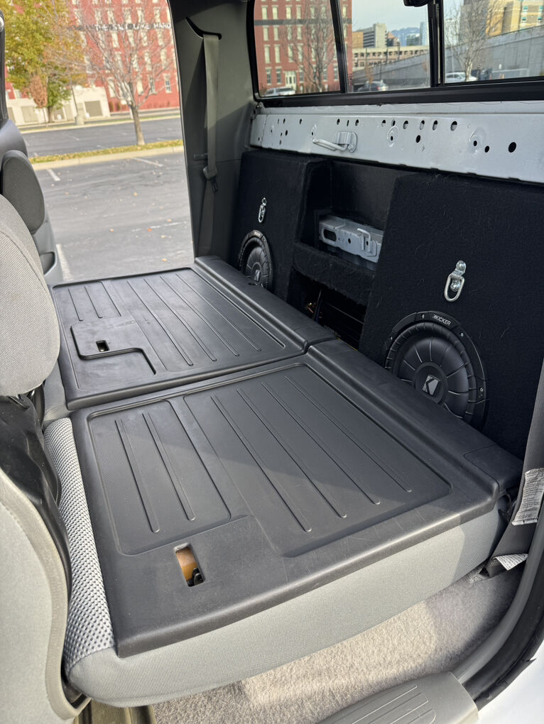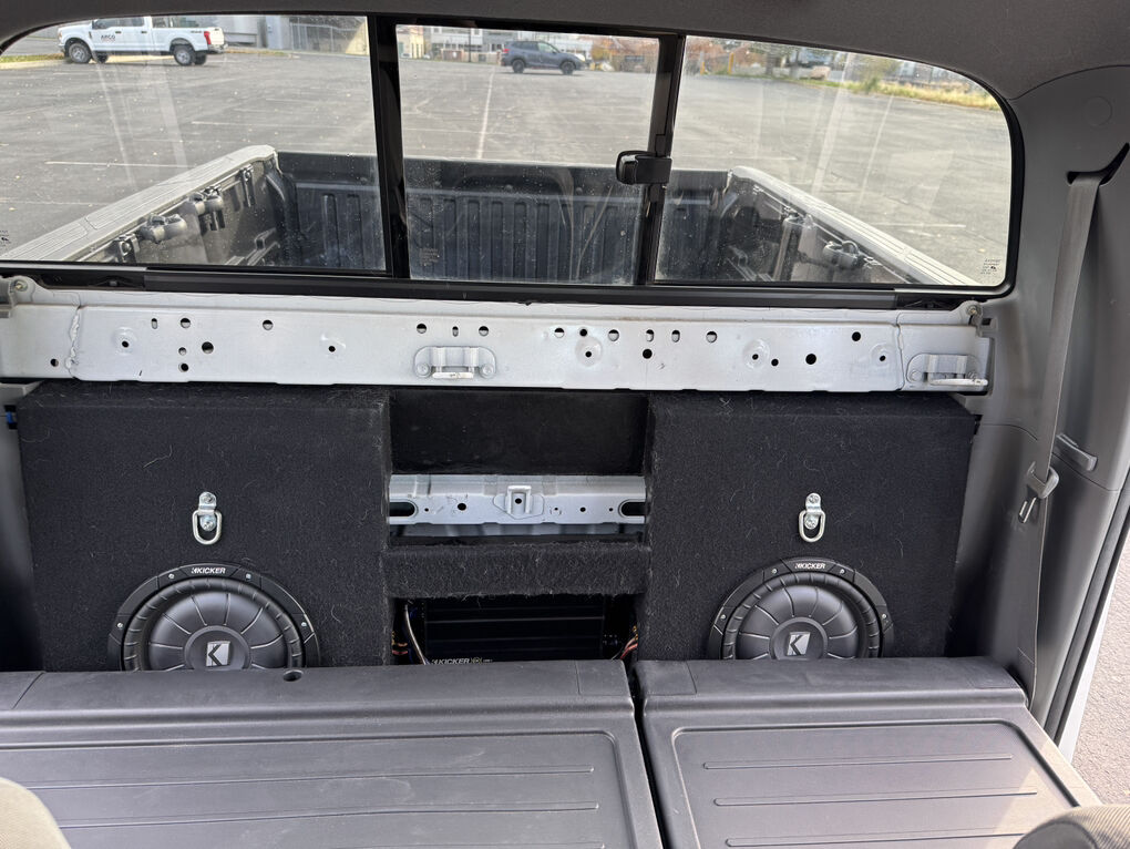 • Kicker dual 10” subs Kicker amp in custom rear-seat box