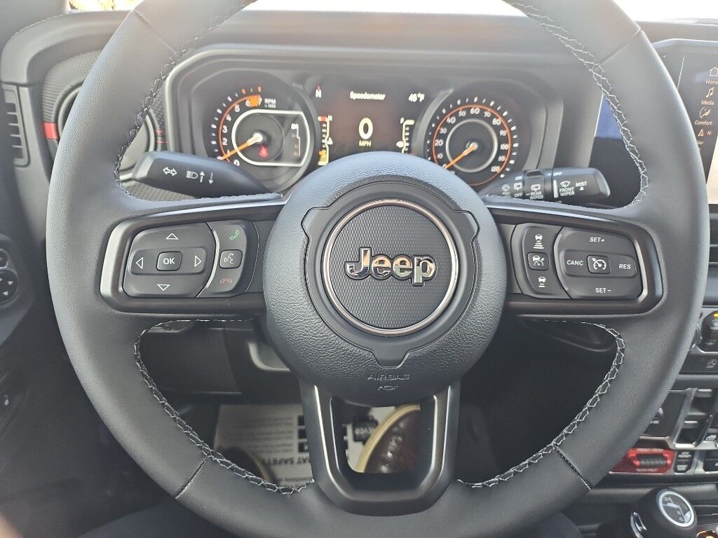 Convenience Group: Remote Start System; Universal Garage Door Opener; Heated Front Seats; Heated Steering Wheel,Technology Group: Google Android Auto; SiriusXM Radio Service; 12.3" Touchscreen Display; Integrated Off-Road Camera; HD Radio; Integrated Center Stack Radio; Rear View Auto Dim Mirror; For More Info, Call 800-643-2112; Integrated Voice Command W/Bluetooth; Connectivity - US/Canada; Uconnect 5 Nav W/12.3" Display; GPS Navigation; 4G LTE Wi-Fi Hot Spot; SiriusXM W/360L; Connected Travel & Traffic Services; Apple CarPlay,Quick Order Package 22R Rubicon,Quick Order Package 23R Rubicon,Nappa Leather Seats,Black 3-Piece Hard Top,Alpine Premium Audio System,Reign,MyFlexCare Service Plan,Integrated navigation system with voice activation,Keyfob remote start,Heated steering wheel,Uconnect w/Bluetooth handsfree wireless device connectivity,Apple CarPlay/Android Auto smart device wireless mirroring,Heated driver and front passenger seats,7 USB ports,First-row targa composite sunroof with manual activation,Nappa leather front seat upholstery,Driver seat with 8-way directional controls,Front passenger seat with 8-way directional controls,12.3 inch primary display,Full Speed Forward Collision Warning Plus,4G LTE Wi-Fi Hot Spot mobile hotspot internet access,ParkView rear mounted camera,Adaptive Cruise Control w/Stop & Go,Advanced Brake Assist predictive brake assist system,Cruise control with steering wheel mounted controls,Manual convertible roof,Primary monitor touchscreen,Rock-Trac part-time 4WD,2L I-4 gasoline direct injection, DOHC, intercooled turbo, premium unleaded, engine with 270HP,2L I-4 DOHC,Smart key with hands-free access and push button start,Smart device remote start,Push-button,Bluetooth wireless audio streaming,Front mounted camera with washer,Dual-zone front climate control,Voice-activated climate control,Selec-Speed Control off-road speed control,Front anti-roll bar disconnect,Sentry Key immobilizer,Vehicle tracker,Alpine speakers,Connected Travel & Traffic Services real-time traffic,Jeep Connect vehicle integrated emergency SOS system,Trailer sway control,Uconnect external memory control,Internet radio capability,Configurable instrumentation gauges,Electronic stability control system with anti-roll,Selec-Speed Control hill descent control,Hill start assist,Removable sunroof,Leather rear seat upholstery,Flip-up rear windshield,Automatic climate control,Rear Seat Reminder rear seat check warning,LED daytime running lights