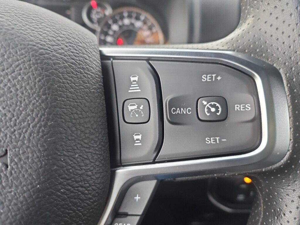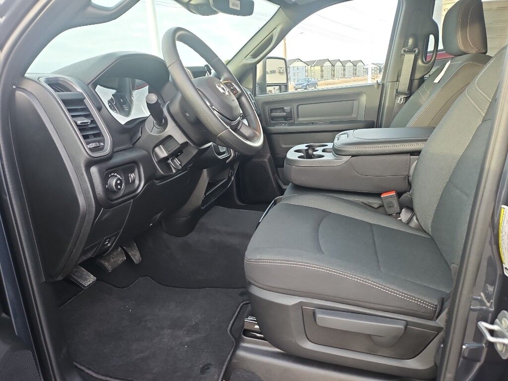 Tradesman Level 1 Equipment Group: Google Android Auto; SiriusXM Radio Service; Rear View Auto Dim Mirror; For Details, Visit DriveUconnect.com; For More Info, Call 800-643-2112; Rear Power Sliding Window; Integrated Voice Command with Bluetooth; Connectivity - US/Canada; Emergency Vehicle Alert System (EVAS); 12" Touchscreen Display; Tinted Acoustic Windshield Glass; GPS Navigation; 4G LTE Wi-Fi Hot Spot; GPS Antenna Input; SiriusXM with 360L; Anti-Spin Differential Rear Axle; Global Telematics Box Module; Connected Travel and Traffic Services; Exterior 115V AC Outlet; Alexa Built-In; Apple CarPlay; Off-Road Info Pages; Selectable Tire Fill Alert; Trailer Tow Pages; 400W Inverter; Disassociated Touchscreen Display; HD Radio; Uconnect 5 Navigation with 12.0" Display Radio; Air Conditioning ATC with Dual Zone Control; 115-Volt Auxiliary Front Power Outlet,Convenience Group,Quick Order Package 2UC Black Express: Firestone Brand Tires; 20" X 8.0" Black Painted Aluminum Wheels; 40/20/40 Split Bench Seat; Rear Folding Seat; Auto Power-Folding Mirrors; Painted Front Bumper; 4 Way Front Headrests; Painted Rear Bumper; Front Armrest with Cupholders; Exterior Mirrors with Heating Element; MOPAR Black Tubular Side Steps; Remote USB Port - Charge Only; Manual Adjust 4-Way Front Passenger Seat; Mirror Running Lights; Body Color Grille-Surround; Black Exterior Mirrors; 2 Way Rear Headrest Seat; Carpet Floor Covering; Power-Adjustable Convex Aux Mirrors; Forward and Reverse Utility Lights; Cloth 40/20/40 Bench Seat; Storage Tray; Power Heated Folding Telescopic Mirrors; Exterior Mirrors with Supplemental Signals; Sport Performance Hood; Exterior Mirrors Courtesy Lamps; Black Wheel Center Hub; LT285/60R20E OWL On/off Road Tires; Manual Adjust 4-Way Driver Seat; Power Adjust Mirrors; 18" Steel Spare Wheel; Power Telescoping Mirrors; Front and Rear Floor Mats; ParkSense Front/rear Park Assist System,Anti-Spin Differential Rear Axle,Forged Blue Metallic,MyFlexCare Service Plan,Forward collision mitigation with pedestrian impact prevention,Integrated navigation system with voice activation,Uconnect w/Bluetooth handsfree wireless device connectivity,Apple CarPlay/Android Auto smart device wireless mirroring,Cloth front seat upholstery,Driver seat with 4-way directional controls,Front passenger seat with 4-way directional controls,12 inch primary display,Pedestrian impact prevention,4G LTE Wi-Fi Hot Spot mobile hotspot internet access,ParkView rear mounted camera,Adaptive cruise control with stop and go,Brake assist system,Cruise control with steering wheel mounted controls,Primary monitor touchscreen,Part-time 4WD,HEMI 6.4L V-8 VVT variable valve control, regular unleaded, engine with cylinder deactivation and 405HP,HEMI 6.4L V-8,Alexa Built-In built-in virtual assistant,Push-button,Wireless audio streaming,Following distance alert,Smart key with push button start,Trailer light test,Dual-zone front climate control,Sentry Key immobilizer,RAM Connect vehicle tracker,Active noise cancellation,Connected Travel & Traffic Services real-time traffic,RAM Connect vehicle integrated emergency SOS system,Trailer brake controller,Trailer sway control,Uconnect external memory control,Internet radio capability,5 USB ports,Power extendable trailer mirrors,Electronic stability control system with anti-roll,Hill start assist,Automatic climate control,Rear Seat Reminder Alert rear seat check warning,ParkSense front and rear parking sensors,1 exterior 120V AC power outlet,LED front fog lights,Active grille shutters,Connected Travel & Traffic Services real-time weather,Trailer hitch light,Manual rear child safety door locks,Mobile app access,Illuminated front beverage holders,Heated driver and passenger side door mirrors