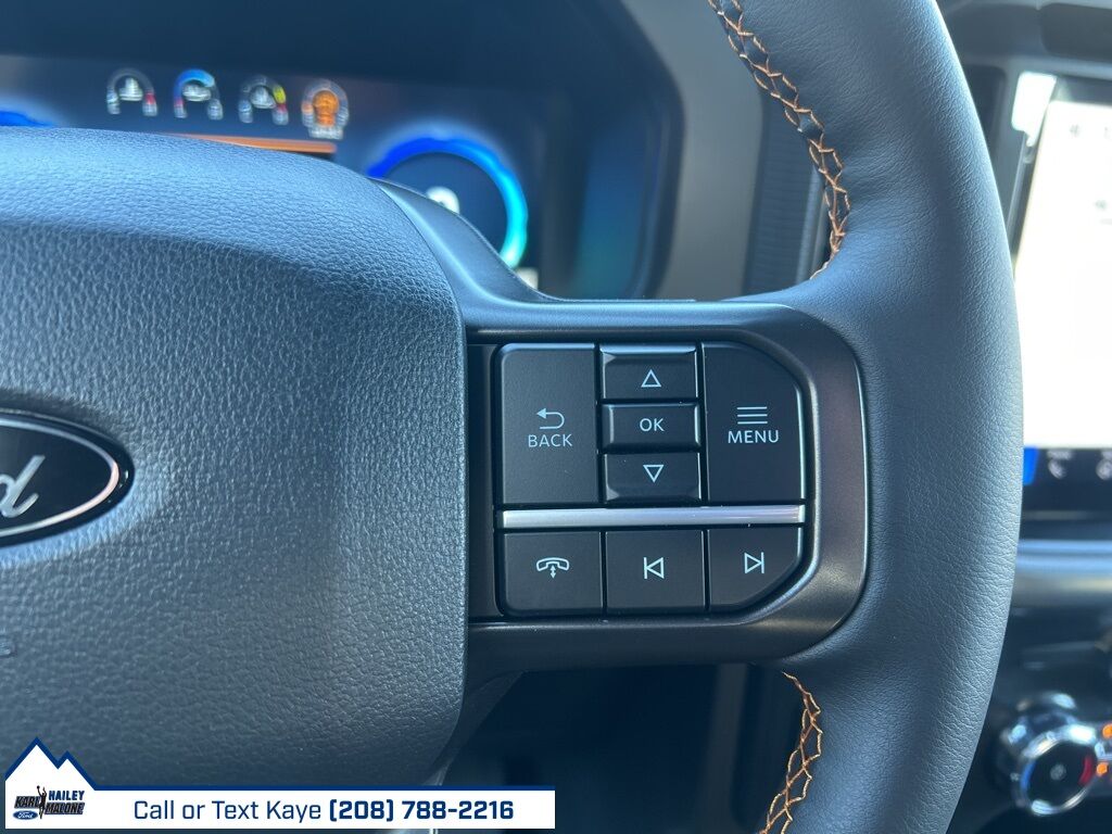 4WD, 4-Wheel Disc Brakes, 8 Speakers, ABS brakes, Adjustable pedals, Air Conditioning, Alloy wheels, AM/FM radio: SiriusXM with 360L, Auto High-beam Headlights, Auto-dimming door mirrors, Auto-dimming Rear-View mirror, Automatic temperature control, Brake assist, Bumpers: body-color, Compass, Delay-off headlights, Driver door bin, Driver vanity mirror, Dual front impact airbags, Dual front side impact airbags, Electronic Locking w/3.73 Axle Ratio, Electronic Stability Control, Emergency communication system: SYNC 4 911 Assist, Front anti-roll bar, Front Bucket Seats, Front Center Armrest, Front dual zone A/C, Front fog lights, Front reading lights, Front wheel independent suspension, Fully automatic headlights, GVWR: 7,100 lbs Payload Package, Heated door mirrors, Heated front seats, Illuminated entry, Internet access capable: FordPass Connect 5G, Low tire pressure warning, Navigation system: Connected Navigation, Occupant sensing airbag, Outside temperature display, Overhead airbag, Overhead console, Panic alarm, Passenger door bin, Passenger vanity mirror, Power door mirrors, Power driver seat, Power passenger seat, Power steering, Power windows, Radio data system, Radio: B&O Sound System by Bang & Olufsen, Rear reading lights, Rear step bumper, Rear window defroster, Remote keyless entry, Security system, Speed control, Split folding rear seat, Steering wheel mounted audio controls, SYNC 4 w/Enhanced Voice Recognition, Tachometer, Telescoping steering wheel, Tilt steering wheel, Traction control, Trip computer, Turn signal indicator mirrors, Unique Sport Cloth 40/Console/40 Power Front Seat, Variably intermittent wipers, Voltmeter, Wheels: 18'' Alloy w/Dark Matte Finish, 4WD.