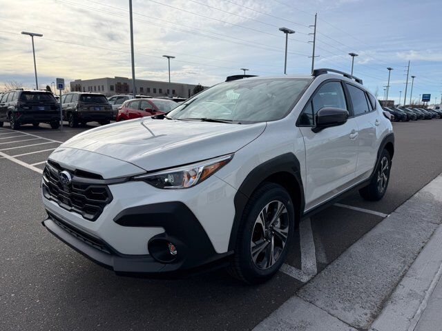 2026 Subaru Crosstrek Premium Crystal White Pearl Premium AWD 2.5L 4-Cylinder DOHC 16V Lineartronic CVT4-Wheel Disc Brakes, 6 Speakers, ABS brakes, Air Conditioning, Alloy wheels, AM/FM radio: SiriusXM, Anti-whiplash front head restraints, Auto High-beam Headlights, Automatic temperature control, Brake assist, Bumpers: body-color, Cloth Upholstery, Driver door bin, Driver vanity mirror, Dual front impact airbags, Dual front side impact airbags, Electronic Stability Control, Emergency communication system: MySubaru Companion (5-years free), Exterior Parking Camera Rear, Four wheel independent suspension, Front anti-roll bar, Front Bucket Seats, Front Center Armrest, Front dual zone A/C, Front fog lights, Front reading lights, Fully automatic headlights, Illuminated entry, Knee airbag, Low tire pressure warning, Occupant sensing airbag, Outside temperature display, Overhead airbag, Overhead console, Panic alarm, Passenger door bin, Passenger vanity mirror, Power door mirrors, Power steering, Power windows, Radio data system, Radio: Subaru 11.6 Multimedia Plus System, Rear anti-roll bar, Rear seat center armrest, Rear side impact airbag, Rear window defroster, Rear window wiper, Remote keyless entry, Security system, Speed control, Speed-sensing steering, Split folding rear seat, Spoiler, Steering wheel mounted audio controls, Tachometer, Telescoping steering wheel, Tilt steering wheel, Traction control, Trip computer, Turn signal indicator mirrors, Variably intermittent wipers, Wheels: 17 x 7.0 J Machine Finish Aluminum-Alloy.Visit www.twinfalls-subaru.com To See Our Specials!! Call us at 208-734-8860 for help from any of our team members. Let us show you how great it can be to work with the Magic Valley's #1 Volume Automotive Retailer!