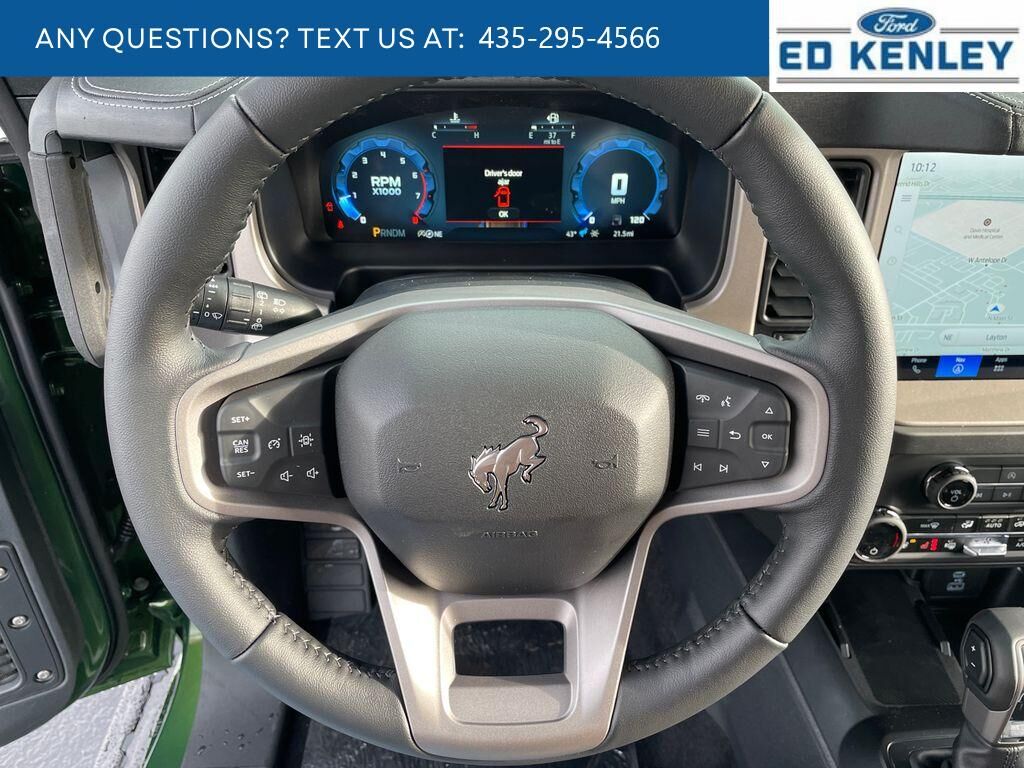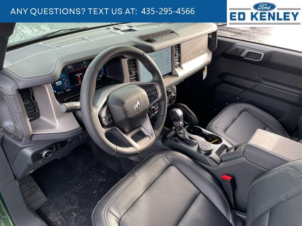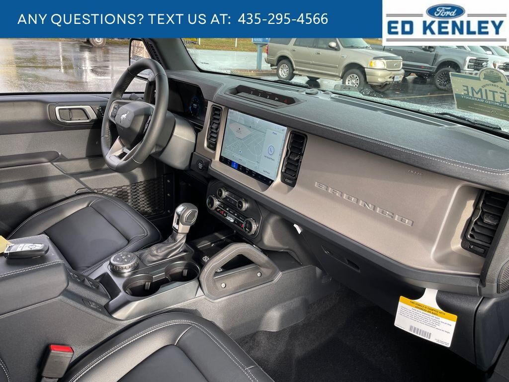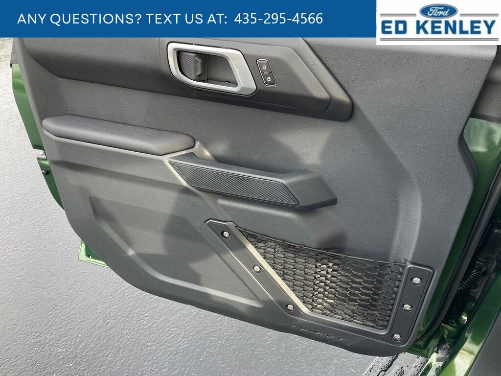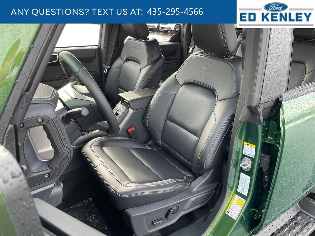 The vehicle is pure luxury with a heated steering wheel. Start this 1/2 ton suv from inside with remote start. Bluetooth technology is built into the vehicle, keeping your hands on the steering wheel and your focus on the road. The leather seats in this 1/2 ton suv are a must for buyers looking for comfort, durability, and style. The installed navigation system will keep you on the right path. An off-road package is installed on the Ford Bronco so you are ready for your four-wheeling best. Protect it from unwanted accidents with a cutting edge backup camera system. This 1/2 ton suv's Cross-Traffic Alert: Safeguarding you from unexpected traffic when reversing. The Ford Bronco offers Android Auto for seamless smartphone integration. Apple CarPlay: Seamless smartphone integration for this vehicle - stay connected and entertained on the go! The Ford Bronco shines with a refined green finish. Maintaining a stable interior temperature in this 2025 Ford Bronco is easy with the climate control system.