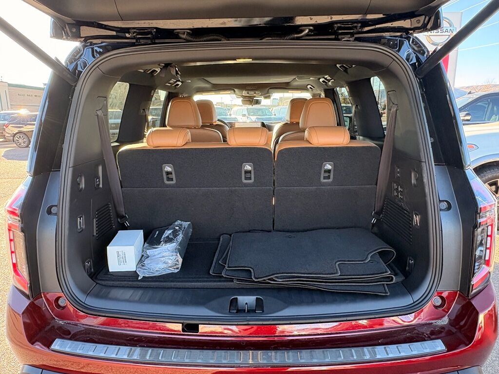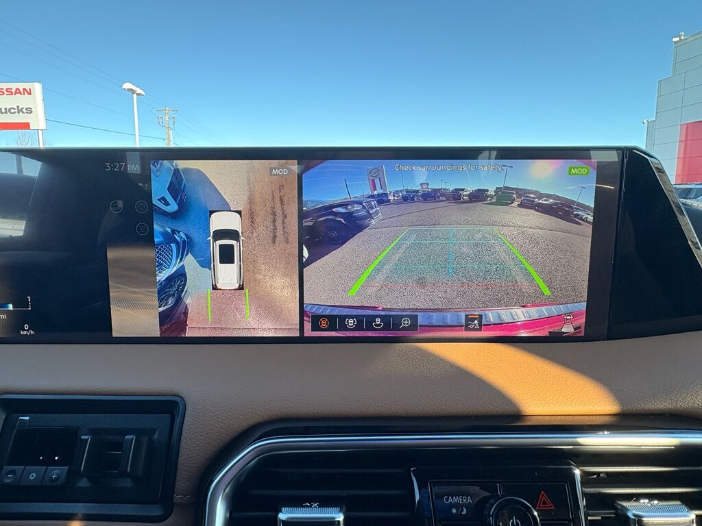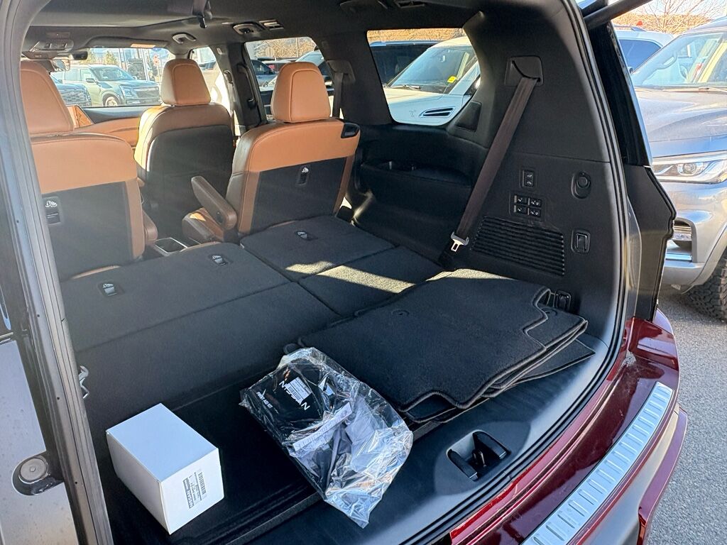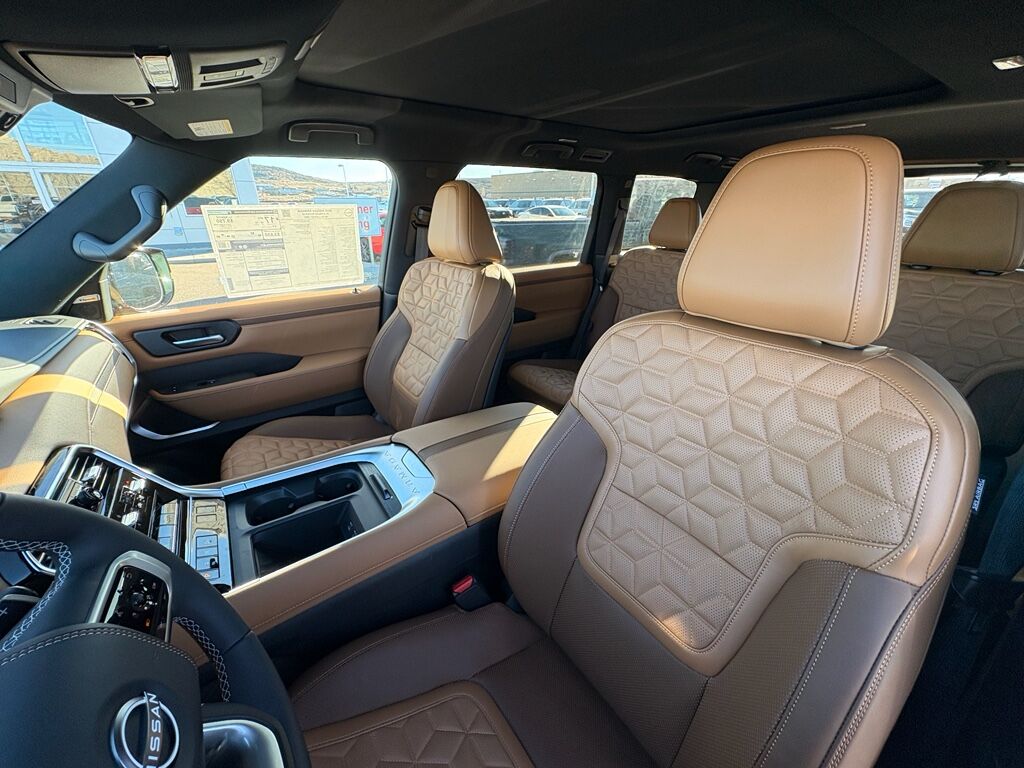 Premium Paint and 2-Tone Roof,Cross Bars,Carpeted Floor Mats with Captain Chairs,Illuminated Kick Plates,Splash Guards,Rear Bumper Protector,USB Charging Cables,Apple CarPlay/Android Auto smart device wireless mirroring,ProPILOT Assist 1.1 hands-on cruise control,Intelligent Forward Collision Warning w/Automatic Emergency Braking (AEB),Automatic Emergency Braking with Pedestrian Detection (P-AEB),ProPILOT Assist with Navi-link Automatic curve slowdown cruise control,Unresponsive driver assist,NissanConnect with Wi-Fi Hotspot mobile hotspot internet access,RearView Monitor rear mounted camera,Intelligent Lane Intervention (I-LI),Intelligent Blind Spot Intervention (I-BSI),Rear Automatic Braking (RAB) collision mitigation,Intelligent Cruise Control (ICC) w/Full Speed Range and Hold,Head-up display,Brake assist system,Cruise control with steering wheel mounted controls,Power liftgate rear cargo door,Ventilated driver and front passenger seats,Google Maps integrated navigation system with voice activation,Keyfob remote start,Heated steering wheel,Heated driver and front passenger seats,Heated rear seats,Leather front seat upholstery,Primary monitor touchscreen,Fixed third-row seats,First and second-row sliding and tilting glass sunroof with express open/close activation sunshade,Driver seat power reclining, lumbar support, cushion tilt, fore/aft control and height adjustable control,All-Mode 4WD automatic full-time 4WD,3.5L V-6 gasoline direct injection, DOHC, variable valve control, twin turbo, premium unleaded, engine with 425HP,3.5L V-6 DOHC,Front wireless smart device charging,Google Assistant built-in virtual assistant,Cabin camera,Driver Attention Alert (DAA),Speed Limit Assist traffic sign recognition with automatic speed limit assist,NissanConnect restricted driving mode/alerts,Intelligent Dash Cam forward and rear facing traffic cameras,Intelligent Key with hands-free access and push button start,Keyfob window control,3D Around View Monitor (Full 3D Rotation) aerial view camera,Invisible Hood View ground view camera,Smart device remote start,Push-button,Automatic brake hold,Intelligent Rear View Mirror (I-RVM) video-feed rearview mirror,NissanConnect Services vehicle tracker with vehicle slowdown,Bluetooth wireless audio streaming,Gauge cluster display size: 14.30,Proximity cargo area access release,Front Wide View front mounted camera
