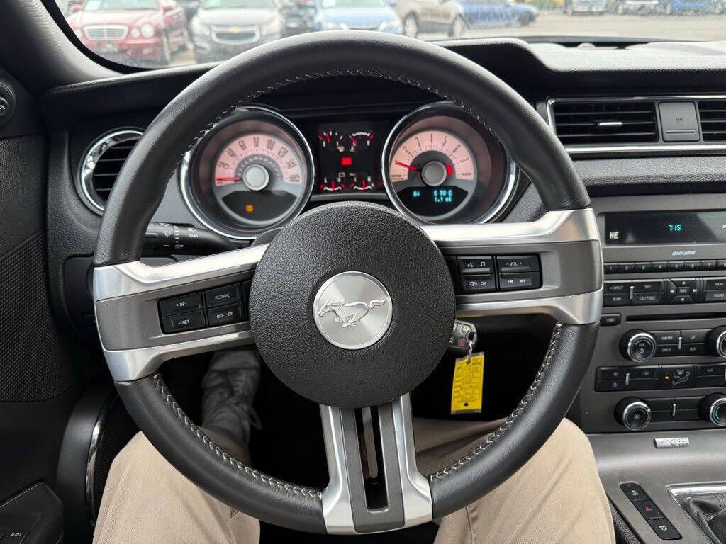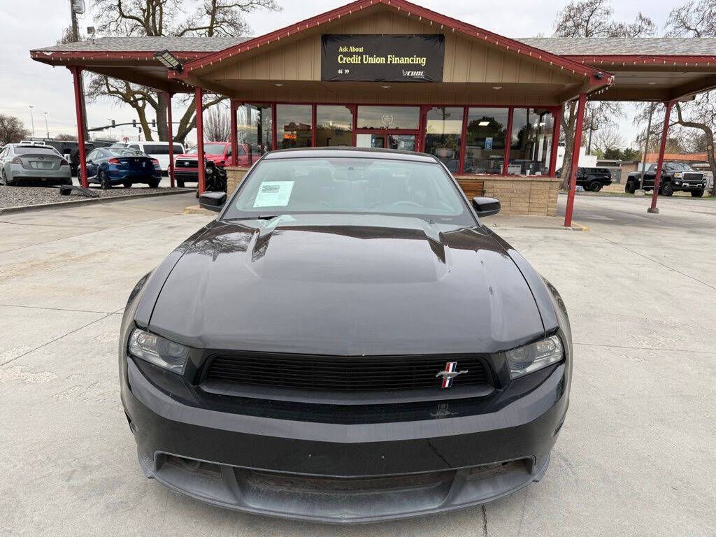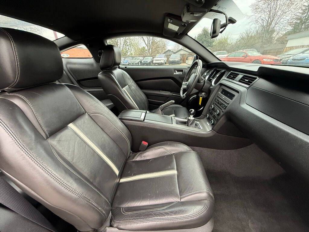 Black 2012 Ford Mustang GT Premium RWD 6-Speed Manual 5.0L V8 Ti-VCT 32V 5.0L V8 Ti-VCT 32V, 18'' x 8'' Wide Spoke Painted Aluminum Wheels, 4-Wheel Disc Brakes, ABS brakes, Air Conditioning, Alloy wheels, AM/FM radio, Brake assist, Bumpers: body-color, CD player, Delay-off headlights, Driver door bin, Driver vanity mirror, Dual front impact airbags, Dual front side impact airbags, Electronic Stability Control, Front anti-roll bar, Front Bucket Seats, Front Center Armrest, Front fog lights, Front License Plate Bracket, Front reading lights, Front wheel independent suspension, Fully automatic headlights, Illuminated entry, Low tire pressure warning, Occupant sensing airbag, Outside temperature display, Panic alarm, Passenger door bin, Passenger vanity mirror, Power door mirrors, Power steering, Power windows, Radio data system, Rear anti-roll bar, Rear window defroster, Remote keyless entry, Speed control, Speed-sensing steering, Split folding rear seat, Spoiler, Tachometer, Tilt steering wheel, Traction control, Trip computer, Variably intermittent wipers, Voltmeter, 5.0L V8 Ti-VCT 32V.