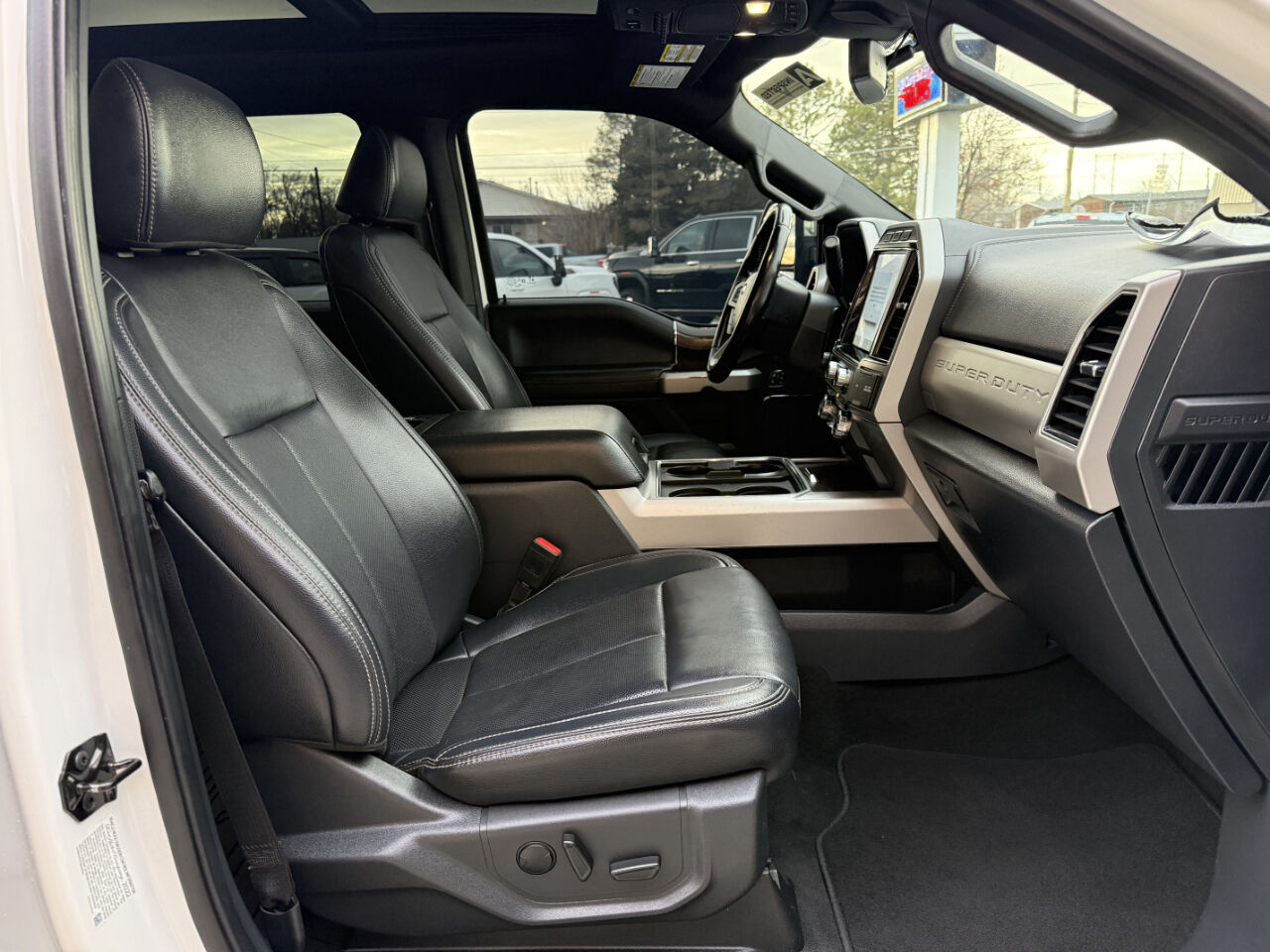 50-State Emissions System,Transmission w/Driver Selectable Mode and Oil Cooler,Electronic Transfer Case,Part-Time Four-Wheel Drive,Trailer Wiring Harness,HD Gas-Pressurized Shock Absorbers,Front Anti-Roll Bar,Firm Suspension,Auto Locking Hubs,Front Suspension w/Coil Springs,Solid Axle Rear Suspension w/Leaf Springs,4-Wheel Disc Brakes w/4-Wheel ABS- Front And Rear Vented Discs- Brake Assist and Hill Hold Control,Regular Box Style,Steel Spare Wheel,Black Side Windows Trim and Black Front Windshield Trim,Aluminum Panels,Tailgate Rear Cargo Access,Cargo Lamp w/High Mount Stop Light,Fixed Antenna,2 LCD Monitors In The Front,Remote Ignition,Backup Camera,Diesel,Bedliner,Leather Seats,Air Conditioned Seats,Heated Seats,Tow Package,Sun Roof,Navigation,FordPass Connect 4G Mobile Hotspot Internet Access,Front Cupholder,Rear Cupholder,Compass,Locking Glove Box,Urethane Gear Shifter Material,Fade-To-Off Interior Lighting,Front And Rear Map Lights,Cab Mounted Cargo Lights,Driver Information Center,Trip Computer,Outside Temp Gauge,Air Filtration,Side Impact Beams,Dual Stage Driver And Passenger Seat-Mounted Side Airbags,Mykey System -inc: Top Speed Limiter- Audio Volume Limiter- Early Low Fuel Warning- Programmable Sound Chimes and Beltminder w/Audio Mute,Safety Canopy System Curtain 1st And 2nd Row Airbags,Outboard Front Lap And Shoulder Safety Belts -inc: Rear Center 3 Point and Height Adjusters,Dual Stage Driver And Passenger Front Airbags,Rear Child Safety Locks