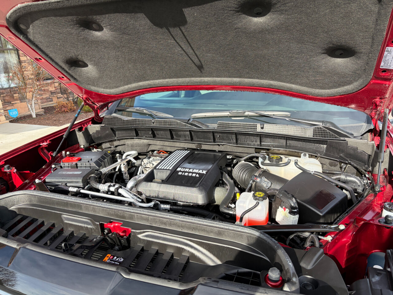 Trailering Package includes trailer hitch- 7-pin and 4-pin connectors and (CTT) Hitch Guidance,Engine- Duramax 3.0L Turbo-Diesel I6 (305 hp [227 kW] @ 3750 rpm- 495 lb-ft of torque [671 Nm] @ 2750 rpm) (Includes (KW5) 220-amp alternator and (K05) engine block heater.),Rear axle- 3.23 ratio,Pickup bed,GVWR- 7200 lbs. (3266 kg) (Requires TK10*43 Crew Cab 4WD model with (LZ0) Duramax 3.0L Turbo-Diesel I6 engine.),Air filter- heavy-duty,Automatic Stop/Start,Hill Descent Control,Auto-locking rear differential,Transfer case- two-speed- electronic Autotrac with push button control (4WD models only),Suspension- Off-Road with 2"" factory installed lift and monotube shocks,Four wheel drive,Alternator- 220 amps (Included and only available with (LZ0) Duramax 3.0L Turbo-Diesel I6 engine.),Battery- heavy-duty 850 cold-cranking amps/95 Amp-hr- maintenance-free with rundown protection and retained accessory power (Included and only available with (LZ0) Duramax 3.0L Turbo-Diesel I6 engine.),Frame- fully-boxed- hydroformed front section,Trailer brake controller- integrated,Recovery hooks- Red,Skid Plates,Cargo tie downs (12)- fixed,Steering- Electric Power Steering (EPS) assist- rack-and-pinion,Brakes- 4-wheel antilock- 4-wheel disc with DURALIFE rotors,Brake lining wear indicator,Capless Fuel Fill,Exhaust- dual system (Includes chrome exhaust tips. Not available with (L87) 6.2L EcoTec3 V8 engine.),Exhaust- aluminized stainless-steel muffler and tailpipe,Wheel- 17"" x 8"" (43.2 cm x 20.3 cm) full-size- steel spare,Wheelhouse liners- rear (Deleted with (PCP) AT4 CarbonPro Edition.),Tire carrier lock keyed cylinder lock that utilizes same key as ignition and door,Bumper- front- body-color lower,Bumper- rear body-color with corner steps,CornerStep- rear bumper,Grille (Black chrome grille insert bars with gloss black header and accents.),Fog lamps- LED,Lighting- perimeter,Taillamps- LED LED signature taillight with LED stop- turn & reverse and Fade-on/Fade-off animation,Mirror caps- high gloss Black,Wipers- front rain-sensing,Glass- deep-tinted,Lamps- cargo area- cab mounted integrated with center high mount stop lamp- with switch in bank on left side of steering wheel,LED Cargo Area Lighting located in cargo bed activated with switch on center switch bank or key fob,Tailgate- GMC MultiPro Tailgate with six functional load/access features,Tailgate- gate function manual with EZ Lift includes power lock and release- includes hitch area light,Tailgate and bed rail protection caps- top,Door handles- body-color,Steering wheel audio controls,Wi-Fi Hotspot capable (Terms and limitations apply. See onstar.com or dealer for details.),Seat adjuster- driver 10-way power including lumbar,Seat adjuster- passenger 10-way power including lumbar,Seat- Up-level Rear with Storage Package- 60/40 folding bench for Crew Cab models- includes full-length bench seat- seatback storage on left and right side- center fold out armrest with 2 cupholders- full cab width under-seat storage- (includes child seat top tether anchor),Seats- heated second row outboard seats,Center Console- floor-mounted with cup holders- cell phone storage- power cord management- hanging file folder capability,Floor covering- color-keyed carpeting,Steering column- power rake and telescoping,Steering wheel- wrapped,Steering wheel- heated,Driver Information Center- enhanced- 12.3"" diagonal reconfigurable multicolor digital display,GMC Premium information Display- 13.4"" diagonal Multicolor touch screen,In-Vehicle Trailering App System- includes checklist- trailer maintenance reminders- trailer security alerts- trailer mileage- tow/haul reminder- trailer electrical diagnostics and Trailer Tire Pressure Monitor System module,Compass- located in instrument cluster,Exterior Temperature Display- located in radio display,Remote vehicle starter system,Adaptive Cruise Control,Theft-deterrent system- unauthorized entry,Steering column lock- electrical,Wireless Charging,Power outlet- interior power outlet- 120-volt (400 watts shared with (KC9) bed mounted power outlet),USB ports- (2) charge-only- rear,Power outlet- bed mounted- 120-volt (400 watts shared with (KI4) interior power outlet),Air conditioning- dual-zone automatic climate control,Air vents- rear,Assist handles front A-pillar mounted for driver and passenger- rear B-pillar mounted,StabiliTrak- stability control system with Proactive Roll Avoidance and traction control- includes electronic trailer sway control and hill start assist,Airbags- Dual-stage frontal airbags for driver and front outboard passenger; Seat-mounted side-impact airbags for driver and front outboard passenger; Head-curtain airbags for front and rear outboard seating positions; Includes front outboard Passenger Sensing System for frontal outboard passenger airbag (Always use seat belts and child restraints. Children are safer when properly secured in a rear seat in the appropriate child restraint. See the Owner's Manual for more information.),Hitch View with image adjustment- Pan/Zoom/Tilt,Hitch Guidance,Trailer Camera Provisions and trailer viewing software,Front and Rear Park Assist- ultrasonic,Following Distance Indicator (Included and only available with (PDI) GMC Pro Safety.),Trailer Side Blind Zone Alert,Rear Cross Traffic Braking,Rear Pedestrian Alert,Safety Alert Seat (Included and only available with (PDI) GMC Pro Safety.),Seat Belt Adjustable Guide Loops- front row only,Buckle to Drive prevents vehicle from being shifted out of Park until driver seat belt is fastened; times out after 20 seconds and encourages seat belt use (Included and only available with (PDI) GMC Pro Safety.),Rear Seat Reminder,Rear Seat Belt Indicator