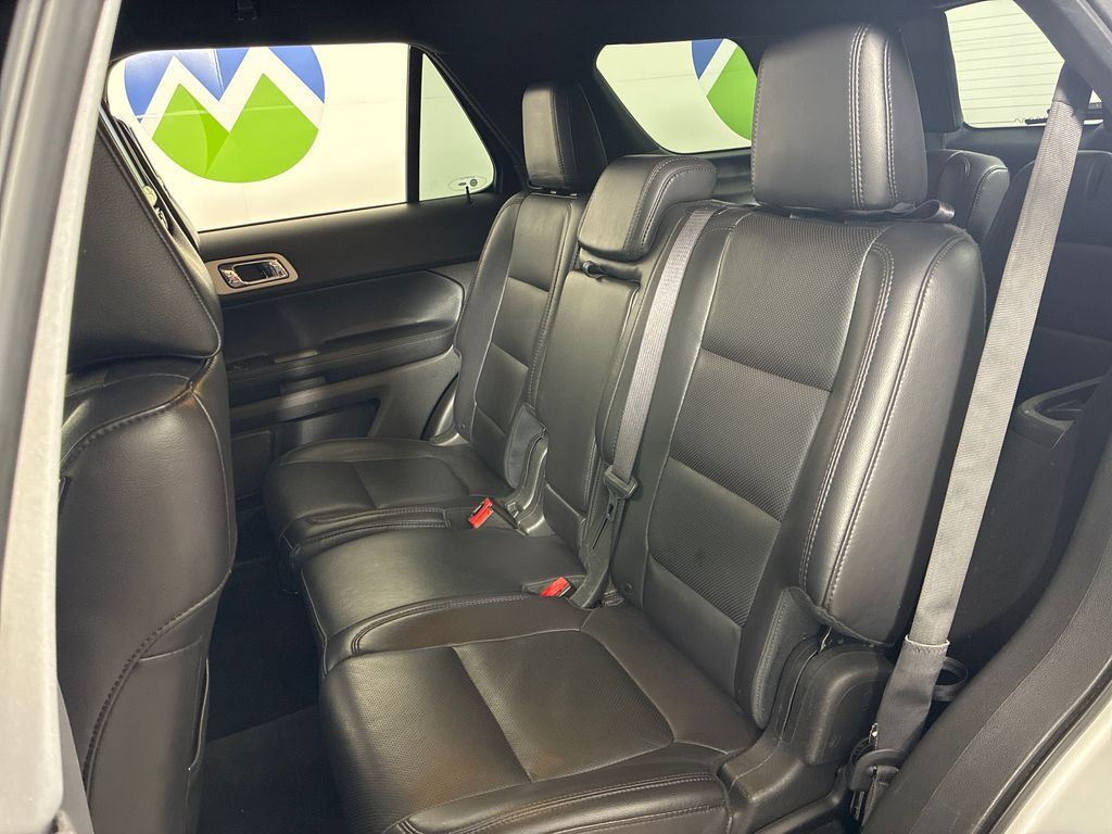This 2014 Ingot Silver Ford Explorer Limited 4WD is well equipped and includes these features and benefits: BLIS Plus Inflatable Rear-Seatbelt Package (BLIS Blind Spot Information System and Inflatable Rear Seatbelts), Equipment Group 302A (Active Park Assist, Heated Steering Wheel, HID Headlamps w/Auto High Beams, Lane Departure Warning & Lane Keep Assist, Power Liftgate, Power Tilt/Telescoping Steering Wheel, Rain Sensing Wipers, and Voice-Activated Navigation System), Luxury Seating Package (Perf Leather-Trimmed Heated/Cooled Bucket Seats and PowerFold 3rd Row Seat), Trailer Tow Package (Class III) (4.7 Pin Wiring Harness and Engine Oil Cooler), 4WD, 12 Speakers, 20'' Painted Aluminum Wheels, 20'' Polished Aluminum Wheels, 3.65 Axle Ratio, 3rd row seats: split-bench, 4-Wheel Disc Brakes, ABS brakes, Adjustable pedals, Air Conditioning, Alloy wheels, AM/FM radio: SiriusXM, Auto-dimming Rear-View mirror, Automatic temperature control, Bumpers: body-color, CD player, Compass, Delay-off headlights, Driver door bin, Driver vanity mirror, Dual front impact airbags, Dual front side impact airbags, Electronic Stability Control, Exterior Parking Camera Rear, Four wheel independent suspension, Front anti-roll bar, Front Bucket Seats, Front Center Armrest, Front dual zone A/C, Front fog lights, Front reading lights, Fully automatic headlights, Garage door transmitter: HomeLink, Heated door mirrors, Heated front seats, Heated rear seats, Illuminated entry, Knee airbag, Leather-Trimmed Heated Bucket Seats, License Plate Bracket, Low tire pressure warning, Memory seat, Occupant sensing airbag, Outside temperature display, Overhead airbag, Overhead console, Panic alarm, Passenger door bin, Passenger vanity mirror, Pedal memory, Power door mirrors, Power driver seat, Power passenger seat, Power steering, Power windows, Premium audio system: Sony, Radio data system, Radio: Sony Audio System w/12-Speakers, Rear air conditioning, Rear anti-roll bar, Rear Parking Sensors, Rear reading lights, Rear seat center armrest, Rear window defroster, Rear window wiper, Remote keyless entry, Roof rack: rails only, Security system, Speed control, Speed-sensing steering, Speed-Sensitive Wipers, Split folding rear seat, Spoiler, Steering wheel mounted audio controls, SYNC, Tachometer, Telescoping steering wheel, Tilt steering wheel, Traction control, Trip computer, Turn signal indicator mirrors, and Variably intermittent wipers.