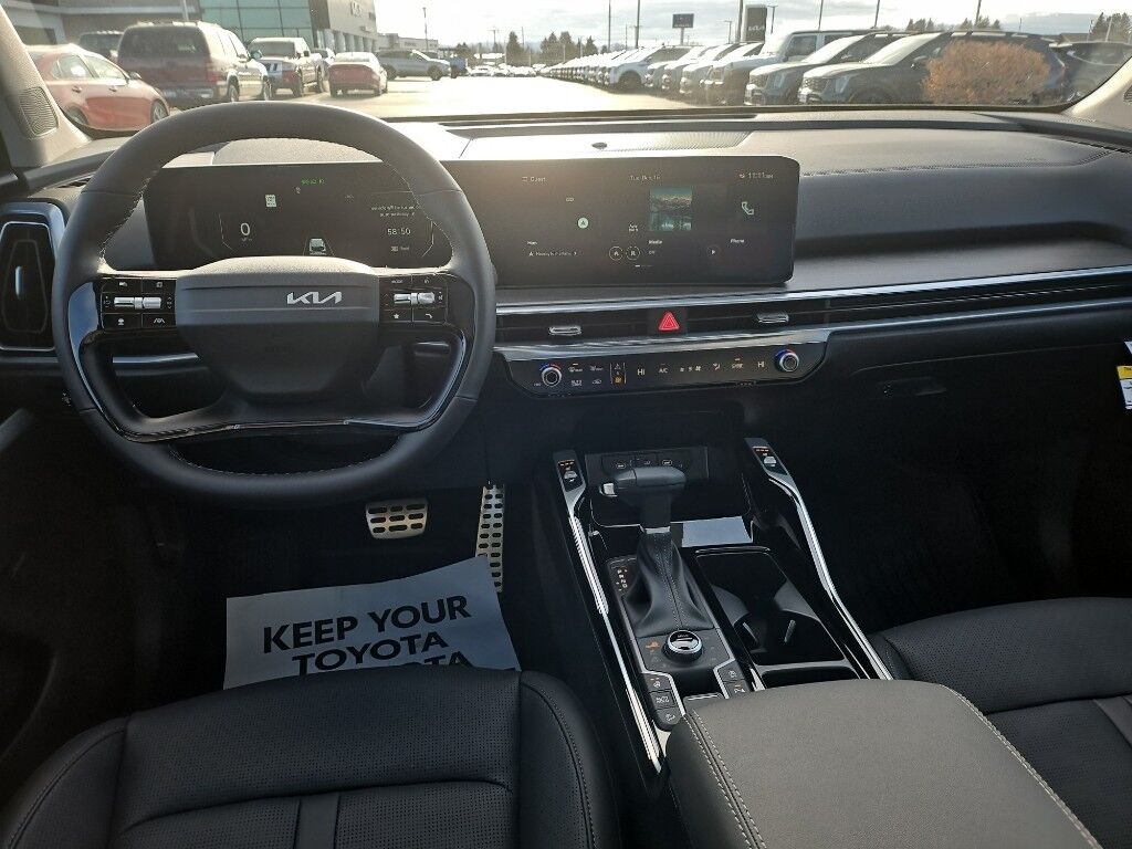 Apple CarPlay & Android Auto smart device wireless mirroring,Highway Driving Assist 2 (HDA 2) hands-on cruise control,Forward Collison-Avoidance Assist (FCA-JT: Cyc/Ped/Junction Turning) pedestrian impact prevention,Highway Driving Assist 2 (HDA 2) Automatic curve slowdown cruise control,Mobile hotspot internet access,Rear mounted camera,Lane Keep Assist System (LKAS),Rear Cross-Traffic Collision Avoidance (RCCA),Navigation-Based Smart Cruise Control-Ramp w/Stop & Go & Curve Control (NSCC-R),Brake assist system,Cruise control with steering wheel mounted controls,Smart Power Liftgate power liftgate rear cargo door,Ventilated driver and front passenger seats,Integrated navigation system with voice activation,Keyfob remote start,Heated steering wheel,Heated driver and front passenger seats,SynTex leatherette front seat upholstery,Primary monitor touchscreen,Fixed third-row seats,First and second-row sliding and tilting glass sunroof with express open/close activation sunshade,Driver seat power reclining, lumbar support, cushion tilt, fore/aft control and height adjustable control,DYNAMAX automatic full-time AWD,2.5L I-4 port/direct injection, DOHC, variable valve control, intercooled turbo, regular unleaded, engine with 281HP,2.5L I-4 DOHC,Front wireless smart device charging,Forward Collison-Avoidance Assist (FCA-JT: Cyc/Ped/Junction Turning) forward collision mitigation with left turn assist,Driver Attention Warning (DAW),Highway Driving Assist (HDA) traffic sign recognition with automatic speed limit assist,Smart Key with hands-free access and push button start,Surround View Monitor (SVM) aerial view camera,Blind-Spot View Monitor (BVM) left and right blind spot view,Smart device remote start,Push-button,Automatic brake hold,Bluetooth wireless audio streaming,Power rear child safety door locks,Gauge cluster display size: 12.30,Smart Liftgate proximity cargo area access release,Front mounted camera,Right side camera,Left side camera,Blind Spot Collision Warning (BCW) w/Parallel Exit,Safe Exit Warning (SEW) external exit warning system,Dual-zone front climate control,Kia Connect voice-activated climate control,Full gauge cluster screen,High Beam Assist (HBA) auto high-beam headlights,Second-row bucket seats,Manual fold into floor third-row seat