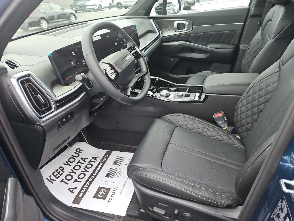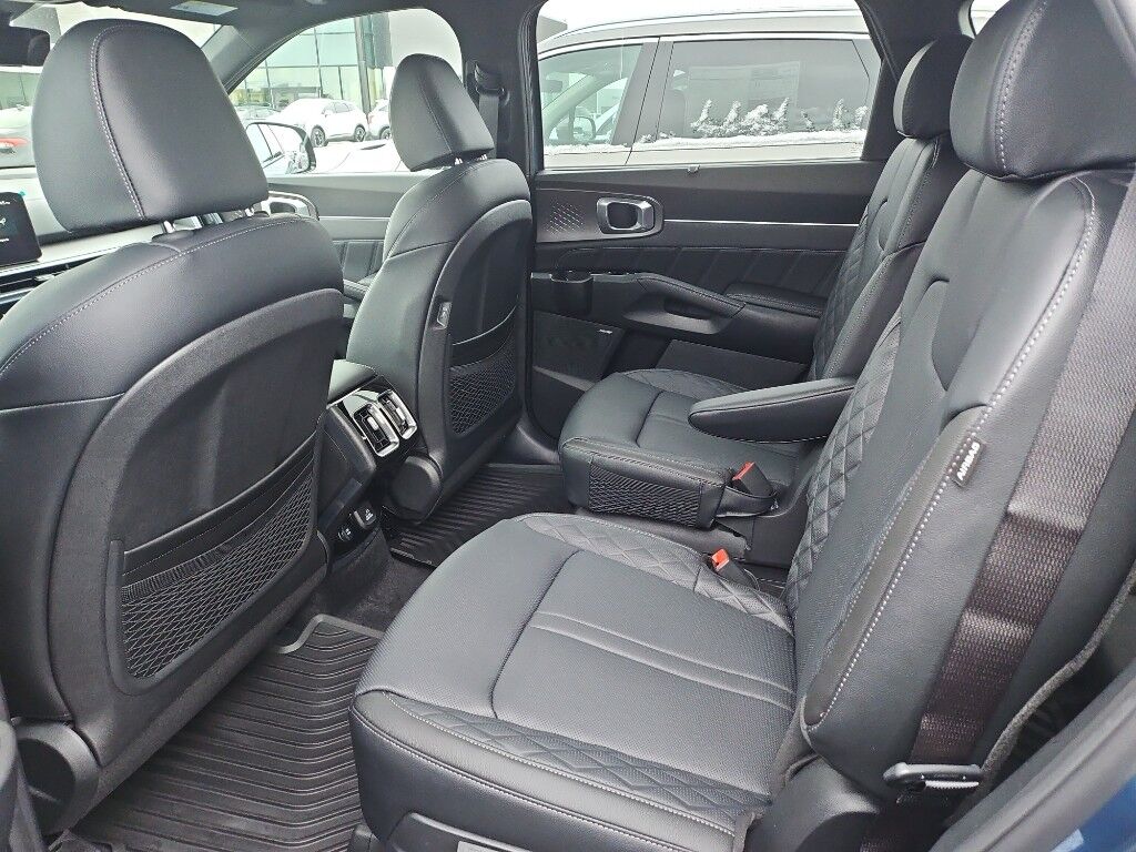 Apple CarPlay & Android Auto smart device wireless mirroring,Forward Collision-Avoidance Assist-Ped/Cyclist pedestrian impact prevention,Highway Driving Assist 2 (HDA 2) Automatic curve slowdown cruise control,Kia Connect mobile hotspot internet access,Rear mounted camera,Lane Keep Assist System (LKAS),Blind-Spot Collision-Avoidance Assist (BCA) active blind spot system,Rear Cross-Traffic Collision Avoidance (RCCA),Navigation-Based Smart Cruise Control-Ramp w/Stop & Go & Curve Control (NSCC-R) & Machine Learning (SCC-ML),Brake assist system,Cruise control with steering wheel mounted controls,Smart Power Liftgate power liftgate rear cargo door,Ventilated driver and front passenger seats,Integrated navigation system with voice activation,Keyfob remote start,Heated steering wheel,Heated driver and front passenger seats,Heated rear seats,Leather front seat upholstery,Primary monitor touchscreen,Fixed third-row seats,First and second-row sliding and tilting glass sunroof with express open/close activation sunshade,Driver seat power reclining, lumbar support, cushion extension, cushion tilt, fore/aft control and height adjustable control,Automatic full-time AWD,1.6L I-4 gasoline direct injection, DOHC, variable valve control, intercooled turbo, regular unleaded, engine with 177HP,1.6L I-4 DOHC,Front wireless smart device charging,Forward Collision-Avoidance Assist (FCA-LO/LS/JX),Driver Attention Warning (DAW ) w/Lead Vehicle Departure Alert (LVDA),Intelligent Speed Limit Assist (ISLA) traffic sign recognition with automatic speed limit assist,Evasive Steering Assist (ESA) evasion assist system,Parking Collision Avoidance Assist - Rear (PCA-R) rear pedestrian detection prevention,Junction Crossing front cross traffic mitigation,Smart Key with hands-free access and push button start,Surround View Monitor (SVM) aerial view camera,Blind-Spot View Monitor (BVM) left and right blind spot view,Smart device remote start,Push-button,Automatic brake hold,Video-feed rearview mirror,Bluetooth wireless audio streaming,Power rear child safety door locks,Digital Key 2.0 Advanced smart device-as-key proximity door locks,Gauge cluster display size: 12.30,Smart Liftgate proximity cargo area access release,Front mounted camera,Right side camera,Left side camera,Safe Exit Warning (SEW) external exit warning system,Dual-zone front climate control