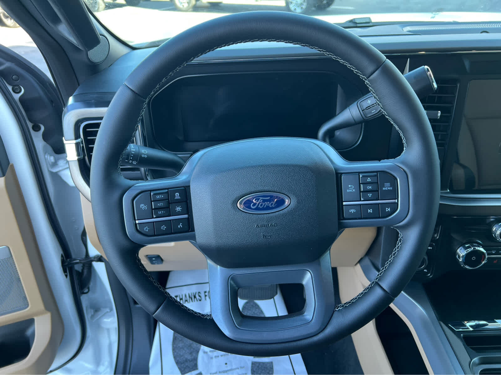 Navigation, 4x4, Heated Driver Seat, Heated Rear Seat, Cooled Driver Seat, Premium Sound System, Satellite Radio, iPod/MP3 Input. MP3 Player, Privacy Glass, Keyless Entry, Steering Wheel Controls. Ford LARIAT with Oxford White exterior and Baja interior features a 8 Cylinder Engine with 430 HP at 5500 RPM*.