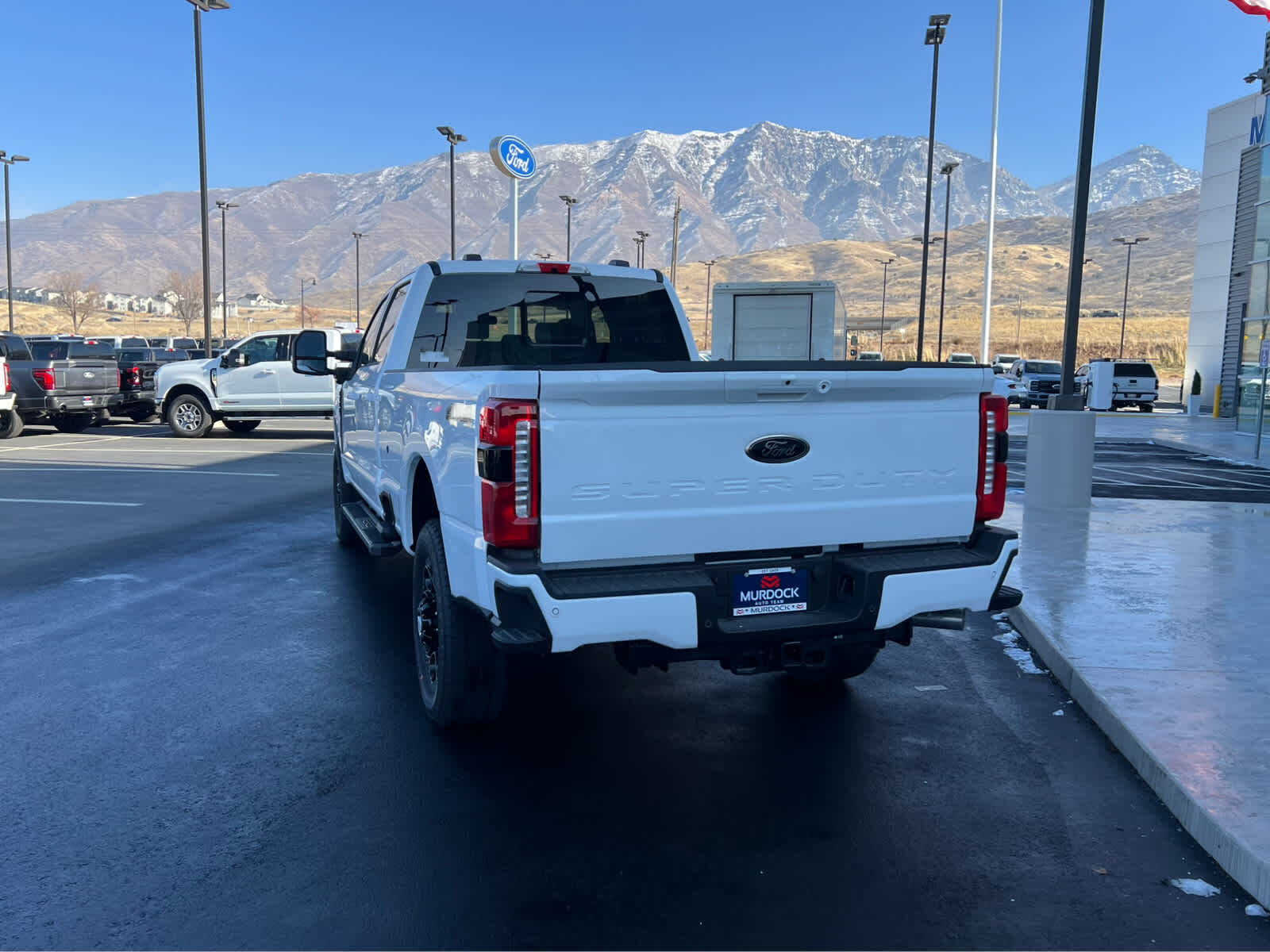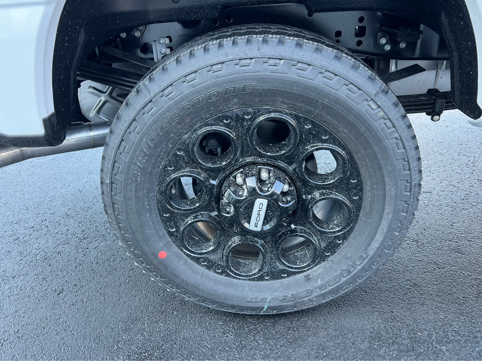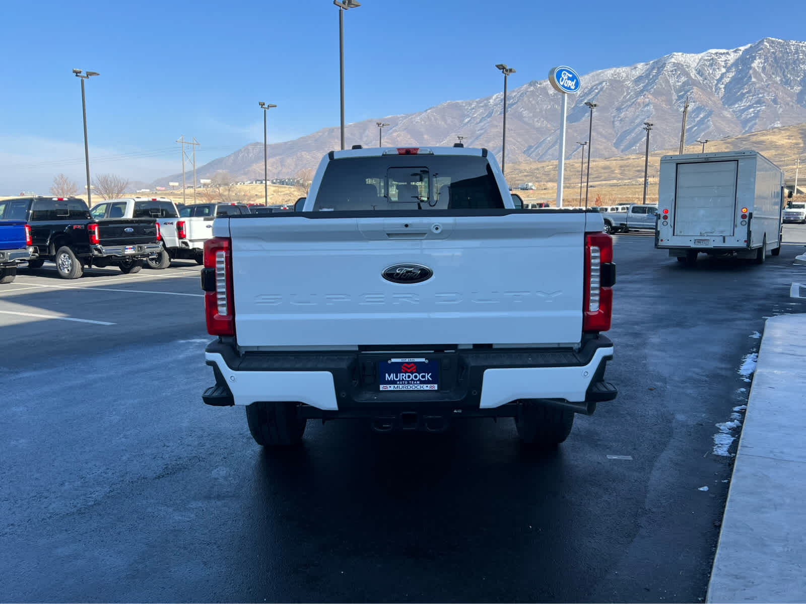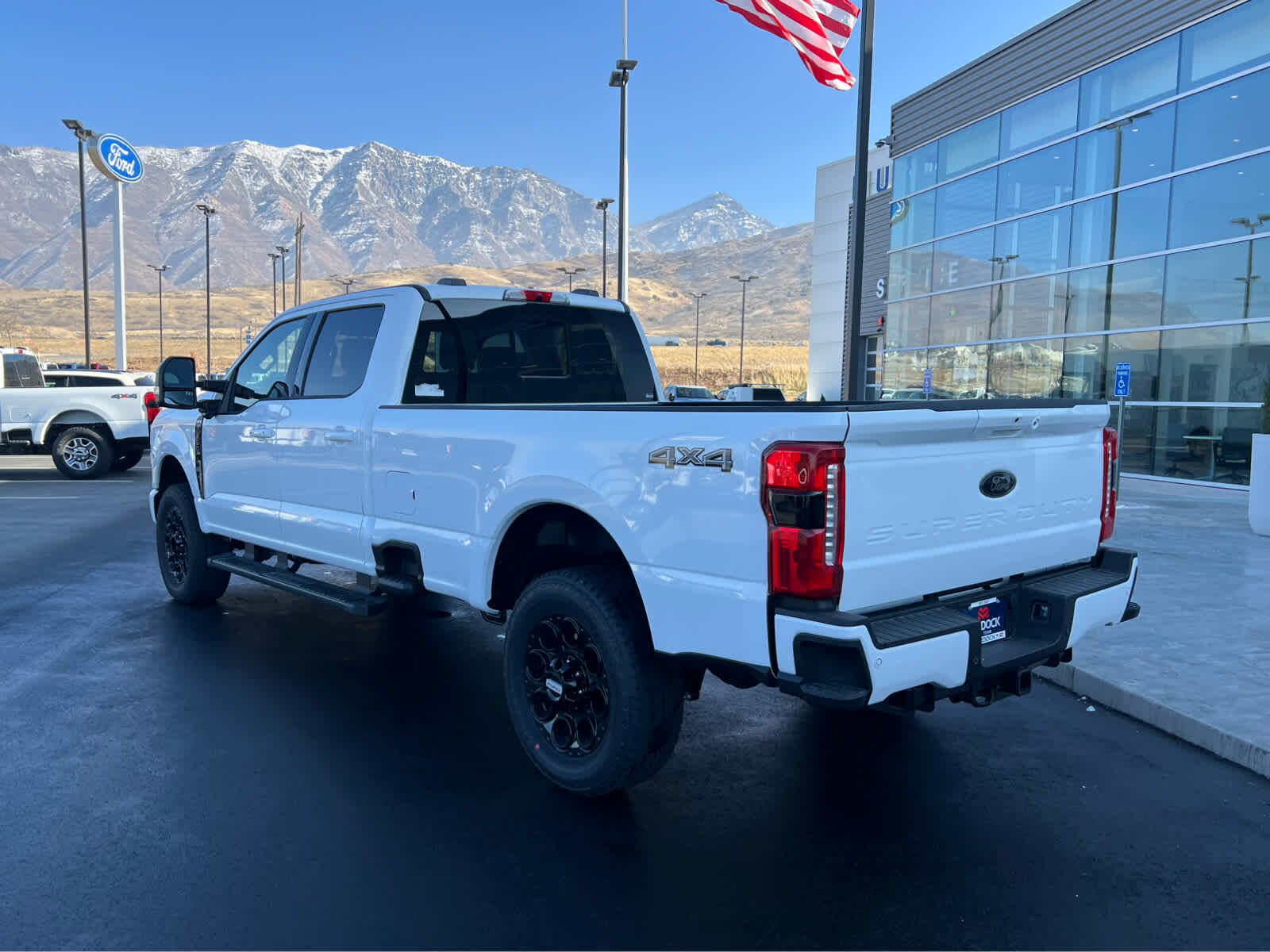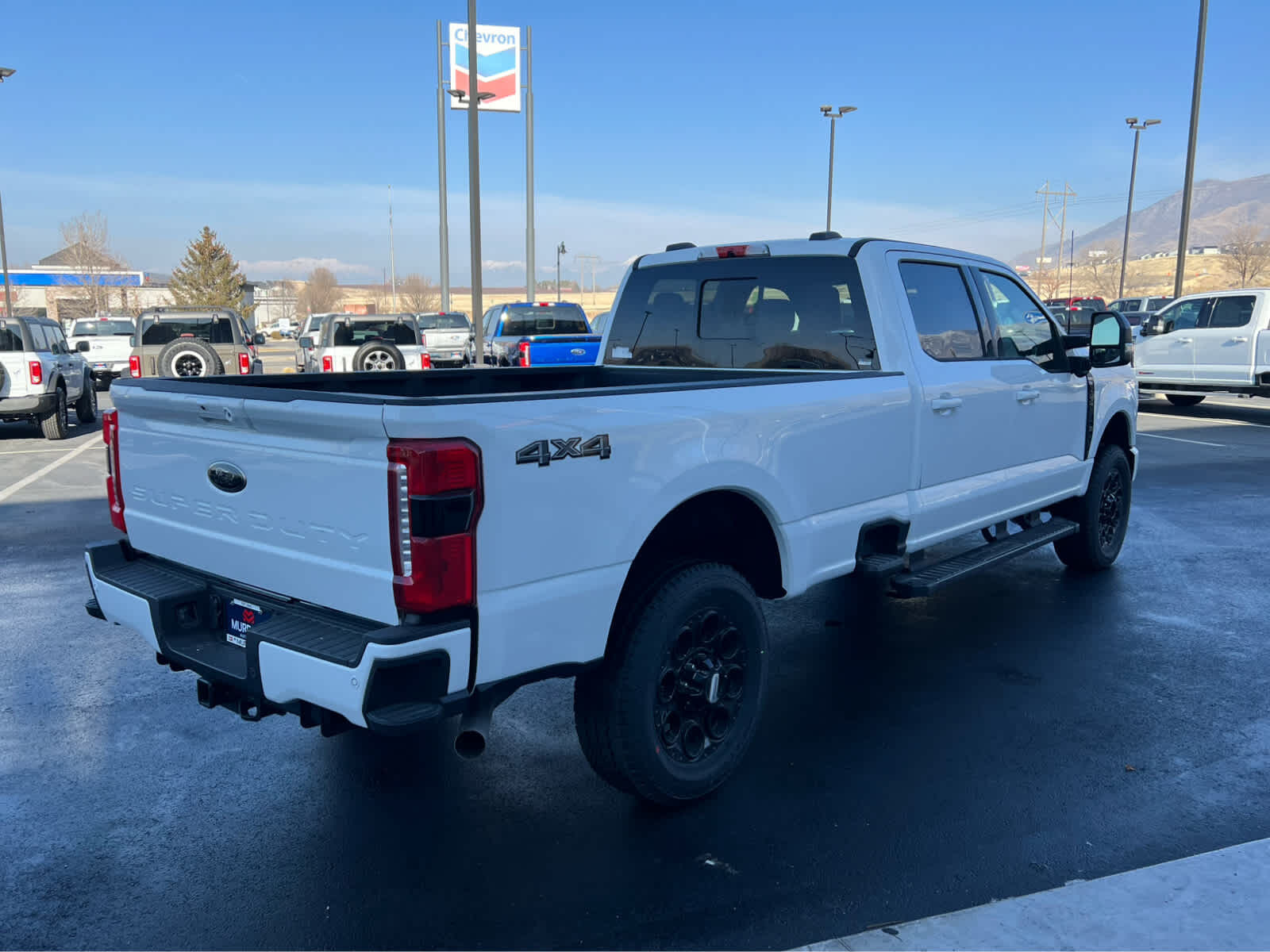 BLACK APPEARANCE PACKAGE front and rear black Ford ovals, box side decal (4x4, FX4 or Tremor) and ebony black fender vent surround dark fender badge, Rear Wheel Well Liners, Black Painted Front Grille Surround, Ebony Black Painted Mirror Caps, Tough Bed Spray-In Bedliner, tailgate-guard, black box bed tie-down hooks and black bed attachment bolts, Body Color Front & Rear Bumpers, Wheels: 20 Ebony Black High Gloss, Black premium painted aluminum, gloss black hub cover/center ornament, Tires: LT275/65Rx20E BSW Automatic Transmission (4), Spare may not be the same as road tire, 6 Ebony Black Angular Running Boards, LARIAT PREMIUM PACKAGE lane departure warning, Pro Trailer Hitch Assist, Ford Co-Pilot 360 Assist 2.0, rear view camera and reverse brake assist, Pre-Collision Assist, Automatic Emergency Braking (AEB), pedestrian detection, forward collision warning, dynamic brake support and intersection assist, Post-Collision Braking, Lane-Keeping System, lane-keeping alert, lane-keeping aid and driver alert, Front & Rear Parking Sensors, Automatic High Beam, Adaptive Cruise Control w/Stop-and-Go, lane centering and predictive speed assist, Power-Sliding Rear-Window w/Defrost, Pro Trailer Backup Assist, trailer reverse guidance, ENGINE: 7.3L 2V DEVCT NA PFI V8 GAS Electronic-Locking w/3.73 Axle Ratio, TWIN PANEL POWER MOONROOF map lights and moonroof switches, TAILGATE STEP & HANDLE, TRANSMISSION: TORQSHIFT 10-SPEED AUTOMATIC SelectShift and selectable drive modes: normal, eco, slippery roads, tow/haul and off-road.
