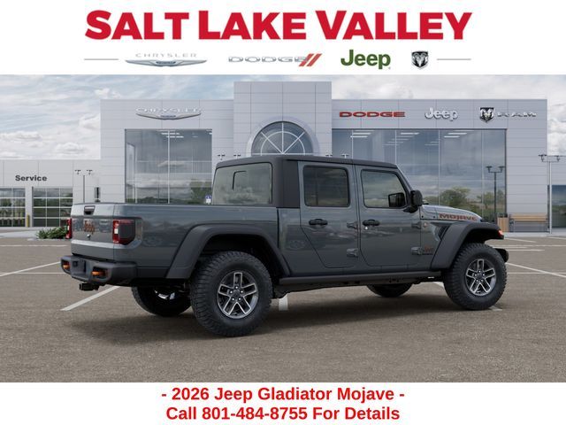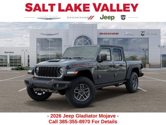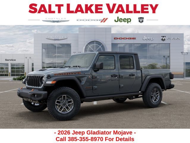 Adventure starts with the new Jeep Gladiator available now at Salt Lake Valley CDJR in Salt Lake City! Built for Utah’s canyons, trails, and highways alike, Jeep delivers freedom and capability in every mile. Discover why Gladiator drivers love to explore with confidence. Contact us at 801-484-8755 to schedule a time to see it today! 2026 Jeep Gladiator Mojave Anvil Clearcoat 3.6L V6 24V VVT