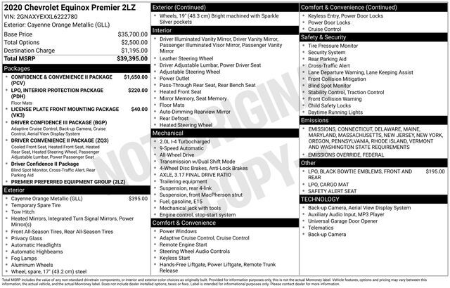 2020 Chevrolet Equinox Premier Cayenne Orange Metallic AWD 9-Speed Automatic with Overdrive 2.0L Turbocharged 22/28 City/Highway MPG