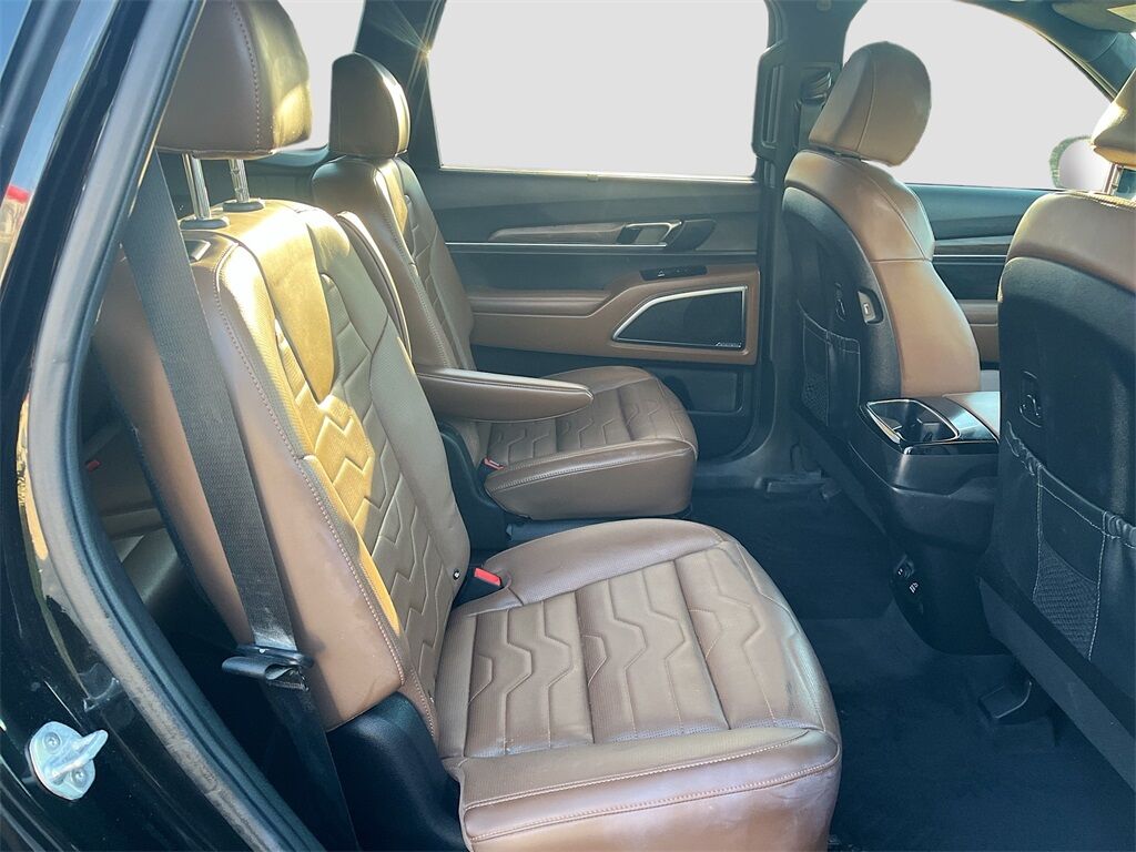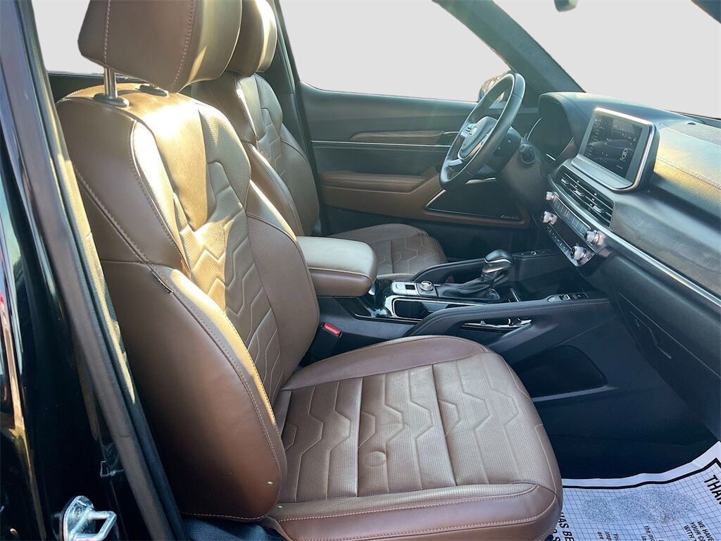 Discover the 2022 Kia Telluride SX AWD at AutoSavvy Woods Cross, a sophisticated blend of power, luxury, and technology. This Ebony Black sport utility vehicle, with only 34,645 miles, offers a nearly new driving experience. Under the hood, the robust LAMBDA II 3.8L V-6 engine delivers 291 horsepower, paired with an 8-speed automatic transmission for seamless performance. Enjoy the comfort of Nappa leather seats, a dual sunroof, and a 10-speaker Harman Kardon audio system. Stay connected with Apple CarPlay, Android Auto, and a 10.2-inch touchscreen display. Advanced safety features like adaptive cruise control, blind spot monitoring, and lane departure warning ensure peace of mind on every journey. The current status of the title is branded, highlighting AutoSavvy's commitment to transparency and quality assurance. Each vehicle undergoes a thorough inspection to meet high standards of reliability and performance. This Telluride also boasts premium options like the Nightfall Edition Package, adding exclusive black alloy wheels and gloss black finish accents, enhancing its bold appearance. Visit AutoSavvy Woods Cross today to explore this exceptional 2022 Kia Telluride SX AWD. Whether you're tackling daily commutes or embarking on a family adventure, this Telluride is engineered to exceed expectations, offering a perfect fusion of style, comfort, and cutting-edge technology. Experience the difference with AutoSavvy, where quality and value drive every decision.