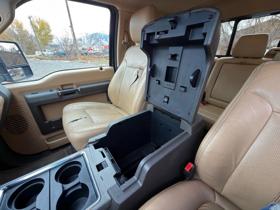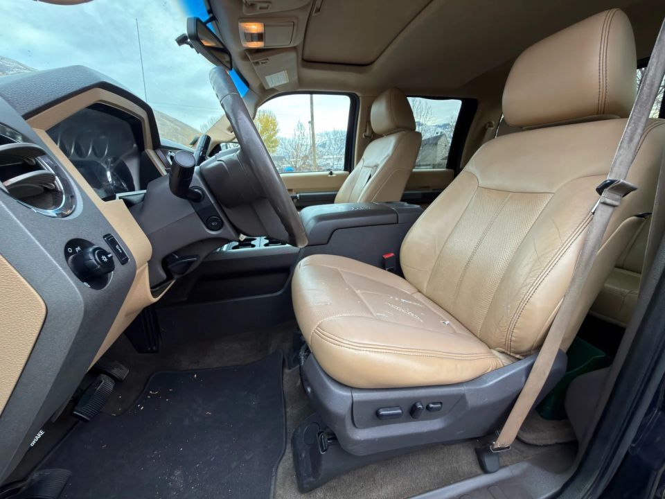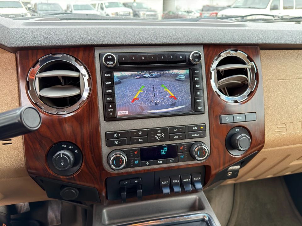 Dual Air Bags,SYNC,Power Windows,Fog Lights,Power Sliding Rear Window,Dual Power Seats,CD/MP3 (Single Disc),Air Conditioning,F&R Side Air Bags,Anti-Theft System,Parking Sensors,Power Steering,4WD,Cruise Control,F&R Head Curtain Air Bags,Keyless Entry,Premium Sound,ABS (4-Wheel),Backup Camera,Automatic 6-Spd w/Overdrive & SelectShift,Towing Pkg,Heated Seats,AdvanceTrac,AM/FM Stereo,Tilt & Telescoping Wheel,Power Door Locks,Hill Start Assist Control,Alloy Wheels,Traction Control,Leather,V8 Turbo Diesel 6.7L,Sirius Satellite