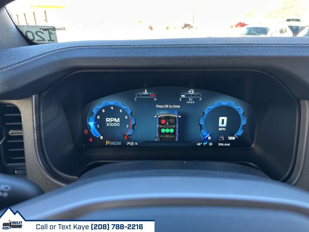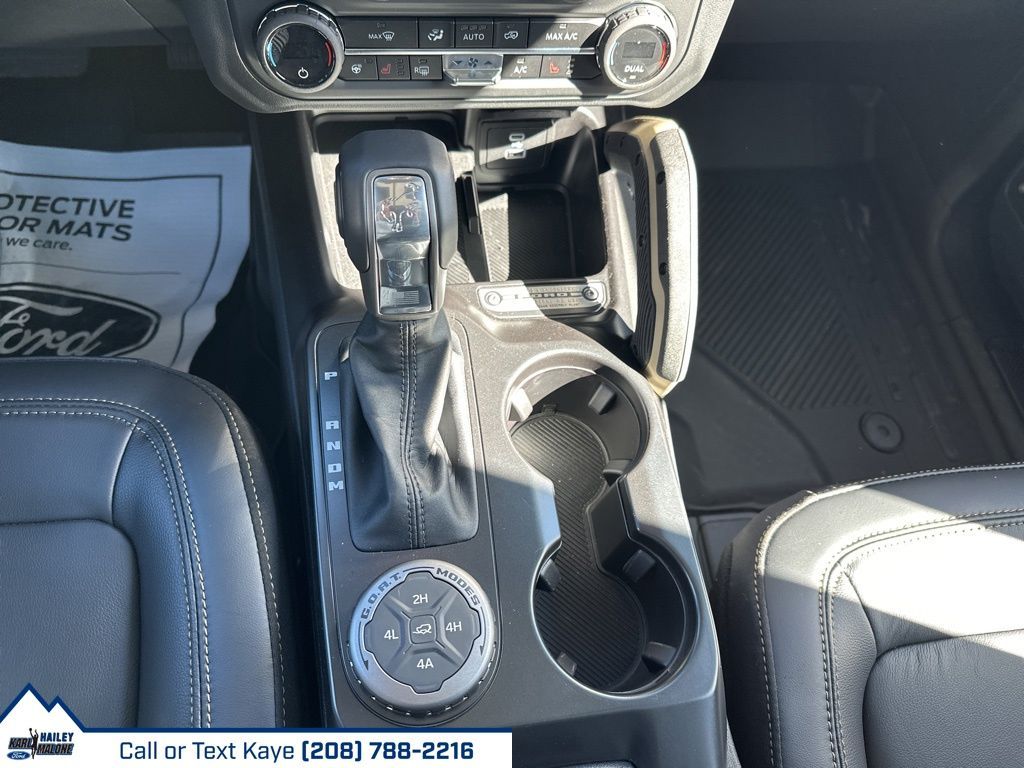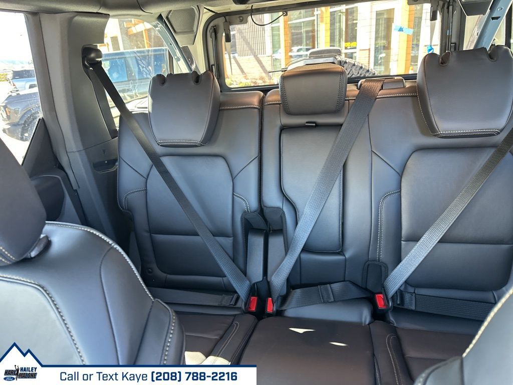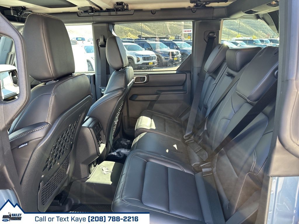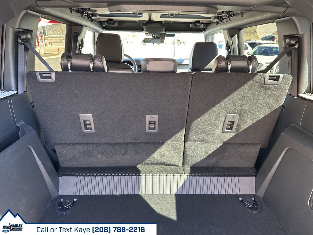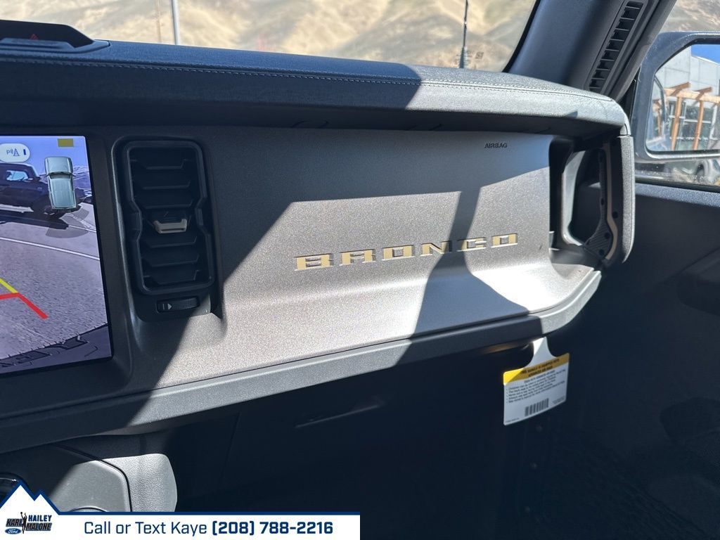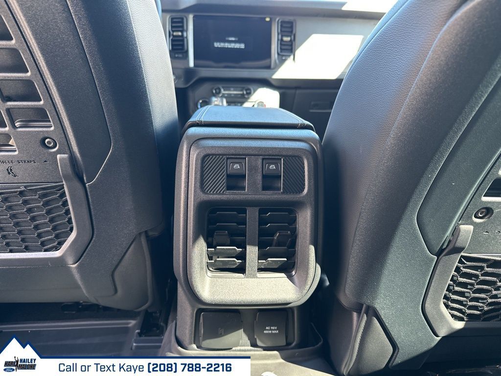 2-Door Intelligent Access w/Lock/Unlock, 4-Wheel Disc Brakes, 7 Speakers, ABS brakes, Air Conditioning, Alloy wheels, AM/FM radio: SiriusXM with 360L, AM/FM Stereo, Ambient Footwell Lighting, Auto High-Beam Headlamps, Auto High-beam Headlights, Auto-dimming Rear-View mirror, BLIS Blind Spot Information System, Body Color-Painted Hard Top, Brake assist, Compass, Connected Navigation, Delay-off headlights, Dr & Pass Illuminated Sliding Visor Vanity Mirrors, Driver door bin, Driver vanity mirror, Dual front impact airbags, Dual front side impact airbags, Dual Smart Charging USB Ports, Dual-Zone Electronic Automatic Temperature Control, Electronic Stability Control, Emergency communication system: 911 Assist, Equipment Group 332A Mid Package, Exterior Parking Camera Rear, Front & Rear Floor Liners w/o Carpet Floor Mats, Front anti-roll bar, Front Bucket Seats, Front Center Armrest, Front fog lights, Front License Plate Bracket, Front reading lights, Front Row Heated Seats, Front wheel independent suspension, Fully automatic headlights, Hard Top Sound Deadening Headliner, Heated door mirrors, Heated front seats, Heated steering wheel, High Clearance Fender Flares, High Clearance Suspension, Illuminated entry, Integrated roll-over protection, Internet access capable: FordPass Connect, Lane-Keeping System, Leather Shift Knob, Low tire pressure warning, Marine Grade Vinyl Heated Bucket Seats, Occupant sensing airbag, Outside temperature display, Overhead airbag, Overhead console, Panic alarm, Passenger door bin, Passenger vanity mirror, Position-Sensitive Bilstein Shock Absorbers, Power door mirrors, Power Outlet - Back Side of Center Floor Console, Power steering, Power windows, Pre-Collision Assist w/Automatic Emergency Braking, Radio data system, Raptor-Style Running Board, Rear Parking Sensors, Rear-View Camera, Rear-Window Defroster & Washer, Remote keyless entry, Sasquatch Package, Security system, SiriusXM w/360L, Speed control, Split folding rear seat, Steering wheel mounted audio controls, SYNC 4, Tachometer, Telescoping steering wheel, Tilt steering wheel, Traction control, Trip computer, Variably intermittent wipers, Voltmeter, Wheels: 17'' Carbonized Gray Painted Aluminum, Wheels: 17'' Carbonized Gray-Painted Aluminum.