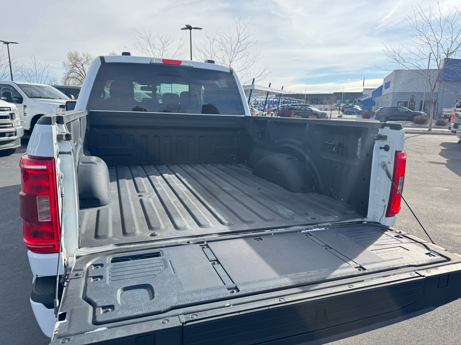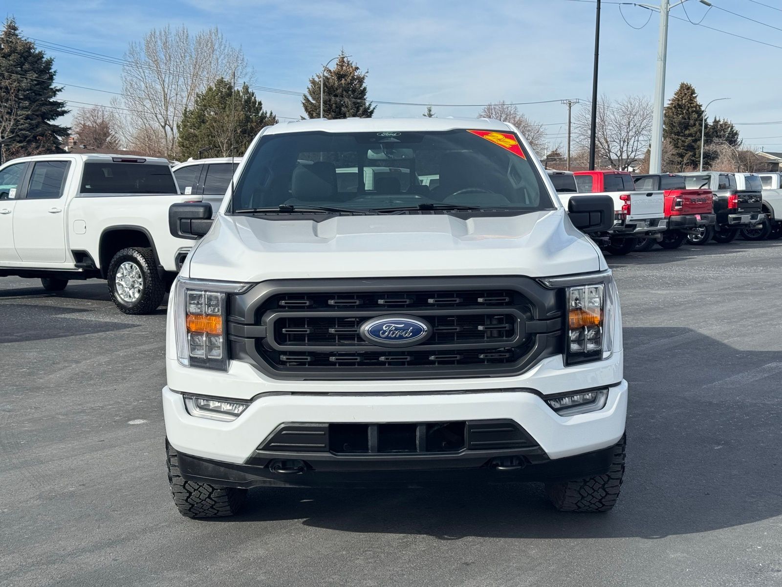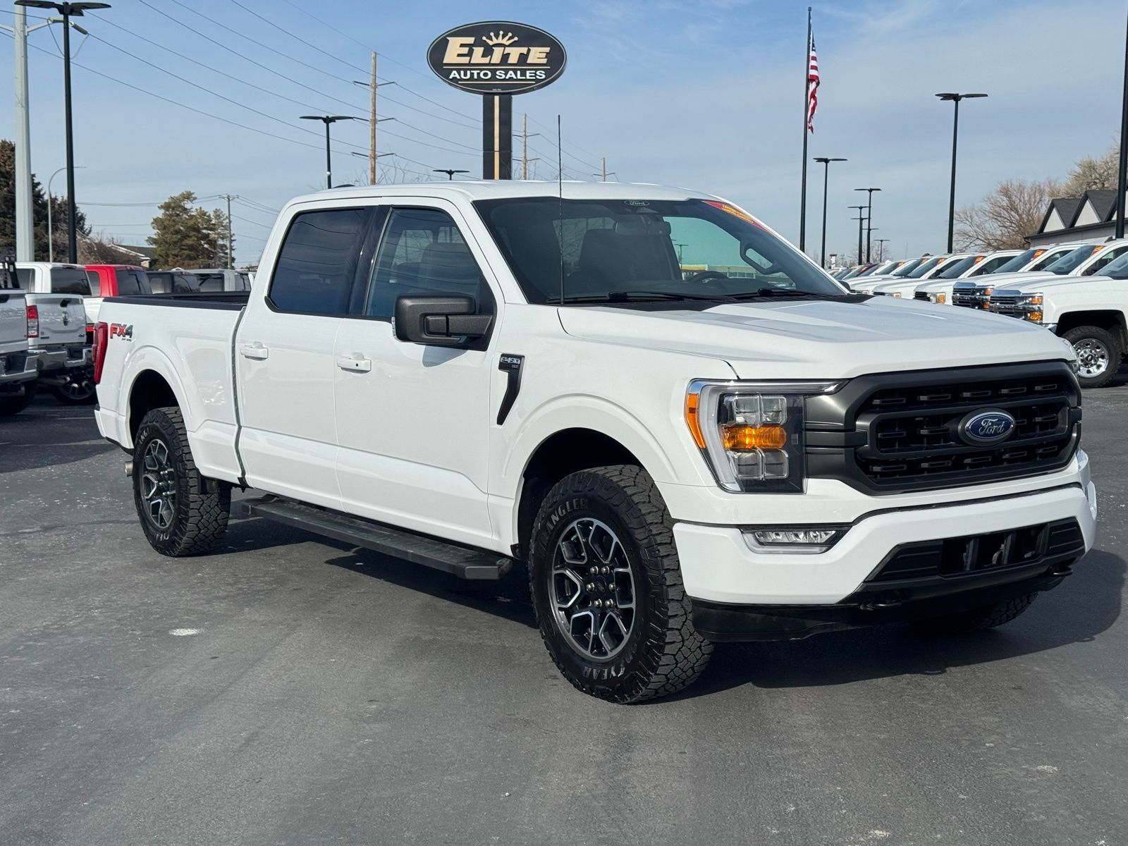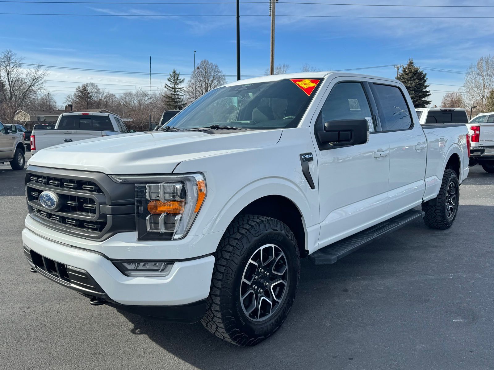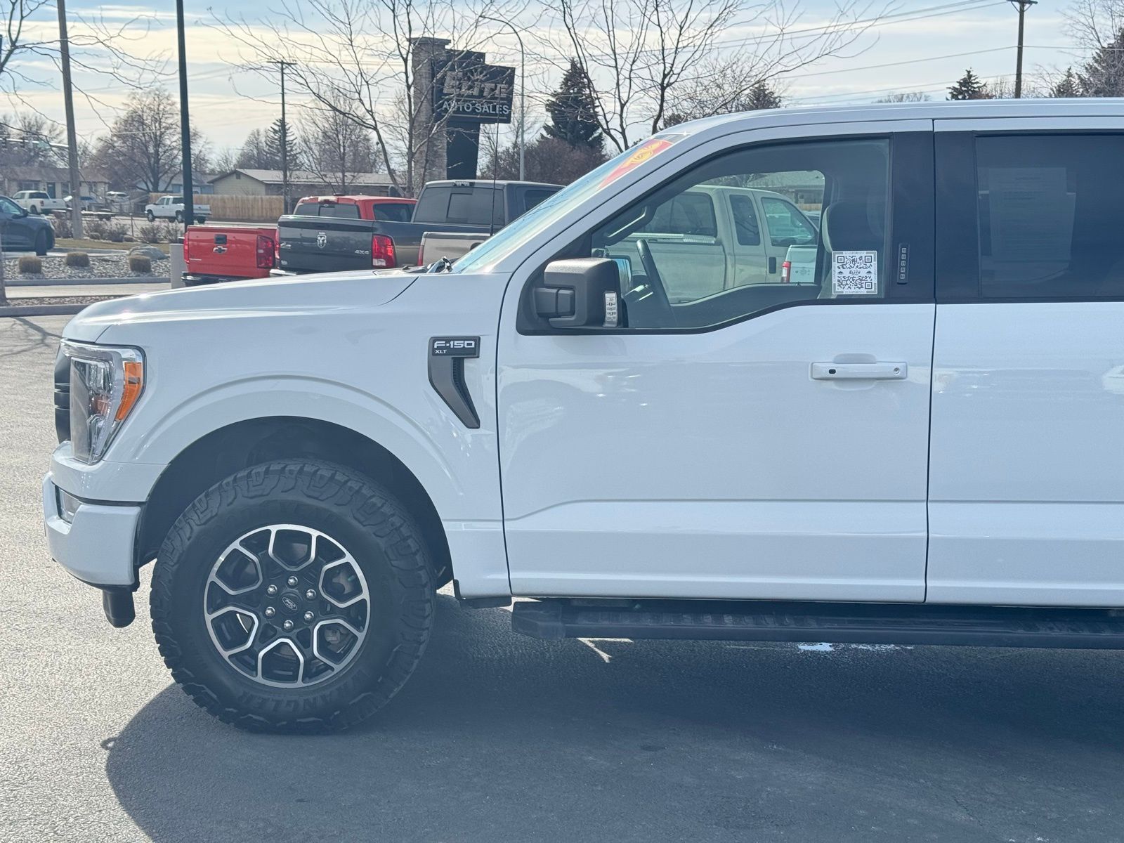 White 2022 Ford F-150 XLT 4D SuperCrew 2022 4WD, 10-Way Power Driver & Passenger Seats, 4x4 FX4 Off-Road Bodyside Decal, 8'' Productivity Screen in Instrument Cluster, ABS brakes, Accent-Color Step Bars, Alloy wheels, Auto-Dimming Rear-View Mirror, Black 2-Bar Style Grille w/Black Surround/Accents, Body-Color Door & Tailgate Handles, Body-Color Front & Rear Bumpers, Box Side Decals, Class IV Trailer Hitch Receiver, Compass, Dual Zone Electronic Automatic Temperature Control, Electronic Stability Control, Equipment Group 302A High, FX4 Off-Road Package, Heated door mirrors, Heated Front Seats, Hill Descent Control, Illuminated entry, Integrated Trailer Brake Controller, Intelligent Access w/Push Button Start, Leather-Wrapped Steering Wheel, LED Reflector Headlamps, LED Sideview Mirror Spotlights, Low tire pressure warning, Monotube Rear Shocks, Off-Road Tuned Front Shock Absorbers, Onboard 400W Outlet, Power Glass Heated Sideview Mirrors, Pro Trailer Backup Assist, Radio: AM/FM SiriusXM w/360L, Rear Under-Seat Storage, Remote keyless entry, Remote Start System w/Remote Tailgate Release, Rock Crawl Mode, SecuriCode Drivers Side Keyless-Entry Keypad, SYNC 4 w/Enhanced Voice Recognition, Traction control, Trailer Tow Package, Tray Style Floor Liner (47W), Unique Sport Cloth 40/Console/40 Front-Seats, Wheels: 18'' 6-Spoke Machined Aluminum, XLT Sport Appearance Package, Zone Lighting. XLT 10-Speed Automatic Ford 5.0L V8 F-150 16/22 City/Highway MPG 4WD