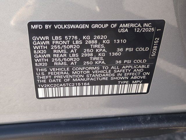 silver mist metallic 2026 Volkswagen Atlas Cross Sport 2.0T SE w/Technology AWD 8-Speed Automatic with Tiptronic 2.0L TSI Black Wheel Package, Fixed Rear Power Tilting and Sliding Panoramic Sunroof, Front-Door Mounted Volkswagen Logo Puddle Lights (set of 2), Heavy Duty Trunk Liner with VW CarGo Blocks, Panoramic Sunroof Package, Retractable Privacy Cover For Cargo Area, Roadside Assistance Kit, Rubber Monster Mats Kit (set of 4), VW Care, Wheels: 20 Multi-Spoke Black Painted Alloy, 4-Wheel Disc Brakes, 4-Wheel Independent Suspension, 6 Speakers, ABS brakes, Air Conditioning, Alloy wheels, AM/FM radio: SiriusXM with 360L, Auto High-beam Headlights, Auto-dimming Rear-View mirror, Automatic temperature control, Brake assist, Bumpers: body-color, Compass, Delay-off headlights, Driver door bin, Driver vanity mirror, Dual front impact airbags, Dual front side impact airbags, Electronic Stability Control, Emergency communication system: VW Car-Net Safe & Secure 5-year, Exterior Parking Camera Rear, First Aid Kit, Four wheel independent suspension, Front anti-roll bar, Front Bucket Seats, Front Center Armrest, Front dual zone A/C, Front fog lights, Front reading lights, Fully automatic headlights, Garage door transmitter: HomeLink, Heated and Actively Ventilated Front Bucket Seats, Heated door mirrors, Heated front seats, Heated steering wheel, Illuminated entry, Low tire pressure warning, Occupant sensing airbag, Outside temperature display, Overhead airbag, Overhead console, Panic alarm, Passenger door bin, Passenger vanity mirror, Perforated V-Tex Leatherette Seating Surfaces, Power door mirrors, Power driver seat, Power Liftgate, Power steering, Power windows, Radio data system, Radio: MIB3 Composition Media, Rain sensing wipers, Rear anti-roll bar, Rear reading lights, Rear seat center armrest, Rear window defroster, Rear window wiper, Remote keyless entry, Security system, Speed control, Speed-sensing steering, Split folding rear seat, Spoiler, Steering wheel mounted audio controls, Tachometer, Telescoping steering wheel, Tilt steering wheel, Traction control, Trip computer, Turn signal indicator mirrors, Variably intermittent wipers, Ventilated front seats, Wheels: 20 5-Spoke 2-Tone Machined Alloy, IQ.DRIVE, Black Wheel Package, Fixed Rear Power Tilting and Sliding Panoramic Sunroof, Front-Door Mounted Volkswagen Logo Puddle Lights (set of 2), Heavy Duty Trunk Liner with VW CarGo Blocks, Panoramic Sunroof Package, Retractable Privacy Cover For Cargo Area, Roadside Assistance Kit, Rubber Monster Mats Kit (set of 4), VW Care, Wheels: 20 Multi-Spoke Black Painted Alloy.Recent Arrival! 19/26 City/Highway MPG $1,500 Financing Discount Included in all Discounts. Must allow Ken Garff VW to arrange financing. Must finance a minimum of 90% of MSRP. Not Valid with 0% or other subvented interest rates. Remaining Discounts are a Combination of Ken Garff Discounts and Remaining Manufacturer Rebates and Incentives. See dealer for complete details and limitations. $2500 - Customer Bonus. Exp. 03/02/2026