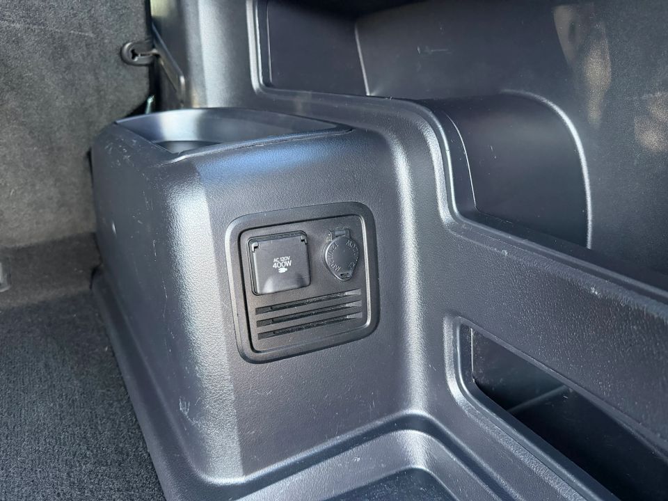 �Multiple power outlets, including a household-style 120V outlet