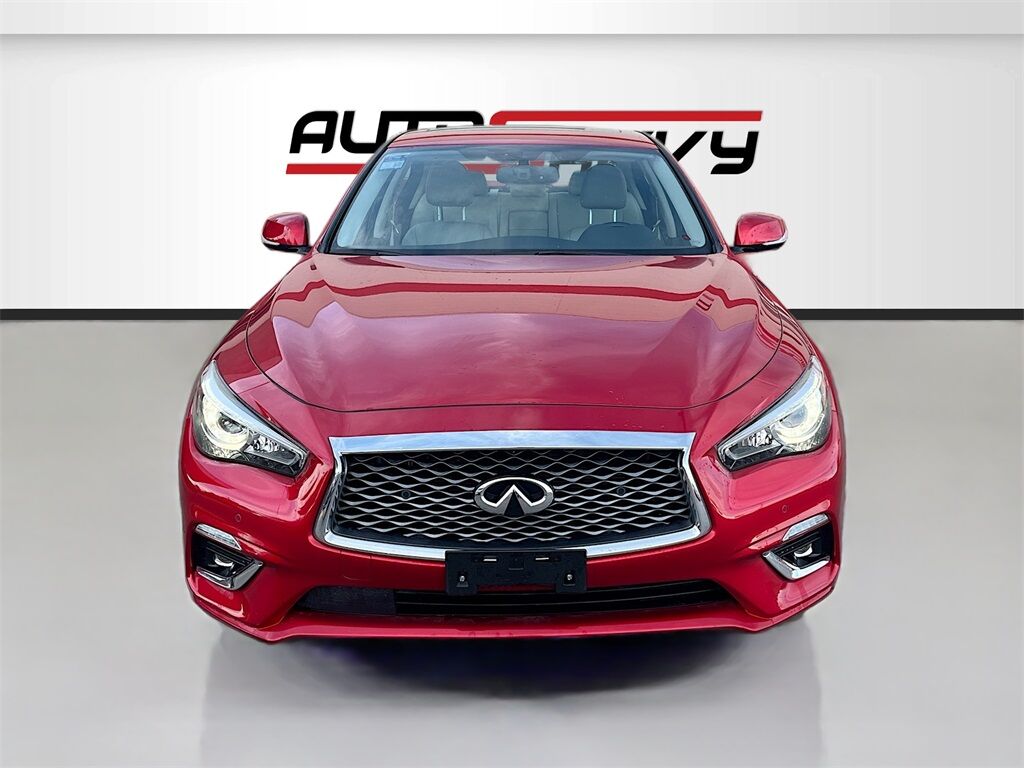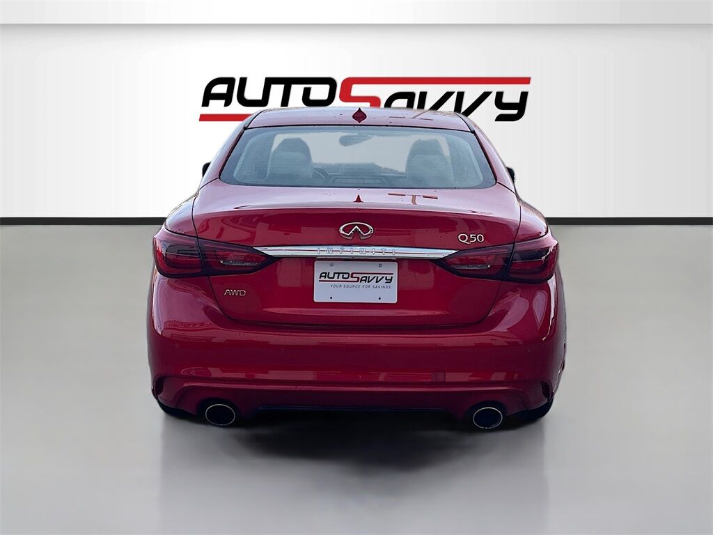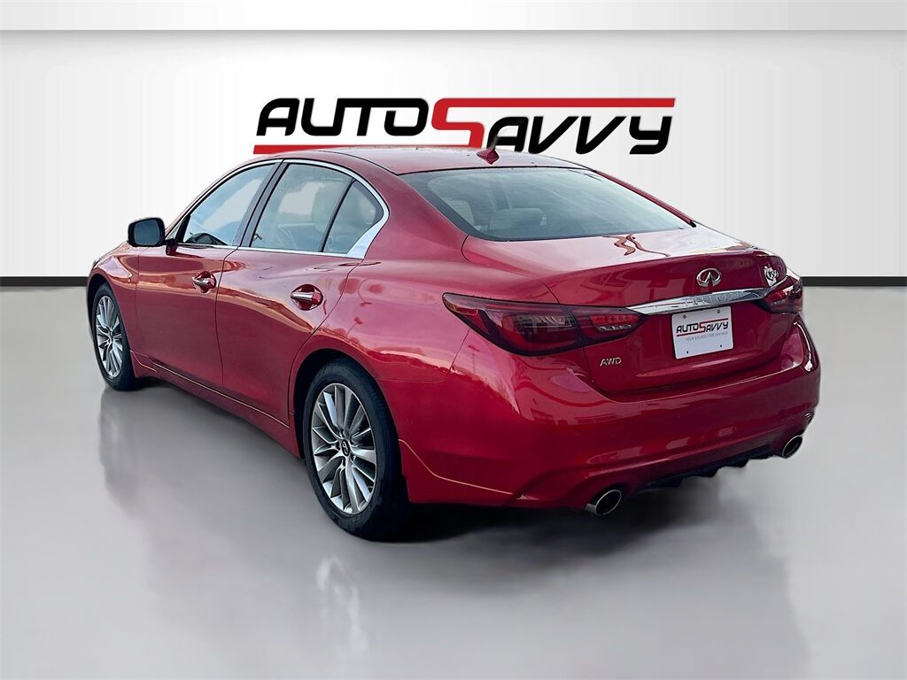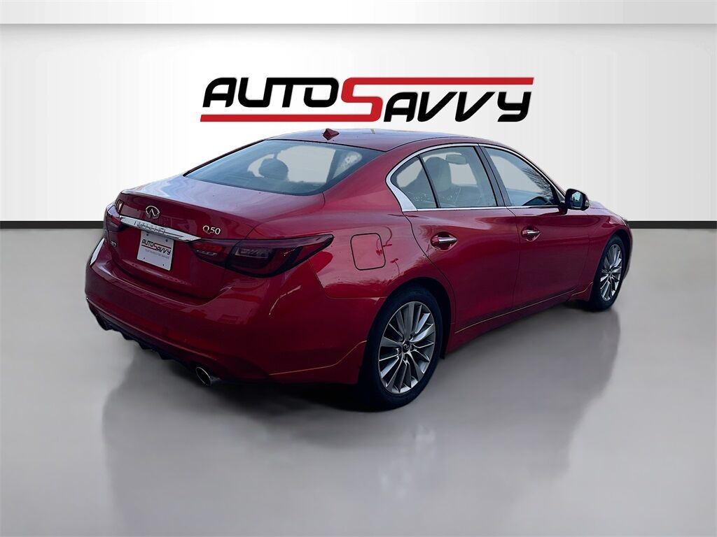 Discover the 2023 INFINITI Q50 LUXE AWD at AutoSavvy Windsor, a striking blend of luxury and performance. This Dynamic Sunstone Red sedan, with only 10,996 miles, is powered by a robust 3.0L V-6 engine with twin turbochargers, delivering an impressive 300 horsepower. Enjoy a smooth ride with the 7-speed automatic transmission and all-wheel drive capability. Inside, revel in the premium comfort of leather front seats, a heated steering wheel, and dual-zone climate control. Stay connected with advanced technology features like Apple CarPlay, Android Auto, and a Bose Performance Series sound system with 16 speakers for an immersive audio experience. Safety is paramount with features like adaptive cruise control, blind spot monitoring, and automatic emergency braking. The current status of the title is branded, reflecting AutoSavvy Windsor's dedication to transparency and quality assurance. This INFINITI Q50 has undergone a meticulous inspection to meet high safety and performance standards, ensuring you drive away with confidence. Visit AutoSavvy Windsor today to explore this exceptional sedan, where luxury, technology, and performance converge for an unparalleled driving experience. Whether you're navigating city streets or cruising on the highway, this vehicle is designed to deliver comfort, power, and style every mile of the way.