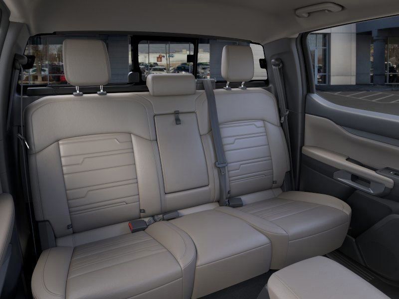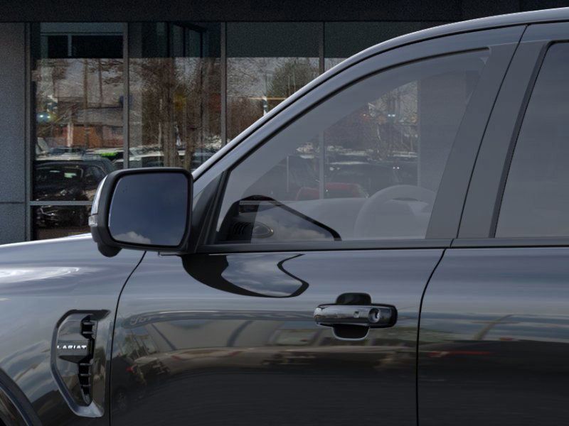 This 2025 Shadow Black Ford Ranger Lariat 4WD is well equipped and includes these features and benefits: Equipment Group 500A Standard, Sport Appearance Package (Gray Painted Center Bar & Grille Surround, Gray Painted Front Fascia & Rear Bumper, and Sport Box Decal), 4WD, 10 Speakers, 3.73 Axle Ratio, 4-Wheel Disc Brakes, ABS brakes, Air Conditioning, Alloy wheels, AM/FM radio: SiriusXM, Auto High-beam Headlights, Auto-dimming Rear-View mirror, Automatic temperature control, Brake assist, Compass, Delay-off headlights, Driver door bin, Driver vanity mirror, Dual front impact airbags, Dual front side impact airbags, Electronic Stability Control, Emergency communication system: SYNC 4 911 Assist, Front anti-roll bar, Front Bucket Seats, Front Center Armrest, Front dual zone A/C, Front fog lights, Front reading lights, Front wheel independent suspension, Fully automatic headlights, Garage door transmitter, Heated door mirrors, Heated front seats, Heated steering wheel, Illuminated entry, Internet access capable: FordPass Connect 4G, Leather Shift Knob, Leather steering wheel, Leather-Trimmed Front Heated Bucket Seats, Low tire pressure warning, Memory seat, Navigation system: Connected Navigation, Occupant sensing airbag, Outside temperature display, Overhead airbag, Overhead console, Panic alarm, Passenger door bin, Passenger vanity mirror, Power door mirrors, Power driver seat, Power passenger seat, Power steering, Power windows, Radio: B&O Sound System by Bang & Olufsen, Rain sensing wipers, Rear reading lights, Rear seat center armrest, Rear step bumper, Rear window defroster, Remote keyless entry, Security system, SiriusXM Satellite Radio, Speed control, Speed-sensing steering, Steering wheel mounted audio controls, SYNC 4A w/Connected Navigation, Telescoping steering wheel, Tilt steering wheel, Traction control, Trip computer, Turn signal indicator mirrors, Variably intermittent wipers, Voltmeter, and Wheels: 18'' Machined Aluminum w/Dark Pockets.
