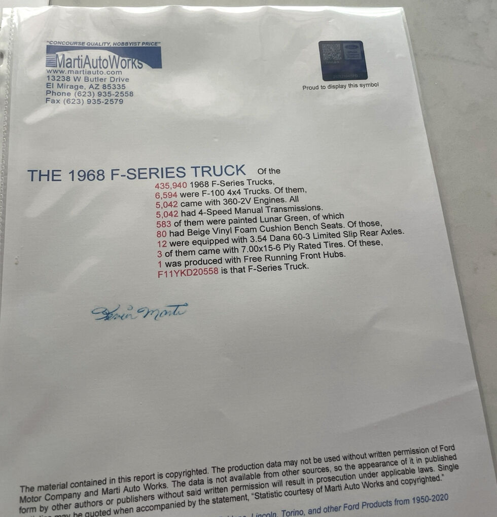 Here it is.. the 4x4 Shortbed Ford you’ve been dreaming of. Prime example of what most call the golden era of trucks. This extremely rare shortbed bumpside Ford takes you back to experience that golden era. Time capsule truck. The Marti Report shows this is a true 1 of 1 truck.