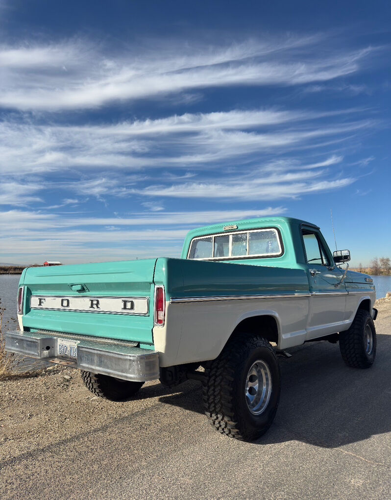 ‘68 Ford F100 Shortbed 4x4. 360FE paired with a 4 speed manual transmission. Front locking hubs. Body lift. Custom exhaust. Brand new interior. Driver quality. Undercarriage has been professionally blasted and coated.