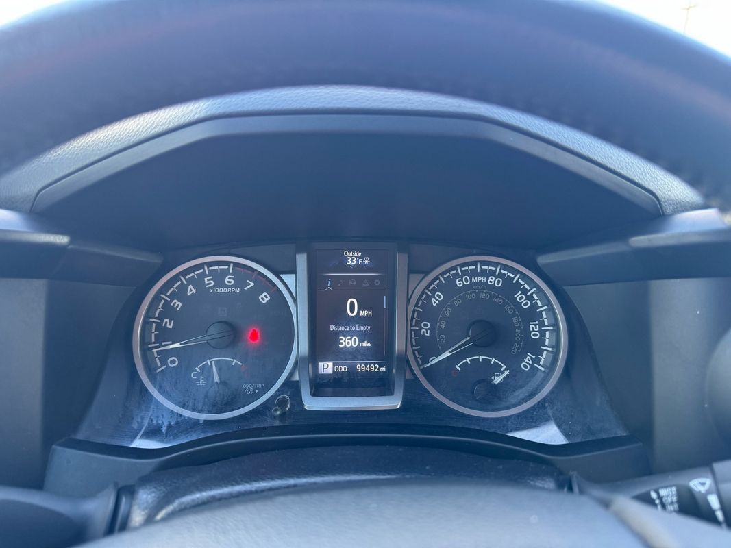 Navigation System,Bluetooth,Backup Camera,Driver seat manual adjustments: lumbar reclining, 4,Front headrests: adjustable 2,Front seat type: bucket,Passenger seat manual adjustments: reclining 4,Rear headrests: adjustable foldable, 3,Rear seat folding: split,Rear seat type: 60-40 split bench,Upholstery: cloth,ABS: 4-wheel,Braking assist: ,Electronic brakeforce distribution: ,Front brake diameter: 10.8,Front brake type: ventilated disc,Power brakes: ,Rear brake diameter: 10.0,Rear brake type: drum,Alternator: 130 amps,Auxiliary oil cooler: ,Battery saver: ,Spark plugs: iridium tipped,Daytime running lights: ,Front fog lights: ,Headlights: auto delay off auto high beam dimmer, halogen,Active head restraints: dual front,Automatic emergency braking: front front pedestrian,Body side reinforcements: side impact door beams,Camera system: rearview,Child safety door locks: ,Child seat anchors: LATCH system,Impact sensor: fuel cut-off,Lane deviation sensors: ,Pre-collision warning system: audible warning pedestrian detection, visual warning,Rearview monitor: in dash,Safety brake pedal system: ,Airbag deactivation: occupant sensing passenger,Front airbags: dual,Knee airbags: dual front,Side airbags: front,Side curtain airbags: front rear,Side-curtain airbag rollover sensor: ,Side mirror adjustments: manual folding power,Front wipers: variable intermittent,Pickup sliding rear window: power horizontal,Power windows: ,Rear privacy glass: ,2-stage unlocking doors: ,Anti-theft system: engine immobilizer,Power door locks: auto-locking,Steering ratio: 17.3,Turns lock-to-lock: 3.6,Emergency locking retractors: front rear,Front seatbelts: 3-point,Rear seatbelts: 3-point,Seatbelt force limiters: front,Seatbelt pretensioners: front,Seatbelt warning sensor: front,4WD selector: electronic hi-lo,4WD type: part time,Axle ratio: 3.91,Front shock type: gas,Front spring type: coil,Front stabilizer bar: diameter 30 mm,Front struts: ,Front suspension classification: independent,Front suspension type: double wishbone,Rear shock type: gas,Rear spring type: leaf,Rear stabilizer bar: ,Rear suspension classification: solid live axle,Rear suspension type: multi-leaf,Electronic messaging assistance: voice operated with read function,Navigation app: Scout GPS Link,Navigation data: real time traffic,Phone: hands free,Wireless data link: Bluetooth,Antenna type: diversity mast,Auxiliary audio input: Bluetooth USB, iPod/iPhone, jack,In-Dash CD: single disc,Radio: AM/FM touch screen display, voice operated,Radio data system: ,Satellite radio: SiriusXM,Speed sensitive volume control: ,Total speakers: 6,Spare tire mount location: underbody,Spare tire size: full-size,Spare wheel type: steel,Tire Pressure Monitoring System: ,Tire type: all season,Wheels: alloy,Clock: ,Compass: ,Digital odometer: ,Driver information system: ,External temperature display: ,Fuel economy display: MPG range,Gauge: tachometer,Instrument cluster screen size: 4.2 in.,Multi-function display: ,Trip odometer: ,Warnings and reminders: coolant temperature warning lamp failure, low fuel level, low oil pressure, maintenance due, tire fill alert,Air filtration: ,Front air conditioning: ,Front air conditioning zones: single,Floor material: carpet,Shift knob trim: urethane,Steering wheel trim: leather,Bumper detail: rear step,Door handle color: body-color,Exhaust tip color: stainless-steel,Fender lip moldings: body-color,Front bumper color: body-color,Grille color: black chrome surround,Mirror color: body-color,Pickup bed light: ,Rear bumper color: chrome,Skid plate(s): front,Tailgate: removable,Tailgate protection cap: ,Window trim: black,Auxiliary transmission fluid cooler: ,Cargo tie downs: ,Trailer hitch: Class IV,Trailer wiring: 4-pin 7-pin,Adaptive cruise control: ,Assist handle: front rear,Center console: front console with armrest and storage,Cupholders: front rear,Multi-function remote: keyless entry panic alarm,One-touch windows: 1,Overhead console: front,Power outlet(s): 12V front,Power steering: variable/speed-proportional,Power windows: lockout button,Reading lights: front rear,Rearview mirror: auto-dimming,Retained accessory power: ,Steering wheel: tilt and telescopic,Steering wheel mounted controls: audio cruise control, multi-function, phone, voice control,Storage: door pockets front seatback, grocery bag holder, sunglasses holder, under rear seats,Sun visors: ,Connected in-car apps: weather,Infotainment: Entune,Infotainment screen size: 6.1 in.,Hill holder control: ,Stability control: ,Traction control: ,Trailer stability control: