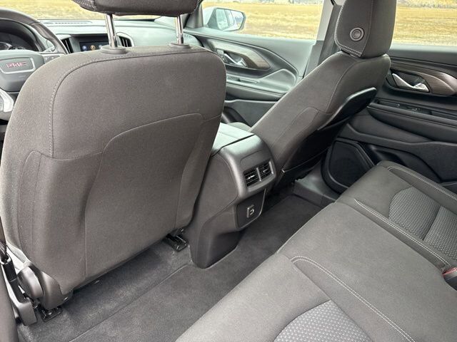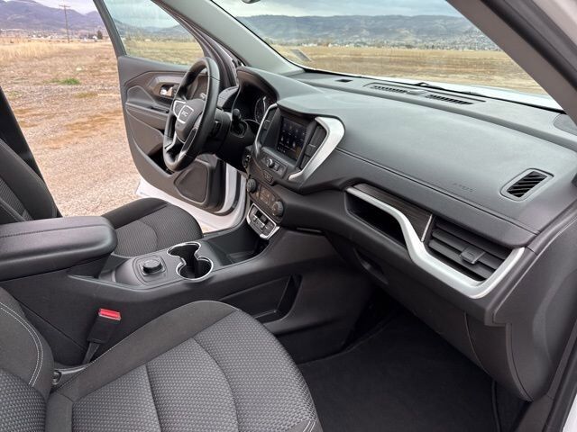 JET BLACK PREMIUM CLOTH SEAT TRIM,AUDIO SYSTEM 7 DIAGONAL GMC INFOTAINMENT SYSTEM includes multi-touch display AM/FM stereo includes Bluetooth streaming audio for music and most phones; featuring Android Auto and Apple CarPlay capability for compatible phones (STD),SUMMIT WHITE,AXLE 3.47 FINAL DRIVE RATIO,SLE PREFERRED EQUIPMENT GROUP includes standard equipment,ENGINE 1.5L TURBO DOHC 4-CYLINDER SIDI VVT (175 hp [131.3 kW] @ 5800 rpm 203 lb-ft of torque [275.0 N-m] @ 2000 - 4000 rpm) (STD),SEATS FRONT BUCKET (STD),DELETED 3 YEARS OF ONSTAR REMOTE ACCESS,TIRES P225/65R17 ALL-SEASON BLACKWALL,TRANSMISSION 9-SPEED AUTOMATIC 9T45 ELECTRONICALLY-CONTROLLED WITH OVERDRIVE (STD),LICENSE PLATE FRONT MOUNTING PACKAGE (will be forced on orders with ship-to states that require a front license plate),WHEELS 17 X 7 (43.2 CM X 17.8 CM) SILVER PAINTED ALUMINUM (STD),Lane Departure Warning,Lane Keeping Assist,Front Collision Mitigation,Front Collision Warning,Automatic Highbeams,Turbocharged,Keyless Start,All Wheel Drive,ABS,4-Wheel Disc Brakes,Aluminum Wheels,Tires - Front All-Season,Tires - Rear All-Season,Temporary Spare Tire,Automatic Headlights,Automatic Headlights,Daytime Running Lights,Privacy Glass,Heated Mirrors,Power Mirror(s),AM/FM Stereo,MP3 Capability,Bluetooth Connection,Auxiliary Audio Input,Smart Device Integration,Satellite Radio,Requires Subscription,Bluetooth Connection,WiFi Hotspot,Bluetooth Connection,Smart Device Integration,Bucket Seats,Cloth Seats,Pass-Through Rear Seat,Rear Bench Seat,Floor Mats,Floor Mats,Steering Wheel Audio Controls,Tire Pressure Monitor,Trip Computer,Power Windows,Power Windows,Power Windows,Power Door Locks,Keyless Entry,Power Door Locks,Security System,Cruise Control,Security System,Power Outlet,Auxiliary Audio Input,Climate Control,A/C,Auto-Dimming Rearview Mirror,Automatic Highbeams,Front Collision Mitigation,Front Collision Warning,Traction Control,Stability Control,Front Collision Mitigation,Driver Air Bag,Passenger Air Bag,Front Side Air Bag,Front Head Air Bag,Rear Head Air Bag,Passenger Air Bag Sensor,Back-Up Camera,Requires Subscription,Front Collision Warning,Lane Departure Warning,Lane Keeping Assist,Driver Restriction Features,Tire Pressure Monitor