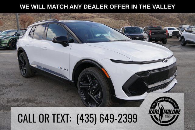 Price includes: $8750 - Customer Cash. Exp. 04/30/2026 Polar White 2026 Chevrolet Equinox EV RS FWD 1-Speed Automatic Electric Motor 4-Wheel Disc Brakes, 6 Speakers, 6-Speaker Audio System Feature, ABS brakes, Air Conditioning, Alloy wheels, AM/FM radio: SiriusXM with 360L, Auto High-beam Headlights, Auto-Dimming Inside Rear-View Mirror, Auto-dimming Rear-View mirror, Automatic temperature control, Brake assist, Bumpers: body-color, Compass, Delay-off headlights, Driver 8-Way Power Seat Adjuster, Driver door bin, Driver vanity mirror, Dual front impact airbags, Dual front side impact airbags, Electronic Stability Control, Emergency communication system: OnStar and Chevrolet connected services capable, Evotex Seat Trim, Four wheel independent suspension, Front anti-roll bar, Front Bucket Seats, Front Center Armrest, Front Passenger 4-Way Manual Seat Adjuster, Front reading lights, Fully automatic headlights, Heated door mirrors, Heated Driver and Front Passenger Seats Cushion and Seatback, Heated front seats, Heated steering wheel, Illuminated entry, Knee airbag, Low tire pressure warning, Navigation system: Google built-in compatibility (select service plan required, terms and limitations apply), Occupant sensing airbag, Outside temperature display, Overhead airbag, Overhead console, Panic alarm, Passenger door bin, Passenger vanity mirror, Power door mirrors, Power Driver Lumbar Control, Power driver seat, Power Liftgate, Power steering, Power windows, Radio: 17.7'' Diagonal Advanced Color LCD Display, Rear anti-roll bar, Rear reading lights, Rear seat center armrest, Rear window defroster, Rear window wiper, Remote keyless entry, Security system, SiriusXM with 360L Trial Subscription, Speed control, Split folding rear seat, Spoiler, Sport steering wheel, Steering wheel mounted audio controls, Telescoping steering wheel, Tilt steering wheel, Traction control, Trip computer, Turn signal indicator mirrors, Variably intermittent wipers, Wheels: 21'' Black Painted Aluminum.