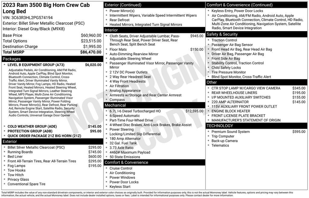 Billet Silver Metallic Clearcoat 2023 Ram 3500 Big Horn 4WD Aisin 6-Speed Automatic 6.7L I6