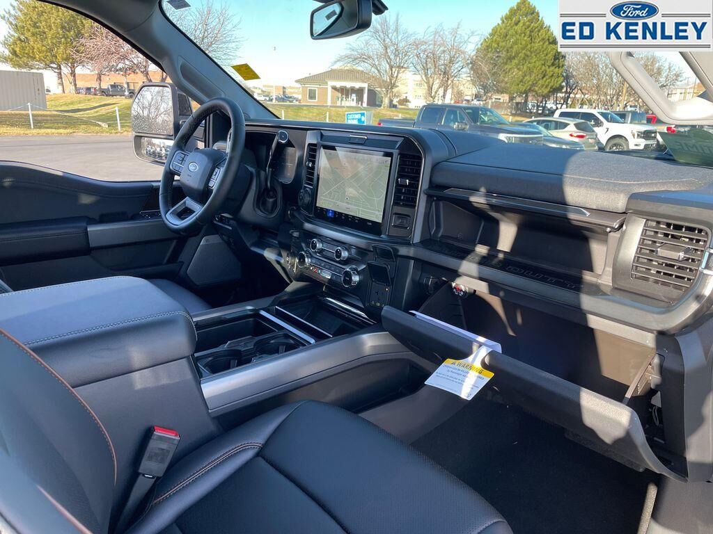 Black Appearance Package: Rear Wheel Well Liners; Black Painted Front Grille Surround; Ebony Black Painted Mirror Caps; Tough Bed Spray-In Bedliner; Body Color Front and Rear Bumpers; 6" Ebony Black Angular Running Boards,Lariat Premium Package,Ford Co-Pilot 360 Assist 2.0: Pre-Collision Assist; Post-Collision Braking; BLIS with Cross-Traffic Alert; Lane-Keeping System; Front and Rear Parking Sensors; Automatic High Beam; Adaptive Cruise Control with Stop-And-Go,FX4 Off-Road Package: Transfer Case and Fuel Tank Skid Plates; Hill Descent Control; Off-Road Specifically Tuned Shock Absorbers; Unique FX4 Off-Road Box Decal,Order Code 618A: 18" Bright Machined and Carbonized Gray Aluminum Wheels; Front ActiveX Trimmed 40/console/40 Seats; LT275/65Rx18E BSW A/S Tires; 11,300 Lb Payload Package GVWR; B&O Sound System by Bang and Olufsen,Star White Metallic TC,Pro Power Onboard - 2kW,5th Wheel/gooseneck Hitch Prep Package,Tough Bed Spray-In Bedliner,Power-Sliding Rear-Window with Defrost,SecuriCode Keyless Entry Keypad (driver's Side),Electronic-Locking with 4.30 Axle Ratio,Tailgate Step and Handle,Upfitter Switches (6),All-Weather Floor Mats,Rear Wheel Well Liners,LED Roof Clearance Lights,Lane Centering hands-on cruise control,5G Modem - Ford Connectivity Package mobile hotspot internet access,Reverse Camera rear mounted camera,Lane-Keeping System,Reverse Brake Assist collision mitigation,Adaptive Cruise Control with Stop-and-Go,Brake assist system,Cruise control with steering wheel mounted controls,Ventilated driver and front passenger seats,Connected Navigation integrated navigation system with voice activation,Keyfob remote start,Heated steering wheel,Heated driver and front passenger seats,Heated rear seats,ActiveX leatherette front seat upholstery,Primary monitor touchscreen,Driver seat power reclining, lumbar support, fore/aft control and height adjustable control,Part-time 4WD,7.3L V-8 DEVCT variable valve control, regular unleaded, engine with 430HP,7.3L V-8,Front wireless smart device charging,SYNC 4 with Enhanced Voice Recognition (Alexa-Built-In) built-in virtual assistant,PCA with AEB and Intersection Assist forward collision mitigation with left turn assist,Driver Alert,Speed Sign Recognition,SecuriCode external keypad door lock control,Intelligent Access with hands-free access and push button start,Aerial view camera,Smart device remote start,Push-button,Bluetooth wireless audio streaming,Pro Trailer Backup Assist vehicle and trailer reverse assist,Pro Trailer Hitch Assist automated vehicle to trailer hitching assist,Gauge cluster display size: 12.00,Front mounted camera,Right side camera,Pickup box camera,Left side camera,BLIS with Trailer Tow Coverage blind spot warning,Pedestrian detection warning,Dual-zone front climate control,SYNC 4 with Enhanced Voice Recognition voice-activated climate control,Auto High Beam auto high-beam headlights,SecuriLock immobilizer,B&O Sound System by Bang & Olufsen speakers,SiriusXM Traffic real-time traffic,TV receiver/streaming,SYNC 4 handsfree wireless device connectivity,Smart device wireless mirroring,Trailer brake controller