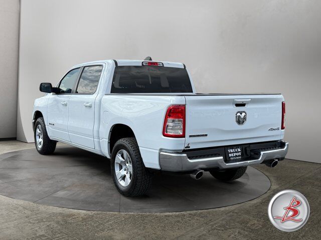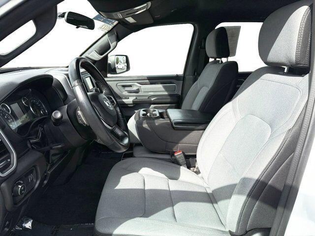 BRIGHT WHITE CLEARCOAT,MONOTONE PAINT,PICK-UP BOX LIGHTING,QUICK ORDER PACKAGE 25Z BIG HORN -inc: Engine: 5.7L V8 HEMI MDS VVT Transmission: 8-Speed Automatic (8HP75) Big Horn Badge,WHEELS: 18 X 8 CAST-ALUMINUM PAINTED (STD),GVWR: 7 100 LBS,DIESEL GRAY/BLACK CLOTH BENCH SEAT,TRI-FOLD TONNEAU COVER,TRANSMISSION: 8-SPEED AUTOMATIC (8HP75),REMOTE START SYSTEM,TIRES: 275/65R18 BSW ALL SEASON LRR (STD),ENGINE: 5.7L V8 HEMI MDS VVT -inc: Active Noise Control System Heavy Duty Engine Cooling Passive Tuned Mass Damper GVWR: 7 100 lbs Dual Rear Exhaust w/Bright Tips HEMI Badge,3.21 REAR AXLE RATIO (STD),FRONT LICENSE PLATE BRACKET,Four Wheel Drive,Tow Hitch,Power Steering,ABS,4-Wheel Disc Brakes,Brake Assist,Lithium Ion Traction Battery,Aluminum Wheels,Conventional Spare Tire,Heated Mirrors,Power Mirror(s),Privacy Glass,Intermittent Wipers,Variable Speed Intermittent Wipers,Power Door Locks,Daytime Running Lights,Automatic Headlights,Fog Lamps,AM/FM Stereo,Bluetooth Connection,MP3 Capability,Steering Wheel Audio Controls,Auxiliary Audio Input,Adjustable Steering Wheel,Trip Computer,Power Windows,Pass-Through Rear Seat,Rear Bench Seat,Leather Steering Wheel,Keyless Start,Keyless Entry,Power Door Locks,Cruise Control,A/C,Cloth Seats,Split Bench Seat,Passenger Vanity Mirror,Passenger Illuminated Visor Mirror,Floor Mats,Bluetooth Connection,Power Windows,Power Door Locks,Trip Computer,Immobilizer,Traction Control,Stability Control,Traction Control,Front Side Air Bag,Telematics,Requires Subscription,Tire Pressure Monitor,Driver Air Bag,Passenger Air Bag,Front Head Air Bag,Rear Head Air Bag,Passenger Air Bag Sensor,Child Safety Locks,Back-Up Camera
