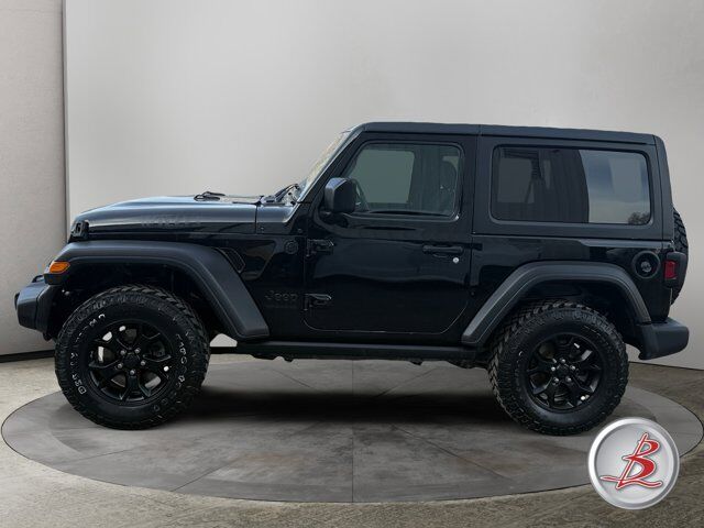 TRANSMISSION: 6-SPEED MANUAL (STD),CONVENIENCE GROUP -inc: Universal Garage Door Opener,COLD WEATHER GROUP -inc: Heated Steering Wheel Heated Front Seats,BLACK CLEARCOAT,ENGINE: 3.6L V6 24V VVT UPG I W/ESS (STD),SIRIUSXM SATELLITE RADIO (subscription required),BLACK 3-PIECE HARD TOP -inc: Freedom Panel Storage Bag Rear Window Defroster Rear Window Wiper/Washer No Soft Top,BLACK CLOTH LOW-BACK BUCKET SEATS,QUICK ORDER PACKAGE 23W WILLYS -inc: Engine: 3.6L V6 24V VVT UPG I w/ESS Transmission: 6-Speed Manual Speed Sensitive Power Locks Leather Wrapped Steering Wheel 4-Wheel Drive Swing Gate Decal Black Grille MOPAR All-Weather Floor Mats Front 1-Touch Down Power Windows Wrangler Decal Security Alarm Willys Anti-Lock 4-Wheel Disc HD Brakes Automatic Headlamps Black Trail Rated Badge Willys Hood Decal Rock Protection Sill Rails 97 MPH Vehicle Max Speed Calibration Power Heated Mirrors Matte Black Jeep Badge Remote Keyless Entry Sun Visors w/Illuminated Vanity Mirrors Front LED Fog Lamps LED Reflector Headlamps,TECHNOLOGY GROUP -inc: Google Android Auto Cluster 7.0 TFT Color Display SiriusXM Satellite Radio (subscription required) USB Host Flip Integrated Center Stack Radio 7.0 Touchscreen Display Air Conditioning w/Auto Temp Control Radio: Uconnect 4 w/7 Display Apple CarPlay Air Filtering GPS Antenna Input,Four Wheel Drive,Locking/Limited Slip Differential,Power Steering,Brake Assist,Aluminum Wheels,Tires - Front All-Terrain,Tires - Rear All-Terrain,Conventional Spare Tire,Tow Hooks,Tow Hooks,Intermittent Wipers,Variable Speed Intermittent Wipers,Privacy Glass,Rollover Protection Bars,Convertible Soft Top,AM/FM Stereo,Bluetooth Connection,MP3 Capability,Steering Wheel Audio Controls,Auxiliary Audio Input,Bluetooth Connection,Driver Adjustable Lumbar,Driver Adjustable Lumbar,Rear Bench Seat,Adjustable Steering Wheel,Trip Computer,Keyless Start,Cruise Control,A/C,Cloth Seats,Bucket Seats,Power Windows,Trip Computer,Immobilizer,Traction Control,Stability Control,Traction Control,Front Side Air Bag,Tire Pressure Monitor,Driver Air Bag,Passenger Air Bag,Passenger Air Bag Sensor,Back-Up Camera