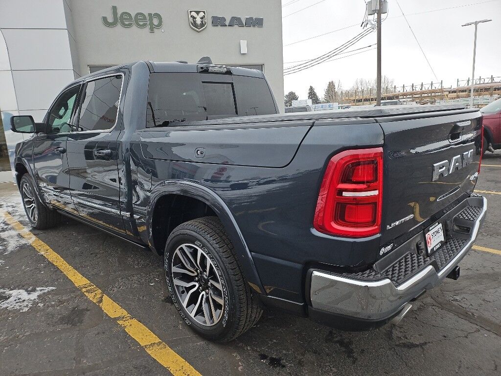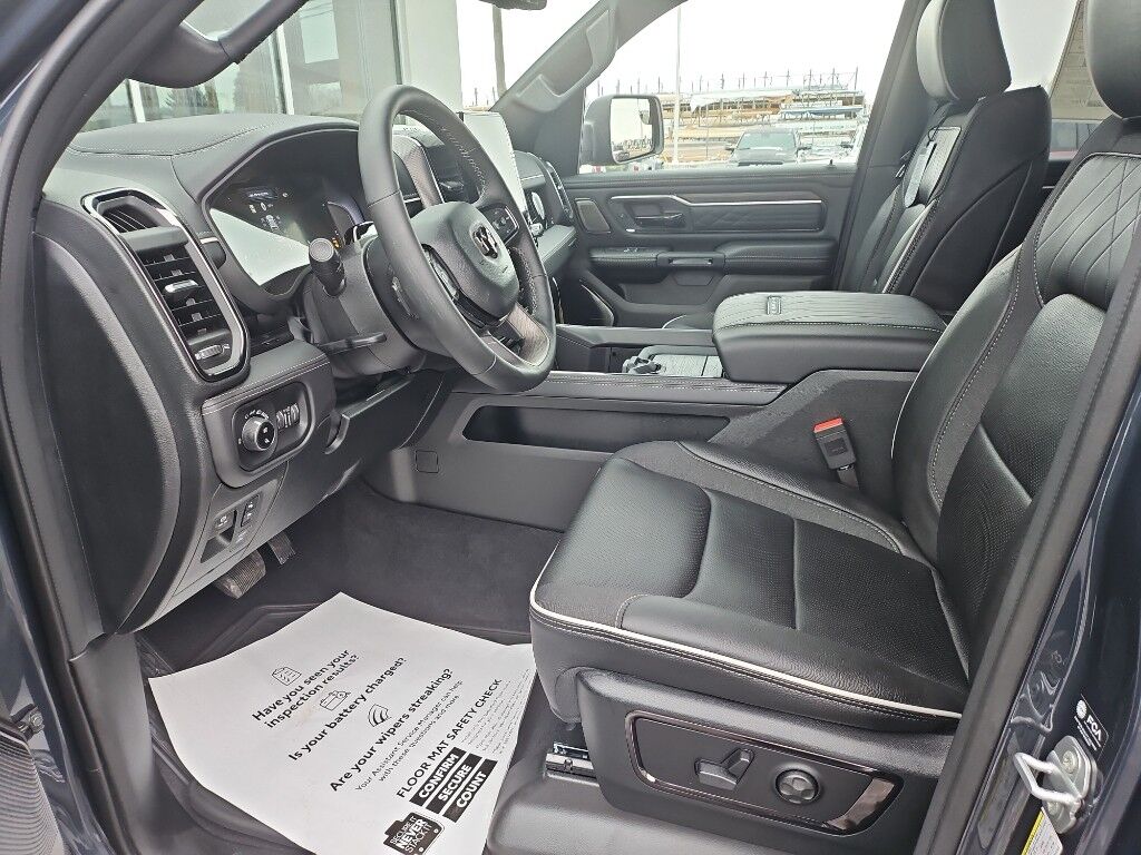 Quick Order Package 22M Limited,Limited Level A Equipment Group: Google Android Auto; SiriusXM Radio Service; USB Host Flip; Surround View Camera System; Integrated Center Stack Radio; LED CHMSL Lamp; Tri-Fold Tonneau Cover; Integrated Voice Command with Bluetooth; Connectivity - US/Canada; Traffic Sign Recognition; GPS Navigation; 4G LTE Wi-Fi Hot Spot; RamBox Cargo Management System; GPS Antenna Input; Hands-Free Active Driving Assist System; SiriusXM with 360L; Global Telematics Box Module; Head Up Display; Connected Travel and Traffic Services; Evasive Steer Assist; Drowsy Driver Detection; Exterior 115V AC Outlet; Intersection Collision Assist System; Apple CarPlay; Disassociated Touchscreen Display; HD Radio; Smartphone as a Key Capable; 14.4" Touchscreen Display; Uconnect 5 Nav with 14.4" Display; 240 Amp Alternator; Digital Rearview Mirror; 12-Way/1-way Trailer Connector,Tri-Fold Tonneau Cover,Trailer Brake Control,Forged Blue Metallic,MyFlexCare Service Plan,Intersection Collision Assist forward collision mitigation with left turn assist,Power open and close tailgate,Ventilated driver and front passenger seats,Integrated navigation system with voice activation,Blind Spot Detection,Keyfob remote start,Heated steering wheel,Uconnect w/Bluetooth handsfree wireless device connectivity,Apple CarPlay/Android Auto smart device wireless mirroring,Heated driver and front passenger seats,Simulated suede and leather front seat upholstery,Driver seat with 8-way directional controls,Front passenger seat with 8-way directional controls,RamBox integrated pickup box storage,Keyfob trunk control,14.4 inch primary display,Hands-Free Active Driving Assist hands-off cruise control,Pedestrian Emergency Braking,4G LTE Wi-Fi Hot Spot mobile hotspot internet access,Surround View rear mounted camera,Active Lane Management System,Adaptive cruise control with stop and go,Head-up display,Predictive brake assist system,Cruise control with steering wheel mounted controls,Ventilated rear seats,Heated rear seats,Primary monitor touchscreen,Cross Path Detection collision warning,Driver seat power reclining, lumbar support, cushion tilt, fore/aft control and height adjustable control,Part and full-time 4WD,Hurricane 3L I-6 gasoline direct injection, DOHC, variable valve control, twin turbo, premium unleaded, engine with 540HP,Hurricane 3L I-6 DOHC,Front wireless smart device charging,Traffic Sign Recognition,Evasive Steer Assist evasion assist system,Intersection Collision Assist System front cross traffic warning,Smart key with hands-free access and push button start,Keyfob air suspension control,Surround View Camera System aerial view camera,Smart device remote start,Push-button,Video-feed rearview mirror,Front passenger touchscreen,Wireless audio streaming,Smartphone As A Key Capable smart device-as-key proximity door locks,Gauge cluster display size: 12.00,Front mounted camera,Right side camera,Left side camera