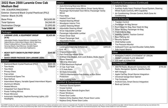 Get ready to hit the road in this Ram 2500, a standout choice for drivers looking for reliability, performance, and style! This impressive vehicle is packed with premium features designed to make every drive more enjoyable. Plus, you’ll enjoy a $1,000 finance savings, already included in the sale price, when you finance through one of our trusted lending partners. Whether you’re searching for used cars in Salt Lake City, a dependable SUV, or a powerful truck, this Ram 2500 delivers everything you need and more. Visit Salt Lake Valley Chrysler Dodge Jeep Ram today to test drive or explore our entire selection of quality pre-owned vehicles. Don’t wait - shop online at www.slvcdjr.com or call 801-484-8755 to learn more! This amazing vehicle comes loaded with options like Heavy Duty Snow Plow Prep Group (220 Amp Alternator), Laramie Level An Equipment Group (2nd Row In Floor Storage Bins, Auto High Beam Headlamp Control, Chrome Exterior Mirrors, Exterior Mirrors Courtesy Lamps, Exterior Mirrors w/Heating Element, Exterior Mirrors w/Memory, Exterior Mirrors w/Supplemental Signals, Foam Bottle Insert (Door Trim Panel), Mirror Running Lights, Mirror-Mounted Aux Reverse Lamps, Power Adjustable Convex Aux Mirrors, Power Adjustable Pedals w/Memory, Power Chrome Tow Mirrors w/Convex Spotter & Memory, Power Folding Mirrors, Radio/Driver Seat/Mirrors/Pedals Memory, Rain Sensitive Windshield Wipers, Remote Tailgate Release, and Trailer Tow Mirrors), Quick Order Package 2GH Laramie, 10 Speakers, 115V Auxiliary Rear Power Outlet, 2 Way Rear Headrest Seat, 3.73 Axle Ratio, 4 Way Front Headrests, 4-Wheel Disc Brakes, 4G LTE Wi-Fi Hot Spot, 8.4'' Touchscreen Display, ABS brakes, Active Noise Control System, Adjustable pedals, Air Conditioning, Alexa Built-In, All R1 High Radios, All Radio Equipped Vehicles, Alloy wheels, AM/FM radio: SiriusXM, Anti-Spin Differential Rear Axle, Apple CarPlay, Apple CarPlay/Android Auto, Auto-dimming Rear-View mirror, Automatic temperature control, Bluetooth Handsfree Phone & Audio, Brake assist, Bumpers: chrome, Compass, Connected Travel & Traffic Services, Connectivity - US/Canada, Delay-off headlights, Disassociated Touchscreen Display, Driver door bin, Driver vanity mirror, Dual front impact airbags, Dual front side impact airbags, Electronic Stability Control, Electronically Controlled Throttle, For Details, Visit DriveUconnect.com, For More Info, Call 800-643-2112, Front anti-roll bar, Front Center Armrest w/Storage, Front dual zone A/C, Front fog lights, Front License Plate Bracket, Front reading lights, Front Seat Back Map Pockets, Fully automatic headlights, Garage door transmitter, Global Telematics Box Module (TBM), Google Android Auto, GPS Antenna Input, GPS Navigation, HD Radio, Heated door mirrors, Heated Front Seats, Heated front seats, Heated Steering Wheel, Heated steering wheel, Illuminated entry, Integrated Center Stack Radio, Integrated Voice Command w/Bluetooth, Leather steering wheel, Leather Trim 40/20/40 Bench Seat, Low tire pressure warning, Manufacturer's Statement of Origin, Occupant sensing airbag, Off-Road Information Pages, Outside temperature display, Overhead airbag, Overhead console, Panic alarm, ParkView Rear Back-Up Camera, Passenger door bin, Passenger vanity mirror, Power 2-Way Driver Lumbar Adjust, Power 2-Way Passenger Lumbar Adjust, Power Adjust 8-Way Driver Seat, Power Adjust 8-Way Front Passenger Seat, Power door mirrors, Power driver seat, Power passenger seat, Power steering, Power windows, Radio data system, Radio: Uconnect 5 Nav w/8.4'' Display, Radio: Uconnect 5 W w/8.4'' Display, Rear 60/40 Folding Seat, Rear anti-roll bar, Rear reading lights, Rear seat center armrest, Rear step bumper, Rear window defroster, Remote keyless entry, Security system, Selectable Tire Fill Alert, SiriusXM Radio Service, SiriusXM Satellite Radio, SiriusXM w/360L, Speed control, Split folding rear seat, Steering wheel mounted audio controls, Tachometer, Tilt steering wheel, Tip Start