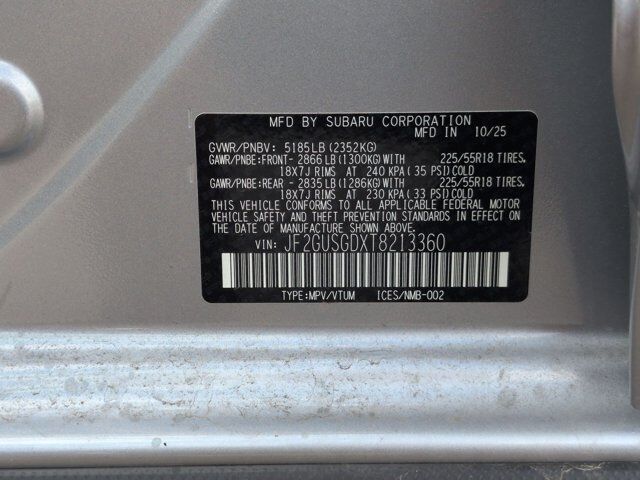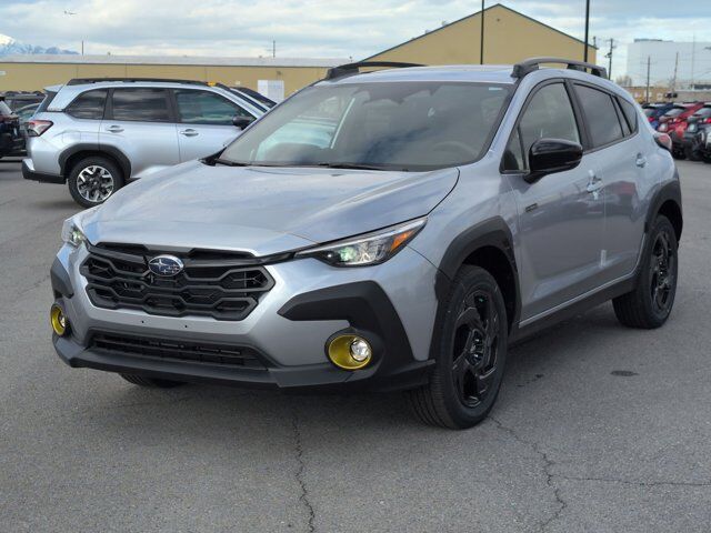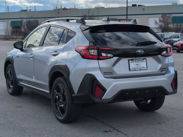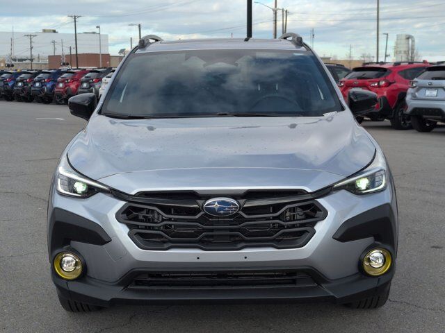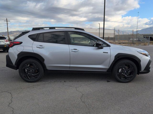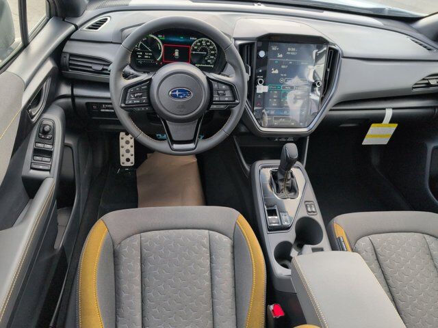 ICE SILVER METALLIC,STANDARD MODEL,CROSSTREK MIRROR PACKAGE -inc: Auto-Dimming Mirror w/Compass & HomeLink Part number H501SFN000 Auto-Dimming Exterior Mirror w/Approach Light Part number J201SFN001,REAR BUMPER COVER -inc: Part number E771SFN000,GRAY SPORT CLOTH UPHOLSTERY -inc: yellow stitching,All Wheel Drive,Power Steering,ABS,4-Wheel Disc Brakes,Brake Assist,Brake Actuated Limited Slip Differential,Lithium Ion Traction Battery,Aluminum Wheels,Tires - Front Performance,Tires - Rear Performance,Sun/Moonroof,Generic Sun/Moonroof,Heated Mirrors,Power Mirror(s),Integrated Turn Signal Mirrors,Rear Defrost,Privacy Glass,Intermittent Wipers,Variable Speed Intermittent Wipers,Rear Spoiler,Power Door Locks,Daytime Running Lights,Automatic Headlights,Headlights-Auto-Leveling,LED Headlights,Automatic Highbeams,Fog Lamps,AM/FM Stereo,Navigation System,Satellite Radio,MP3 Capability,Steering Wheel Audio Controls,Bluetooth Connection,Auxiliary Audio Input,HD Radio,Smart Device Integration,Requires Subscription,MP3 Capability,Bluetooth Connection,Power Driver Seat,Bucket Seats,Heated Front Seat(s),Driver Adjustable Lumbar,Pass-Through Rear Seat,Rear Bench Seat,Adjustable Steering Wheel,Trip Computer,Power Windows,WiFi Hotspot,Leather Steering Wheel,Keyless Entry,Power Door Locks,Keyless Start,Keyless Entry,Power Door Locks,Remote Trunk Release,Cruise Control,Adaptive Cruise Control,Climate Control,Multi-Zone A/C,A/C,Cloth Seats,Driver Vanity Mirror,Passenger Vanity Mirror,Driver Illuminated Vanity Mirror,Passenger Illuminated Visor Mirror,Floor Mats,Cargo Shade,Keyless Start,Smart Device Integration,Navigation System,Power Windows,Power Door Locks,Trip Computer,Security System,Immobilizer,Cruise Control Steering Assist,Traction Control,Stability Control,Traction Control,Front Side Air Bag,Lane Departure Warning,Lane Keeping Assist,Lane Departure Warning,Front Collision Mitigation,Driver Monitoring,Telematics,Requires Subscription,Blind Spot Monitor,Evasion Assist,Cross-Traffic Alert,Tire Pressure Monitor,Driver Air Bag,Passenger Air Bag,Front Head Air Bag,Rear Head Air Bag,Passenger Air Bag Sensor,Front Side Air Bag,Rear Side Air Bag,Knee Air Bag,Child Safety Locks,Back-Up Camera