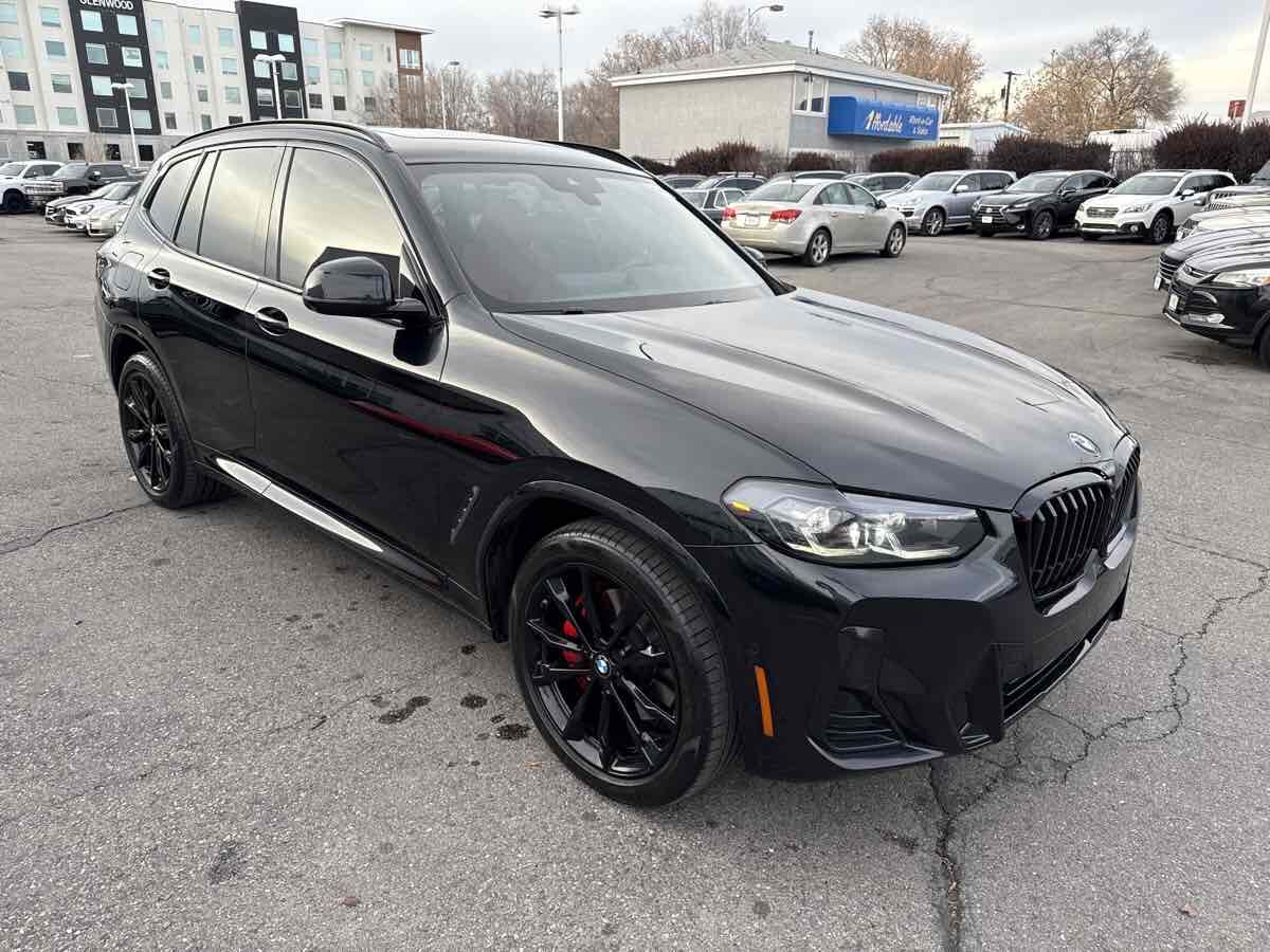 CLEAN VEHICLE HISTORY- MOONROOF- BLUETOOTH HANDSFREE- LOCAL TRADE-IN- REAR BACK UP CAMERA- LEATHER INTERIOR- 12 Speakers- Aerodynamic Kit- Air Conditioning- AM/FM radio: SiriusXM with 360L- Automatic temperature control- Convenience Package- Front dual zone A/C- Gesture Control- Head-Up Display- Heated Front Seats- Heated Steering Wheel- Lumbar Support- M Sport Package- M Sport Package (337)- M Steering Wheel- Memory seat- Navigation- Navigation System- Panoramic Moonroof- Power driver seat- Power Liftgate- Power windows- Premium Package- Rear air conditioning- Roof Rails in High-Gloss Shadowline- Shadowline Exterior Trim- Smoke Grey Aluminum Rhombicle Trim- Wheels: 19" x 7.5" M Y-Spoke Bi-Color (Style 887M)- Wheels: 19" x 7.5" Y-Spoke (Style 693)- Without Exterior Lines Designation. 2022 BMW X3 xDrive30i Black AWD 8-Speed Automatic Sport 2.0L I4 TwinPower Turbo