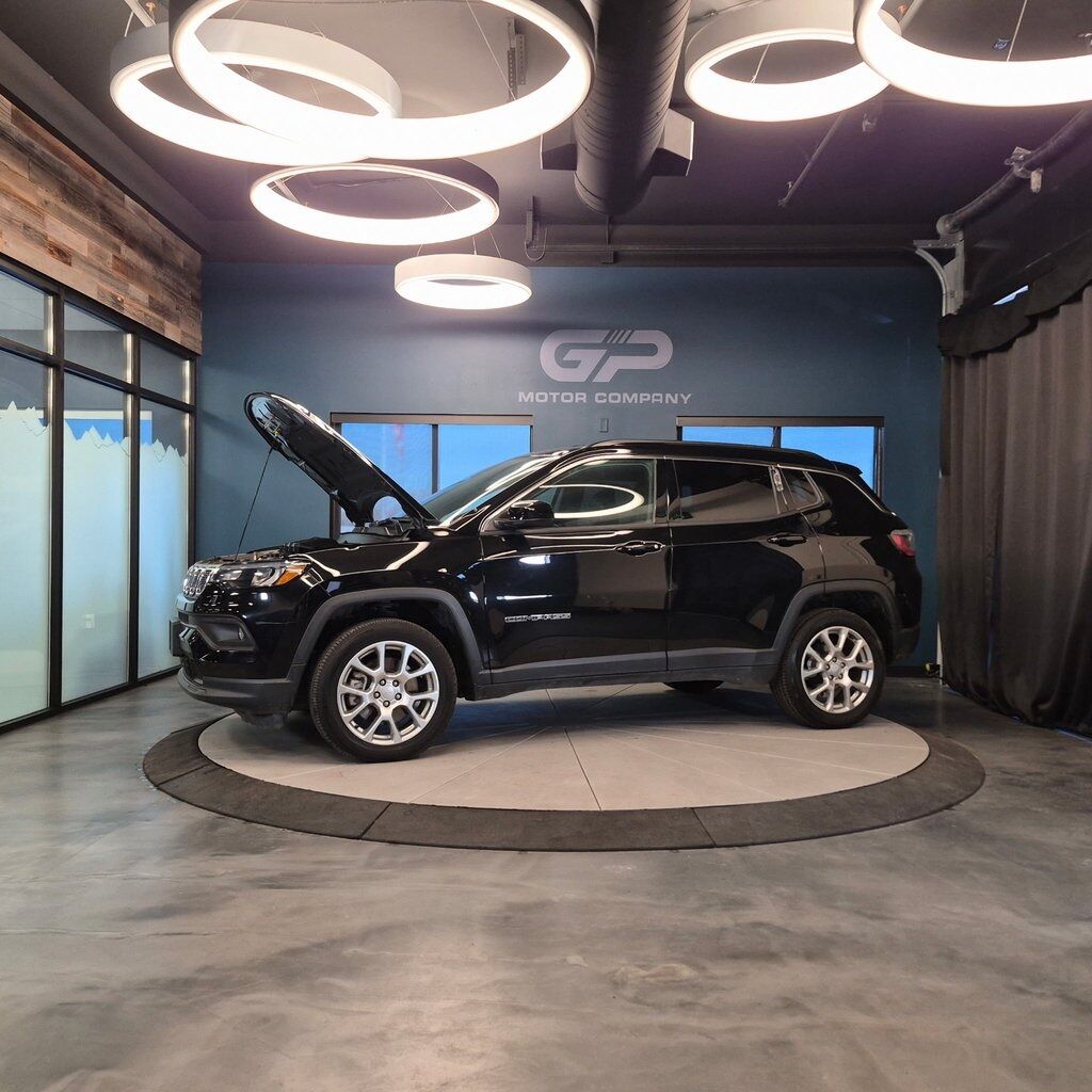 One owner, no accident history, very low miles, Latitude Lux trim with 6 speakers, heated steering wheel, heated front seats, rear back-up camera, and more! 2023 Jeep Compass Latitude Lux 4WD with branded title from hail. 8-Speed Automatic 2.0L I4 DOHC 24/32 City/Highway MPG