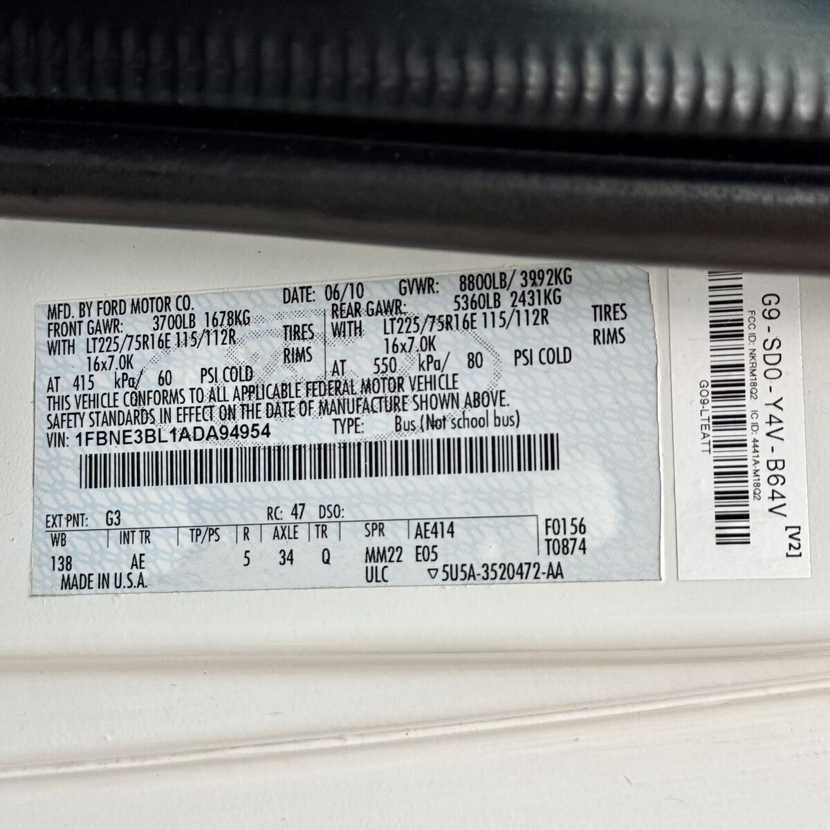 2010 Ford E-350 SD XL, One Owner, Clean Title