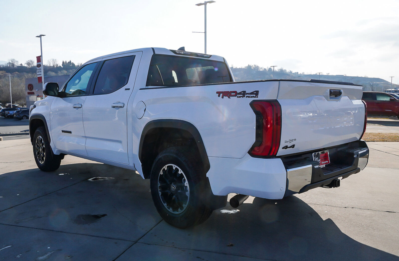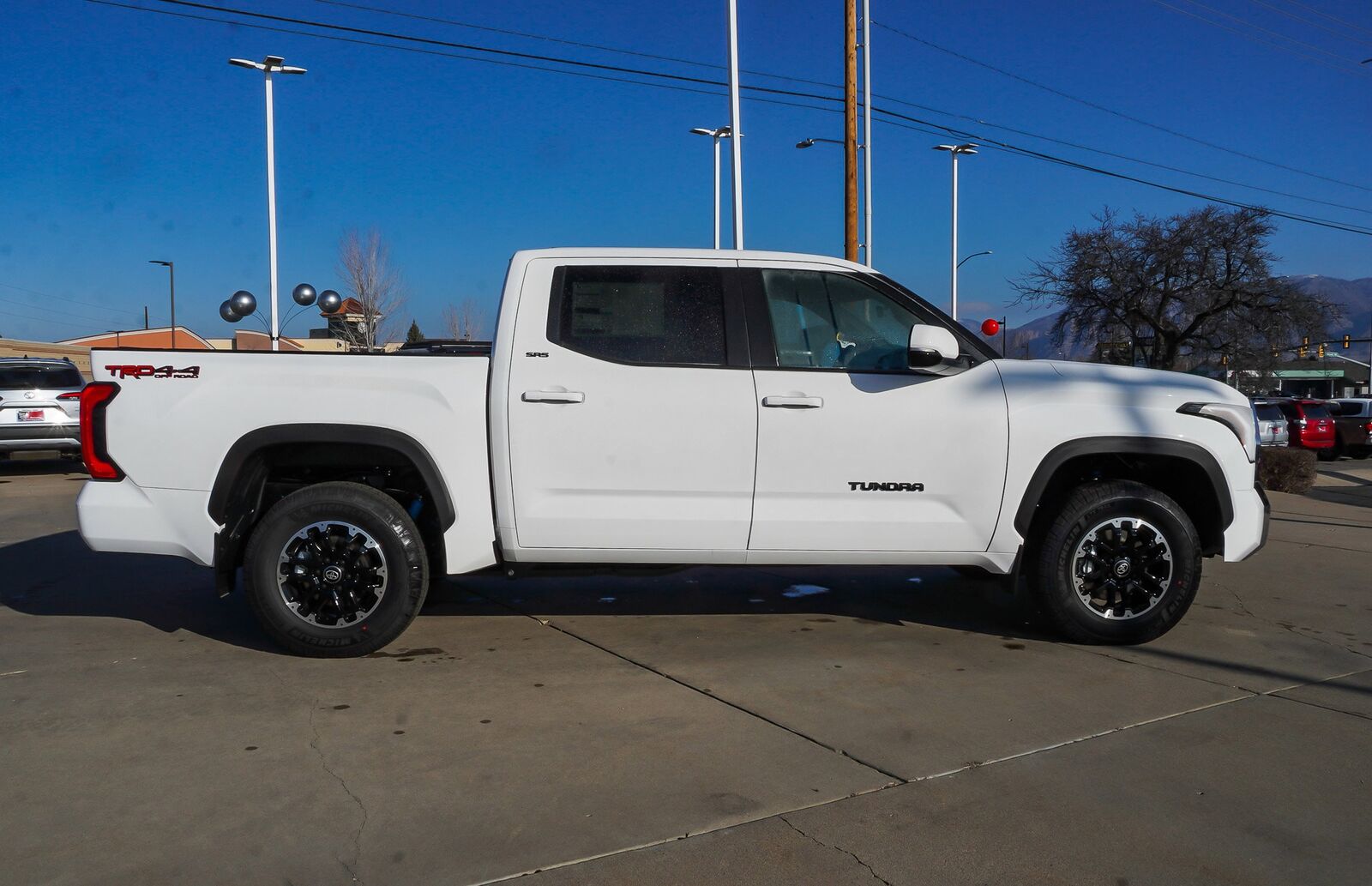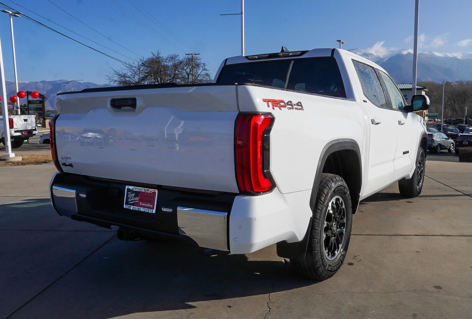 Boasts 22 Highway MPG and 17 City MPG! This Toyota Tundra 4WD delivers a Twin Turbo Regular Unleaded V-6 3.4 L/210 engine powering this Automatic transmission. TRD OFF-ROAD PACKAGE -inc: TRD grille, TRD off-road suspension, skid plates, mud guards, TRD leather shift knob, electronic rear differential lock and Multi-Terrain Select (MTS), Wheels: 18 TRD Off-Road Alloy, SR5 PAINTED MIRROR -inc: power, heated, rearview mirrors w/integrated turn signals, Blind Spot Monitor, SR5 CONVENIENCE PACKAGE -inc: Blind Spot Monitor w/Lane Change Assist, Parking Support Alert/Brake. This Toyota Tundra 4WD Features the Following Options ALL WEATHER FLOOR LINERS (TMS), Wheels: 18 Alloy, Vehicle Stability Control (VSC) Electronic Stability Control (ESC), Variable Intermittent Wipers w/Heated Wiper Park, Urethane Gear Shifter Material, Trip Computer, Transmission: 10-Speed Electronic Controlled Auto -inc: intelligence (ECT-i), sequential shift mode, uphill/downhill shift logic and TOW/HAUL modes, Transmission w/Driver Selectable Mode and Oil Cooler, Trailer Wiring Harness, Tires: 265/70R18. Visit Us Today You've earned this- stop by Tony Divino Toyota located at 777 West Riverdale Rd, Riverdale, UT 84405 to make this car yours today! * Estimated Monthly Payment will depend on vehicle make and model and will be determined upon actual vehicle inspection. All payments are estimates. Tax, title, registration and documentation fee ($349) are extra.* While every reasonable effort is made to ensure the accuracy of this information, we are not responsible for any errors or omissions contained on these pages. Please verify any information in question with Tony Divino Toyota.