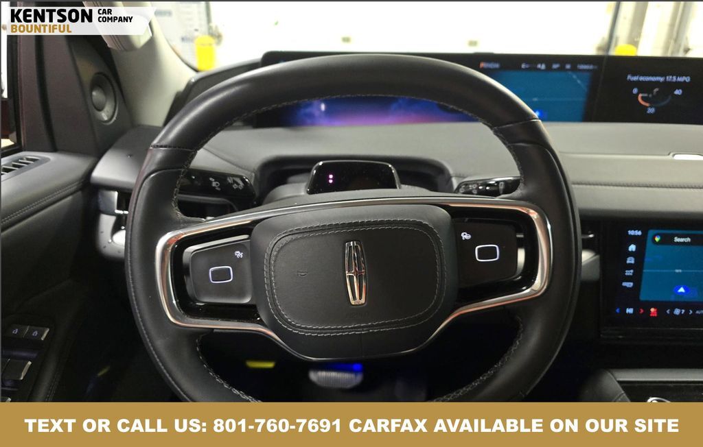 Equipment Group 202A Reserve II, 28 Speakers, 3rd row seats: split-bench, 4-Wheel Disc Brakes, ABS brakes, Adaptive suspension, Adjustable pedals, Air Conditioning, Alloy wheels, AM/FM radio: SiriusXM with 360L, Apple CarPlay/Android Auto, Audio memory, Auto High-beam Headlights, Auto Htd & Ventilated Premium Lthr Captain's Chair, Auto Start-Stop Technology, Auto tilt-away steering wheel, Auto-dimming door mirrors, Auto-dimming Rear-View mirror, Auto-leveling suspension, Automatic temperature control, Brake assist, Bumpers: body-color, Compass, Delay-off headlights, Driver door bin, Driver vanity mirror, Driver's Seat Mounted Armrest, Dual front impact airbags, Dual front side impact airbags, Electronic Stability Control, Emergency communication system: 911 Assist, Exterior Parking Camera Rear, Four wheel independent suspension, Front anti-roll bar, Front Bucket Seats, Front dual zone A/C, Front License Plate Bracket, Front reading lights, Fully automatic headlights, Garage door transmitter, Heated door mirrors, Heated front seats, Heated rear seats, Heated steering wheel, HVAC memory, Illuminated entry, Leather steering wheel, Lincoln Connect, Lincoln Premium Connectivity, Low tire pressure warning, Memory seat, Navigation system: Connected Navigation (1-year trial), Occupant sensing airbag, Outside temperature display, Overhead airbag, Overhead console, Panic alarm, Passenger door bin, Passenger seat mounted armrest, Passenger vanity mirror, Pedal memory, Power adjustable front head restraints, Power adjustable rear head restraints, Power door mirrors, Power driver seat, Power moonroof, Power passenger seat, Power steering, Power windows, Radio data system, Radio: Revel Ultima 3D AM/FM/HD Audio System, Rain sensing wipers, Rear air conditioning, Rear anti-roll bar, Rear audio controls, Rear reading lights, Rear window defroster, Rear window wiper, Reclining 3rd row seat, Remote keyless entry, Security system, SiriusXM w/360L, Speed control, Speed-sensing steering, Speed-Sensitive Wipers, Split folding rear seat, Spoiler, Steering wheel memory, Steering wheel mounted audio controls, Tachometer, Telescoping steering wheel, Tilt steering wheel, Traction control, Trip computer, Turn signal indicator mirrors, Variably intermittent wipers, Ventilated front seats, and Wheels: 22'' Dark Tarnished Aluminum.