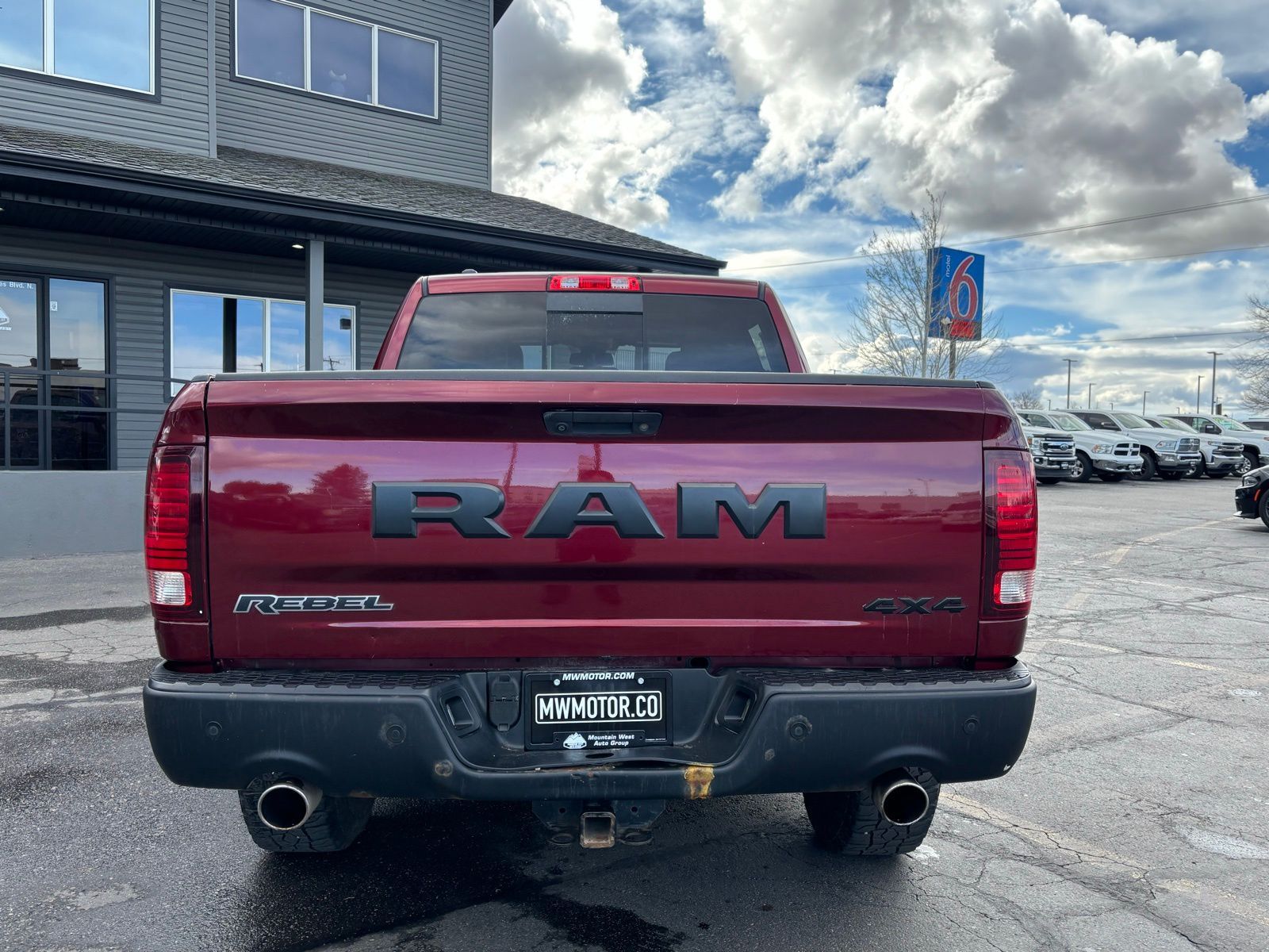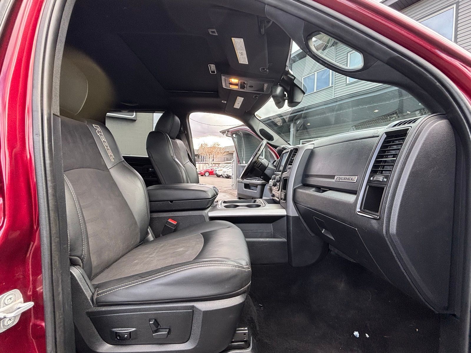 4WD 15/21 City/Highway MPG 8-Speed Automatic 4D Crew Cab Clean CARFAX. HEMI 5.7L V8 Multi Displacement VVT Auto-Dimming Exterior Mirrors, Auto-Dimming Rear-View Mirror, Dual Rear Exhaust w/Bright Tips, Exterior Mirrors Courtesy Lamps, Exterior Mirrors w/Supplemental Signals, Flat Black 5.7L Hemi Badge, Flat Black Ram 1500 Badge, Glove Box Lamp, LED Bed Lighting, Luxury Group, Overhead Console w/Garage Door Opener, Power Black Trailer Tow Mirrors, Power Heated Fold-Away Mirrors, Power-Folding Mirrors, Quick Order Package 26W Rebel, Ram Glove Box Badge, Rear Dome w/On/Off Switch Lamp, Sun Visors w/Illuminated Vanity Mirrors, Trailer Brake Control, Trailer Tow Mirrors, Trailer Tow Mirrors & Brake Group, Underhood Lamp, Universal Garage Door Opener. 1500 Delmonico Red Pearlcoat 2017 2017 Ram 1500 Rebel Rebel Ram