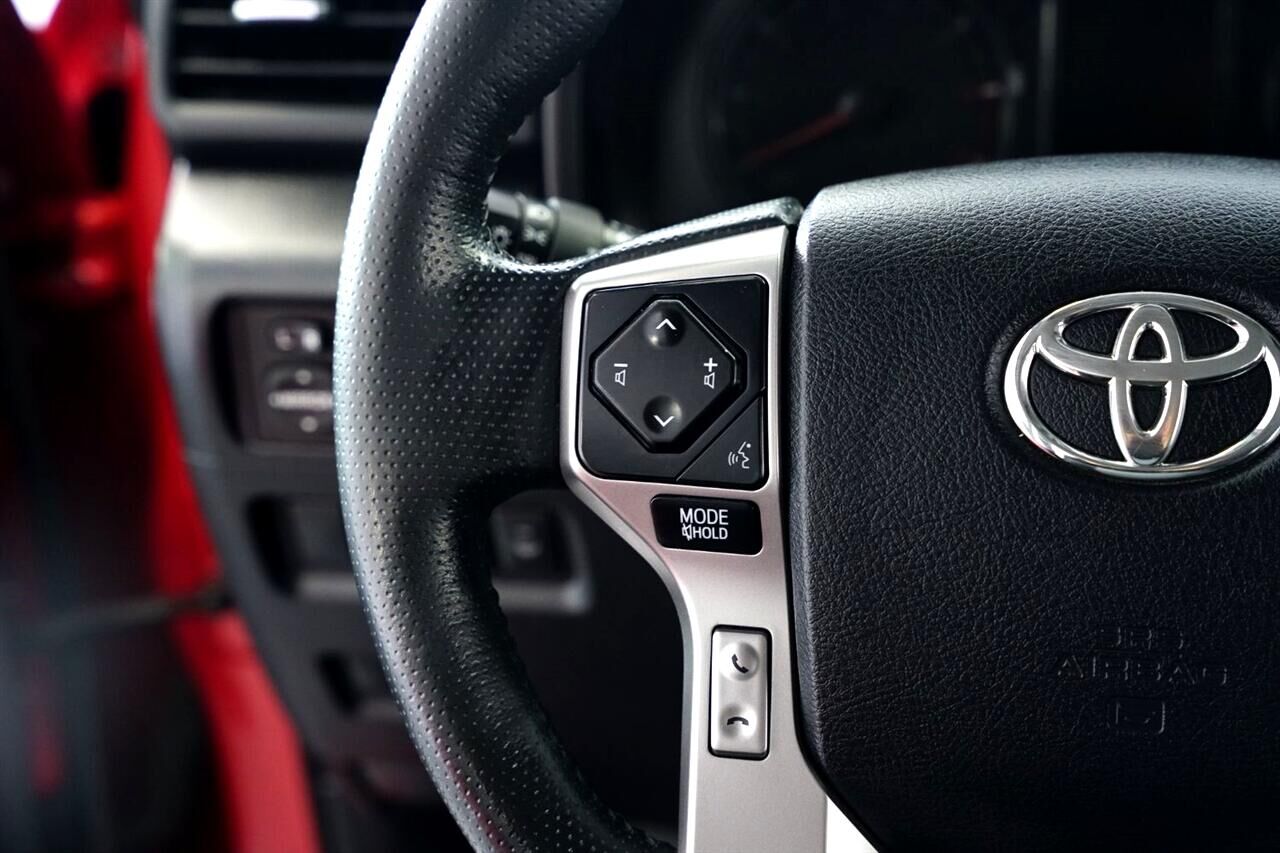 Engine: 4.0L DOHC 24-Valve V6,3.727 Axle Ratio,GVWR: 6-300 lbs,Manual Transfer Case,Part And Full-Time Four-Wheel Drive,72-Amp/Hr 750CCA Maintenance-Free Battery,Trailer Wiring Harness,3 Skid Plates,1625# Maximum Payload,Gas-Pressurized Shock Absorbers,Front And Rear Anti-Roll Bars,Hydraulic Power-Assist Speed-Sensing Steering,23 Gal. Fuel Tank,Single Stainless Steel Exhaust,Auto Locking Hubs,Double Wishbone Front Suspension w/Coil Springs,Solid Axle Rear Suspension w/Coil Springs,4-Wheel Disc Brakes w/4-Wheel ABS- Front And Rear Vented Discs- Brake Assist- Hill Descent Control and Hill Hold Control,Tires: P265/70R17 Mud & Snow,Steel Spare Wheel,Full-Size Spare Tire Stored Underbody w/Crankdown,Body-Colored Front Bumper w/1 Tow Hook,Body-Colored Rear Step Bumper,Chrome Bodyside Insert- Rocker Panel Extensions and Body-Colored Fender Flares,Black Side Windows Trim- Black Front Windshield Trim and Black Rear Window Trim,Body-Colored Door Handles,Body-Colored Side Mirrors,Heated Outside Rear View Mirrors,Power Rear Window w/Wiper and Defroster,Deep Tinted Glass,Variable Intermittent Wipers w/Heated Wiper Park,Fully Galvanized Steel Panels,Splash Guards,Lip Spoiler,Grille w/Body-Colored Bar,Liftgate Rear Cargo Access,Auto Off Projector Beam Led Low/High Beam Daytime Running Auto High-Beam Headlamps,Perimeter/Approach Lights,LED Brakelights,Headlights-Automatic Highbeams,8 Speakers,Window Grid Diversity Antenna,1 LCD Monitor In The Front,Real-Time Traffic Display,Turn-By-Turn Navigation Directions,Heated Front Bucket Seats -inc: 8-way power-adjustable driver's seat w/power lumbar support and 4-way power-adjustable front passenger seat,Driver Seat,Passenger Seat,40-20-40 Folding Split-Bench Front Facing Manual Reclining Fold Forward Seatback Rear Seat,Manual Tilt/Telescoping Steering Column,Wi-Fi Connect with up to 2GB within 3-month trial Mobile Hotspot Internet Access,Heated Leather Steering Wheel,Front Cupholder,Rear Cupholder,5 12V DC Power Outlets,Compass,Valet Function,Cruise Control w/Steering Wheel Controls,Dynamic Radar Cruise Control (DRCC),Manual Air Conditioning,HVAC -inc: Underseat Ducts and Console Ducts,Locking Glove Box,Driver Foot Rest,Interior Trim -inc: Metal-Look Instrument Panel Insert- Metal-Look Door Panel Insert- Metal-Look Console Insert and Metal-Look Interior Accents,Full Cloth Headliner,Leatherette Door Trim Insert,Leather Gear Shifter Material,Driver And Passenger Visor Vanity Mirrors w/Driver And Passenger Illumination- Driver And Passenger Auxiliary Mirror,Day-Night Auto-Dimming Rearview Mirror,Full Floor Console w/Covered Storage- Mini Overhead Console w/Storage- 5 12V DC Power Outlets and 1 Interior 120V AC Power Outlet,Front Map Lights,Fade-To-Off Interior Lighting,Full Carpet Floor Covering,Carpet Floor Trim,Cargo Space Lights,Tracker System,Integrated Navigation System w/Voice Activation,Garage Door Opener,Instrument Panel Covered Bin- Driver / Passenger And Rear Door Bins,Delayed Accessory Power,Driver Information Center,Outside Temp Gauge,Analog Appearance,Manual Anti-Whiplash Adjustable Front Head Restraints and Manual Adjustable Rear Head Restraints,Front Center Armrest and Rear Center Armrest,2 Seatback Storage Pockets,Seats w/Leatherette Back Material,5 12V DC Power Outlets and 1 Interior 120V AC Power Outlet,Air Filtration,Side Impact Beams,Dual Stage Driver And Passenger Seat-Mounted Side Airbags,Blind Spot Monitor (BSM) Blind Spot,Toyota Safety Sense P (TSS-P),Rear Cross-Traffic Alert (RCTA),Lane Departure Alert (LDA) Lane Departure Warning,Collision Mitigation-Front,Low Tire Pressure Warning,Dual Stage Driver And Passenger Front Airbags,Curtain 1st- 2nd And 3rd Row Airbags,Airbag Occupancy Sensor,Driver And Passenger Knee Airbag,Rear Child Safety Locks,Outboard Front Lap And Shoulder Safety Belts -inc: Rear Center 3 Point- Height Adjusters and Pretensioners