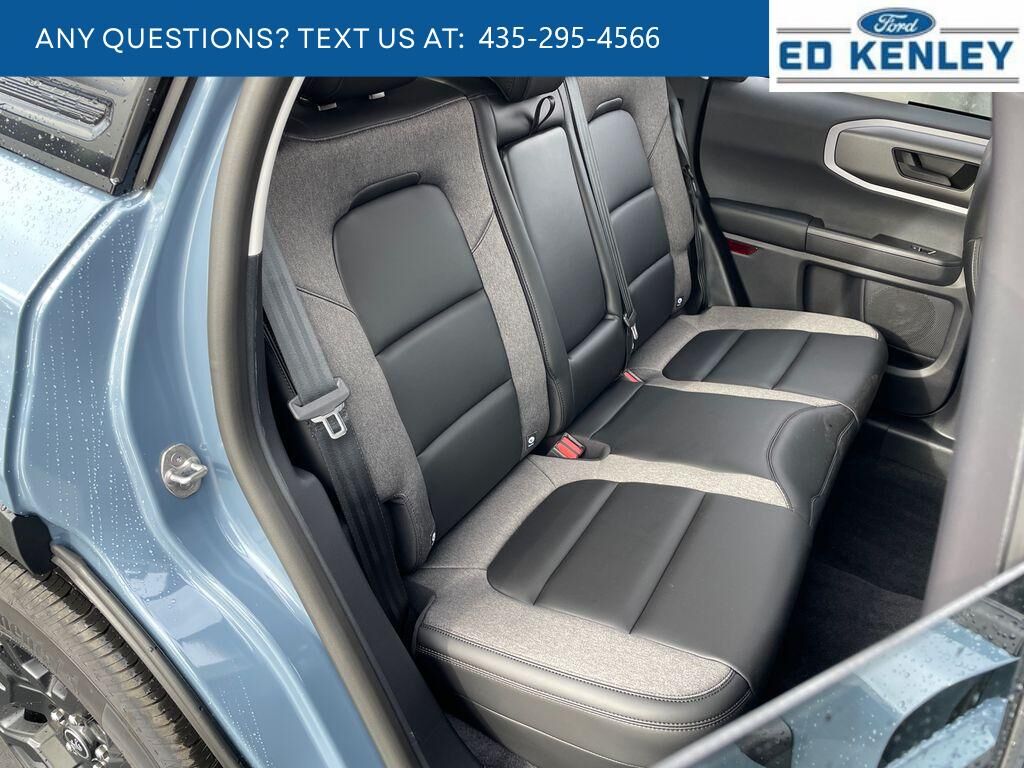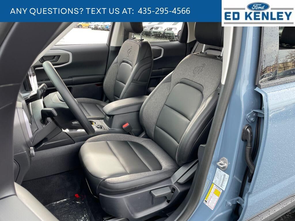 Black Appearance Package: Painted Shadow Black Roof; Cargo Mat; 17" Matte Black-Painted Aluminum Wheels; Front and Rear Floor Liners Without Carpet Mats; Liftgate with Black BRONCO SPORT Lettering; Carbon Black Grille with Black BRONCO Lettering; Premium Trimmed Heated Front Sport Contour Bucket Seats,Equipment Group 200A: 8-Speed Automatic Transmission; 225/65R17 102H All Season BSW Tires; AM/FM Stereo; 1.5L EcoBoost Engine,Azure Gray Met Tri-Coat,Keyless Entry Keypad,Front and Rear Floor Liners Without Carpet Mats,Cargo Mat,SYNC 4 AppLink/Apple CarPlay/Android Auto smart device wireless mirroring,Lane Centering hands-on cruise control,Pre-Collision Assist with Automatic Emergency Braking (AEB) forward collision mitigation,Pre-Collision Assist with Pedestrian Detection,Reverse Camera rear mounted camera,Lane-Keeping System,Rear Cross-Traffic Braking collision mitigation,Adaptive Cruise Control with Stop-and-Go,Brake assist system,Cruise control with steering wheel mounted controls,Heated driver and front passenger seats,Primary monitor touchscreen,Driver seat power reclining, lumbar support, fore/aft control and height adjustable control,Part and full-time 4WD,EcoBoost 1.5L I-3 port/direct injection, DOHC, variable valve control, intercooled turbo, regular unleaded, engine with 181HP,EcoBoost 1.5L I-3 DOHC,Front wireless smart device charging,Driver Alert,Evasive Steering Assist evasion assist system,External keypad door lock control,Intelligent Access with hands-free access and push button start,Smart device remote start,Push-button,Automatic brake hold,Bluetooth wireless audio streaming,Gauge cluster display size: 12.30,BLIS (Blind Spot Information System),Voice-activated climate control,Full gauge cluster screen,Auto High Beam auto high-beam headlights,SecuriLock immobilizer,FordPass Connect vehicle tracker,Selectable Terrain Modes,Bluetooth handsfree wireless device connectivity,SYNC 4 external memory control,Internet radio capability,Digital/analog instrumentation display,Configurable instrumentation gauges,AdvanceTrac w/Roll Stability Control electronic stability control system with anti-roll,Hill Start Assist,Flip-up rear windshield,Automatic climate control,Rear parking sensors,LED daytime running lights,LED brake lights,Manual reclining rear seats,Active grille shutters,SYNC 4 911 Assist emergency SOS system via mobile device,Manual rear child safety door locks,FordPass App mobile app access