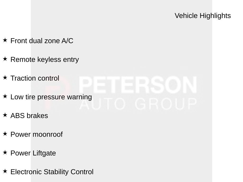 Toyota provides high-tech passenger protection with automatic braking, lane-keeping assistance, a rearview camera, blind-spot monitoring, adaptive cruise control, and more to help keep your family safe. Now take off in our Highlander XLE for trail-blazing good times! Save this Page and Call for Availability. We Know You Will Enjoy Your PETERSON CHEVROLET Test Drive Towards Ownership! Call us today 208-323-5000 to schedule your VIP test drive!