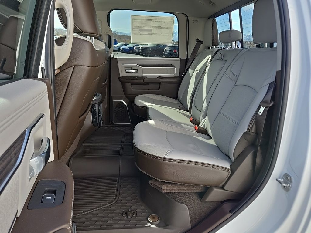 2026 Ram 3500 Laramie Bright White Clearcoat 4D Crew Cab 6.7L I6 4WD #1 Seat Foam Cushion, 10 Speakers, 115V Auxiliary Rear Power Outlet, 2 Way Rear Headrest Seat, 2nd Row in Floor Storage Bins, 4 Way Front Headrests, 4-Wheel Disc Brakes, 4G LTE Wi-Fi Hot Spot, 5th Wheel/Gooseneck Towing Prep Group, ABS brakes, Active Lane Management System, Adaptive Steering System, Air Conditioning, Alexa Built-in, Alloy wheels, AM/FM radio: SiriusXM with 360L, Apple CarPlay, Apple CarPlay/Android Auto, Auto Adjust in Reverse Exterior Mirrors, Auto Dimming Exterior Passenger Mirror, Auto High Beam Headlamp Control, Auto Power-Folding Mirrors, Auto-Dimming Exterior Mirrors, Auto-dimming Rear-View mirror, Automatic temperature control, Bed Utility Group, Black Wheel Center Hub, Brake assist, Bumpers: body-color, Chrome Exterior Mirrors, Chrome Flat Wheel-to-Wheel Side Steps, Compass, Connected Travel and Traffic Services, Connectivity - US/Canada, Delay-off headlights, Disassociated Touchscreen Display, Driver door bin, Driver vanity mirror, Drowsy Driver Detection, Dual front impact airbags, Dual front side impact airbags, Electronic Stability Control, Emergency Vehicle Alert System (EVAS), Exterior Mirrors Courtesy Lamps, Exterior Mirrors with Heating Element, Exterior Mirrors with Memory, Exterior Mirrors with Supplemental Signals, Foam Bottle Insert (door Trim Panel), Folding Flat Load Floor Storage, Forward and Reverse Utility Lights, Front anti-roll bar, Front Center Armrest w/Storage, Front dual zone A/C, Front fog lights, Front License Plate Bracket, Front reading lights, Front Seat Back Map Pockets, Fully automatic headlights, Garage door transmitter, Global Telematics Box Module, Google Android Auto, GPS Antenna Input, GPS Navigation, HD Radio, Heated door mirrors, Heated Front Seats, Heated front seats, Heated Steering Wheel, Heated steering wheel, High Back Seats, Illuminated entry, Integrated Voice Command with Bluetooth, Laramie Level 1 Equipment Group, Leather Trim 40/20/40 Bench Seat, LED Bed Lighting, Low tire pressure warning, Manufacturer's Statement of Origin, Mirror Running Lights, MOPAR Deployable Bed Step, MOPAR Front and Rear Rubber Floor Mats, MOPAR Spray in Bedliner, Navigation System, Occupant sensing airbag, Off-Road Information Pages, Outside temperature display, Overhead airbag, Overhead console, Panic alarm, ParkView Rear Back-Up Camera, Passenger door bin, Passenger vanity mirror, Power 2-Way Driver Lumbar Adjust, Power 2-Way Passenger Lumbar Adjust, Power Adjust 8-Way Driver Seat, Power Adjust 8-Way Front Passenger Seat, Power Adjust Mirrors, Power Adjustable Pedals with Memory, Power door mirrors, Power driver seat, Power Heat Fold Memory Telescopic Mirrors, Power passenger seat, Power steering, Power Telescoping Mirrors, Power windows, Power-Adjustable Convex Aux Mirrors, Quick Order Package 24H Laramie, Radio data system, Radio: Uconnect 5 Navigation with 12.0'' Display, Rain Sensitive Windshield Wipers, Rear 60/40 Folding Seat, Rear reading lights, Rear seat center armrest, Rear step bumper, Rear window defroster, Remote keyless entry, Remote Tailgate Release, Safety Group, Security system, Selectable Tire Fill Alert, SiriusXM Radio Service, SiriusXM with 360L, Speed control, Split folding rear seat, Steering wheel mounted audio controls, Tachometer, Tilt steering wheel, Traction control, Traffic Sign Recognition, Trailer Tow Pages, Trip computer, Turn signal indicator mirrors, Variably intermittent wipers, Voltmeter, Wheels: 18'' x 8.0'' Diamond Cut Aluminum with Black Pt Pockets. Price includes: $1000 - 2026 National Bonus Cash . Exp. 03/02/2026