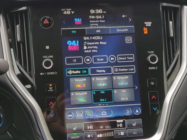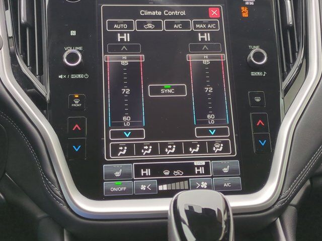 SLATE BLACK PERFORATED LEATHER-TRIMMED UPHOLSTERY -inc: silver or ivory stitching,COSMIC BLUE PEARL,POWER MOONROOF & HTD STEERING WHEEL & NAV SYSTEM -inc: DriverFocus (Driver Monitoring System) Power Moonroof tilt up and internal retracting w/auto-open/close and laminated UV dark tinted glass Heated Steering Wheel Radio: Subaru STARLINK 11.6 Multimedia Nav System AM/FM stereo HD Radio valet mode multi-touch gesture high resolution display screen voice activated controls and navigation Bluetooth audio streaming and hands-free phone connectivity w/SMS text messaging (refer to subaru.com for cell phone compatibility) Near Field Communication (NFC) TomTom navigation software w/What3words iPod control capability SiriusXM 360L Platinum trial (4 months free trial/subscription required after) SiriusXM Traffic (3 years free trial/subscription required after) SiriusXM Travel Link (3 year free trial/subscription required after) smartphone integration: Android Auto and Apple CarPlay w/full screen view and wireless connection and STARLINK cloud applications (refer to subaru.c,All Wheel Drive,Power Steering,ABS,4-Wheel Disc Brakes,Brake Assist,Brake Actuated Limited Slip Differential,Aluminum Wheels,Tires - Front All-Season,Tires - Rear All-Season,Temporary Spare Tire,Heated Mirrors,Power Mirror(s),Integrated Turn Signal Mirrors,Rear Defrost,Privacy Glass,Intermittent Wipers,Variable Speed Intermittent Wipers,Rear Spoiler,Remote Trunk Release,Power Liftgate,Power Door Locks,Luggage Rack,Daytime Running Lights,Automatic Headlights,Headlights-Auto-Leveling,LED Headlights,Fog Lamps,Automatic Highbeams,AM/FM Stereo,Premium Sound System,Satellite Radio,MP3 Capability,Bluetooth Connection,Telematics,Auxiliary Audio Input,HD Radio,Smart Device Integration,Requires Subscription,MP3 Capability,Steering Wheel Audio Controls,Bluetooth Connection,Power Driver Seat,Power Passenger Seat,Bucket Seats,Heated Front Seat(s),Driver Adjustable Lumbar,Seat Memory,Pass-Through Rear Seat,Heated Rear Seat(s),Rear Bench Seat,Adjustable Steering Wheel,Trip Computer,Power Windows,Telematics,Requires Subscription,Leather Steering Wheel,Keyless Entry,Power Door Locks,Keyless Entry,Power Door Locks,Keyless Start,Hands-Free Liftgate,Universal Garage Door Opener,Cruise Control,Adaptive Cruise Control,Climate Control,Multi-Zone A/C,A/C,Leather Seats,Driver Vanity Mirror,Passenger Vanity Mirror,Driver Illuminated Vanity Mirror,Passenger Illuminated Visor Mirror,Auto-Dimming Rearview Mirror,Floor Mats,Cargo Shade,Keyless Start,Smart Device Integration,Smart Device Integration,Requires Subscription,Mirror Memory,Seat Memory,Power Door Locks,Power Windows,Trip Computer,Mirror Memory,Seat Memory,Security System,Immobilizer,Cruise Control Steering Assist,Traction Control,Stability Control,Traction Control,Front Side Air Bag,Lane Departure Warning,Lane Keeping Assist,Lane Departure Warning,Front Collision Mitigation,Driver Monitoring,Telematics,Requires Subscription,Blind Spot Monitor,Cross-Traffic Alert,Rear Collision Mitigation,Evasion Assist,Tire Pressure Monitor,Driver Air Bag,Passenger Air Bag,Front Head Air Bag,Rear Head Air Bag,Passenger Air Bag Sensor,Knee Air Bag,Child Safety Locks,Back-Up Camera