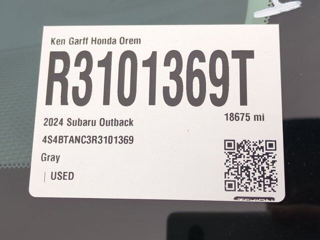 Ken Garff Honda is pleased to offer this stunning-looking 2024 Subaru Outback Limited in Cosmic Blue Pearl.Garff Certified Pre-Owned Certified, 12 Speakers, 3.90 Axle Ratio, 4-Wheel Disc Brakes, ABS brakes, Air Conditioning, Alloy wheels, AM/FM radio: SiriusXM, Auto High-beam Headlights, Auto-dimming Rear-View mirror, Automatic temperature control, Brake assist, Bumpers: body-color, Compass, Driver door bin, Driver vanity mirror, DriverFocus (Driver Monitoring System), Dual front impact airbags, Dual front side impact airbags, Electronic Stability Control, Emergency communication system: STARLINK Safety Plus (3-year free trial), Exterior Parking Camera Rear, Four wheel independent suspension, Front anti-roll bar, Front Bucket Seats, Front Center Armrest w/Storage, Front dual zone A/C, Front fog lights, Front reading lights, Fully automatic headlights, Garage door transmitter: HomeLink, harman/kardon® Speakers, Heated door mirrors, Heated Front Bucket Seats, Heated front seats, Heated rear seats, Heated Steering Wheel, Illuminated entry, Knee airbag, Leather Shift Knob, Leather steering wheel, Low tire pressure warning, Memory seat, Occupant sensing airbag, Outside temperature display, Overhead airbag, Overhead console, Panic alarm, Passenger door bin, Passenger vanity mirror, Perforated Leather-Trimmed Upholstery, Power door mirrors, Power driver seat, Power Liftgate, Power Moonroof, Power Moonroof & Htd Steering Wheel & Nav System, Power passenger seat, Power steering, Power windows, Radio: Subaru STARLINK 11.6 Multimedia Nav System, Radio: Subaru STARLINK 11.6 Multimedia Plus Sys, Rear anti-roll bar, Rear seat center armrest, Rear window defroster, Rear window wiper, Remote keyless entry, Roof rack, Security system, Speed control, Speed-sensing steering, Split folding rear seat, Spoiler, Steering wheel mounted audio controls, Tachometer, Telescoping steering wheel, Tilt steering wheel, Traction control, Trip computer, Turn signal indicator mirrors, Variably intermittent wipers, Wheels: 18 x 7J Black Aluminum-Alloy.Certification Program Details: 118 point vehicle inspection 3 month / 3,000 miles comprehensive limited warranty with a $0 deductible Complementary vehicle history report GarffCARE roadside assistance Powertrain extending additives: Engine deposit cleaning additive Transmission conditioning additive Fuel system cleaner Cooling-system treatment Artic Blast A/C treatment Power steering fluid conditioner Second key and remote Free home delivery available No hassle return/exchange for 5-days or 500 miles26/32 City/Highway MPGIn addition to transparent, no hassle pricing and upfront no hassle trade evaluation.....We provide an enjoyably brief and easy Sales Experience...Your Pace...Your Deal...No Exceptions!